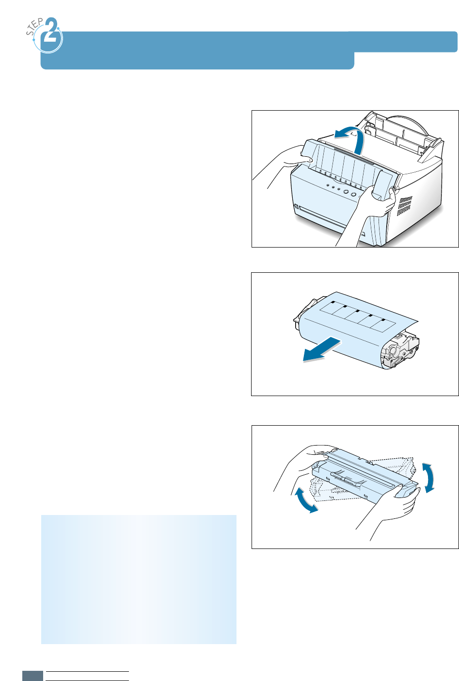 STEP 2:Install the Toner Cartridge ––––––––––––––––––––– 2.2
