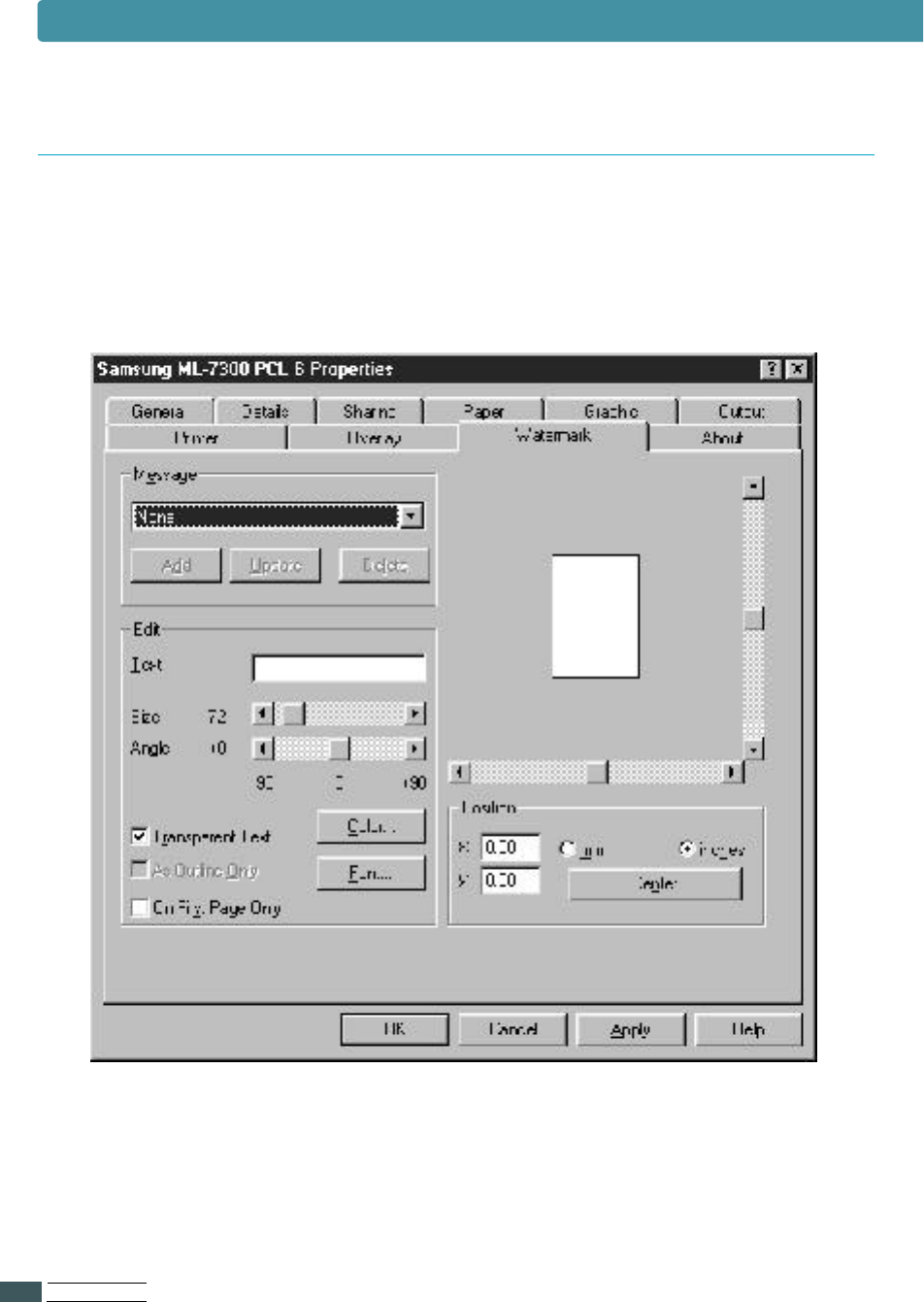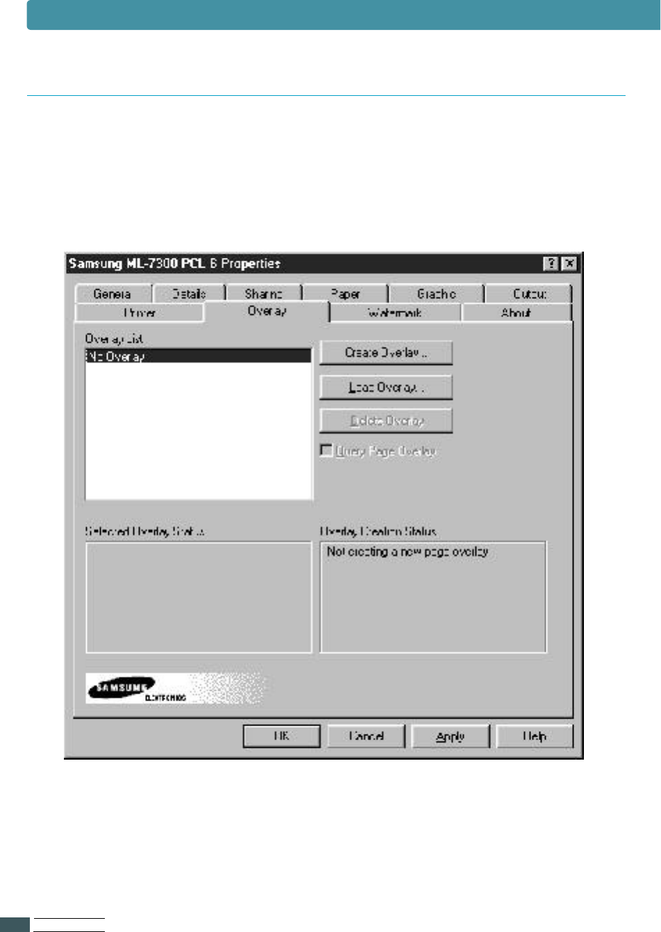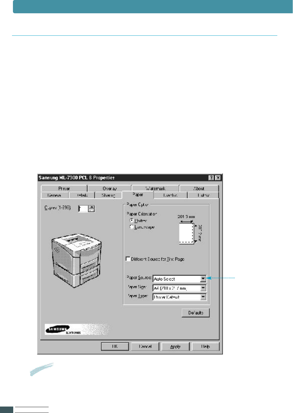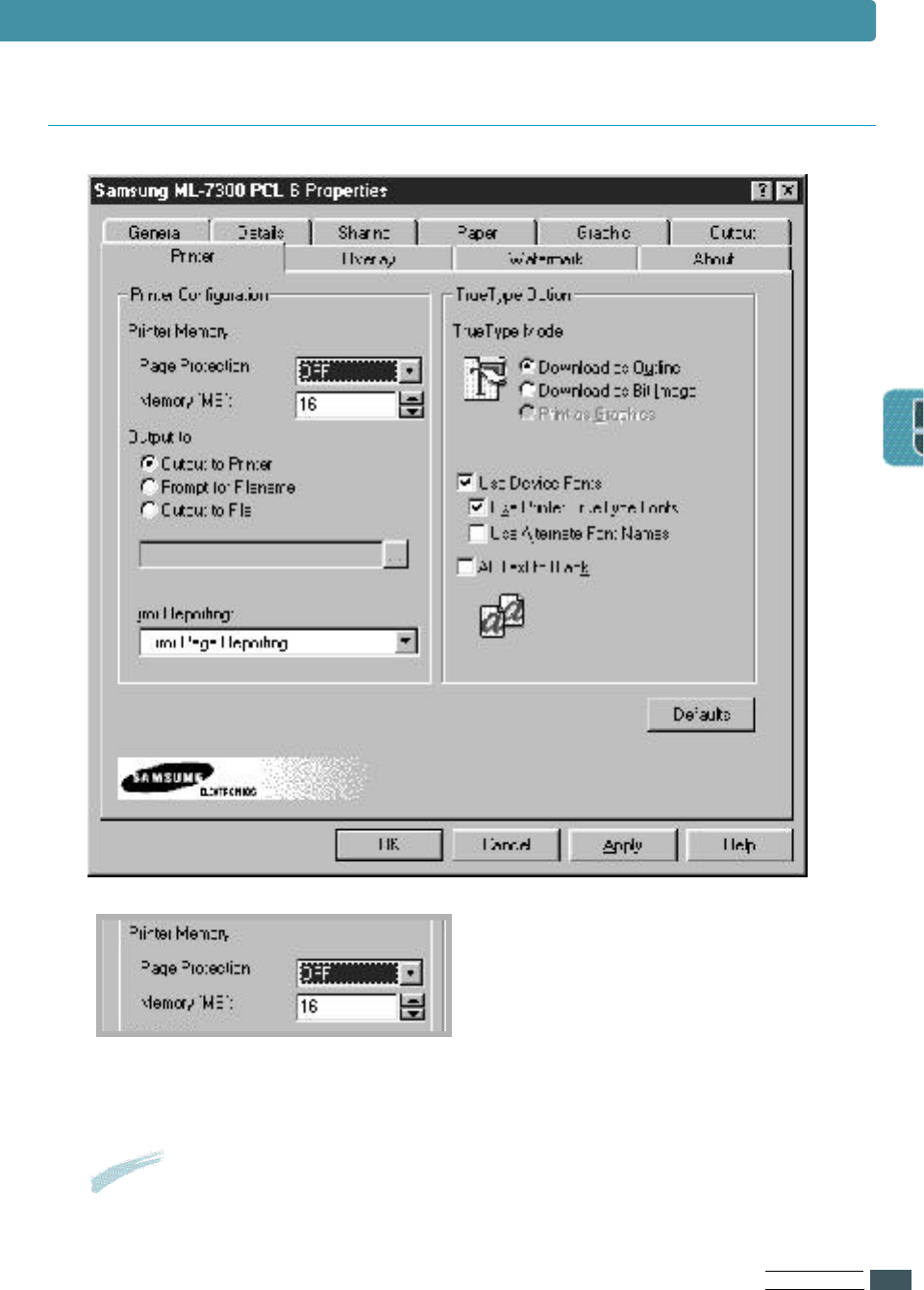 Printing Menu or Output tab of Samsung ML-7300 PCL 6 Drive r.