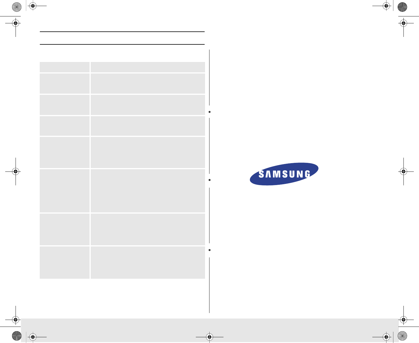 SAMSUNG Authorized Service Center. Along with this Statement, the