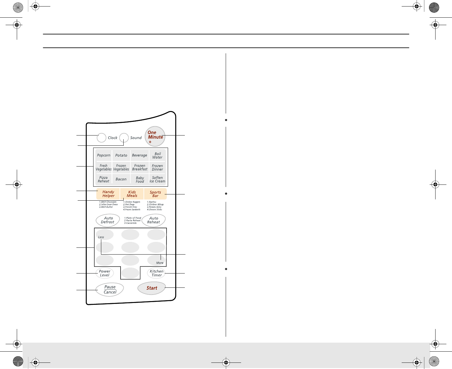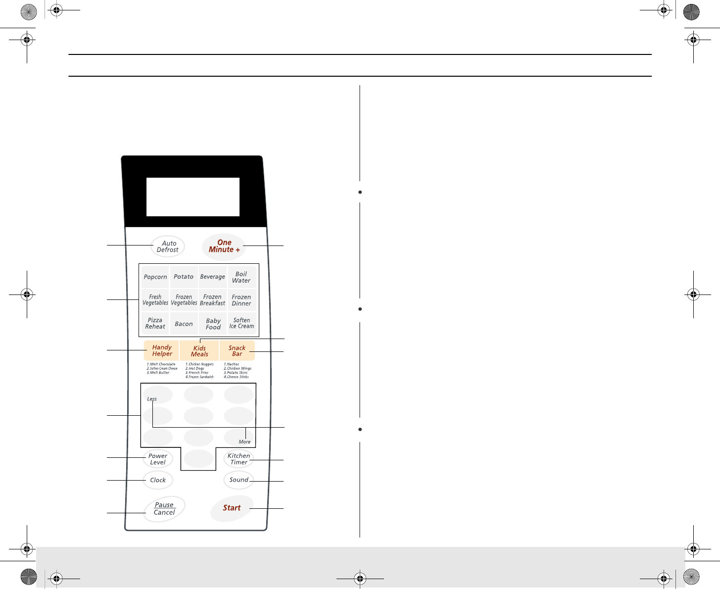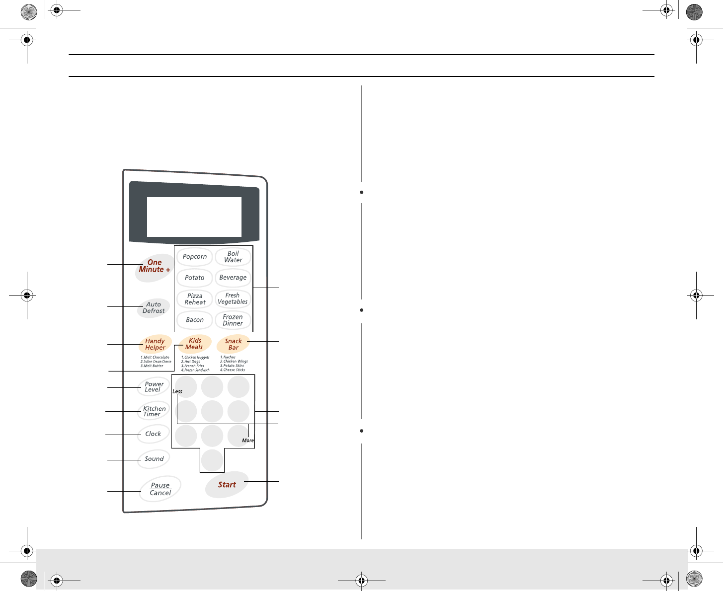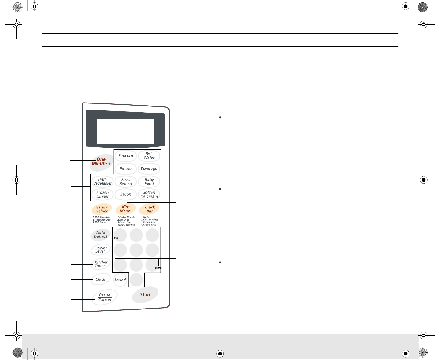 Buttons 1. Press button that corresponds to the food