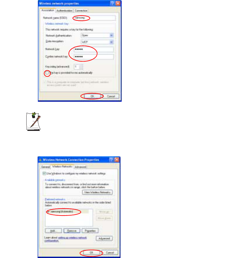 automatically'. Enter the encryption key in the Network key field, and click OK.