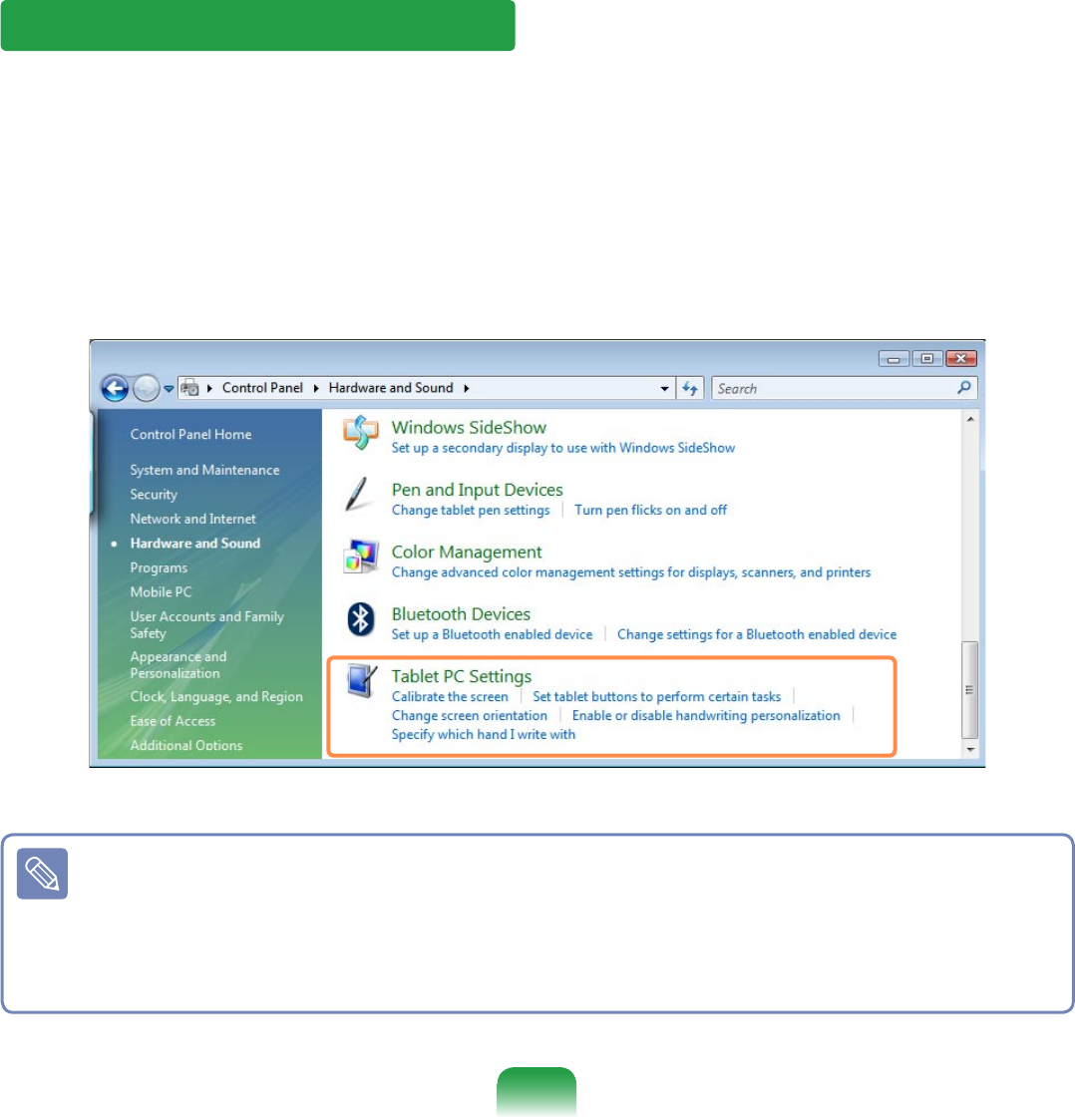 Click Start > Control Panel > Hardware and Sound > Tablet PC Settings.