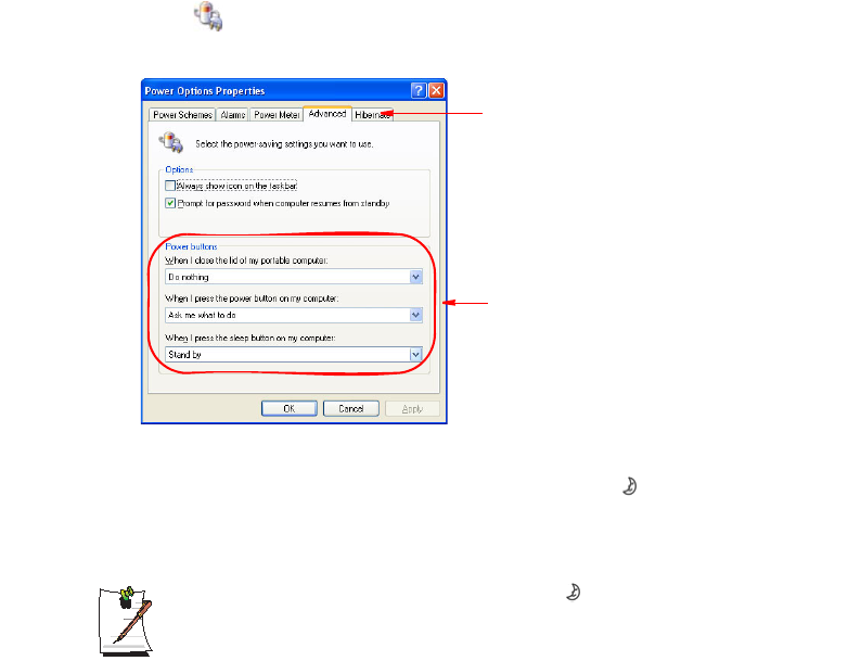 You can also reserve Turning Computer Off, Hibernation state, Hold Mode,