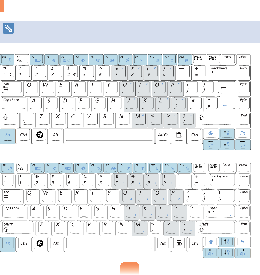 Ŷ 9DULRXVVKRUWFXWNH\VRQWKHNH\ERDUG
