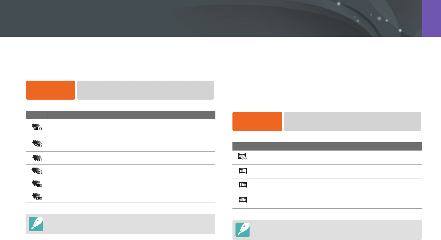 x0.5: Record a video and play it at 1/2 normal speed. (Available