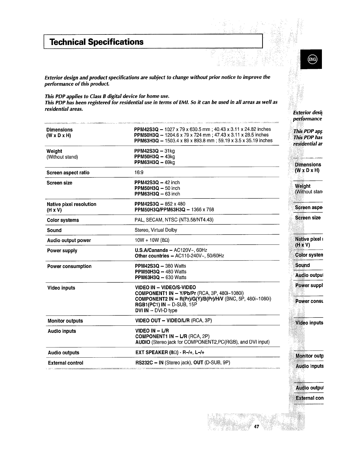 Samsung Electronics Co PPM63H3Q 63-inch PDP Monitor User Manual 2