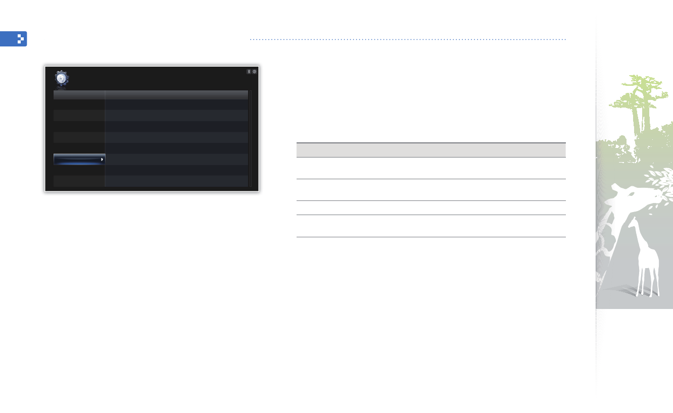 Screen Saver Select a screensaver (Slideshow or Clock)