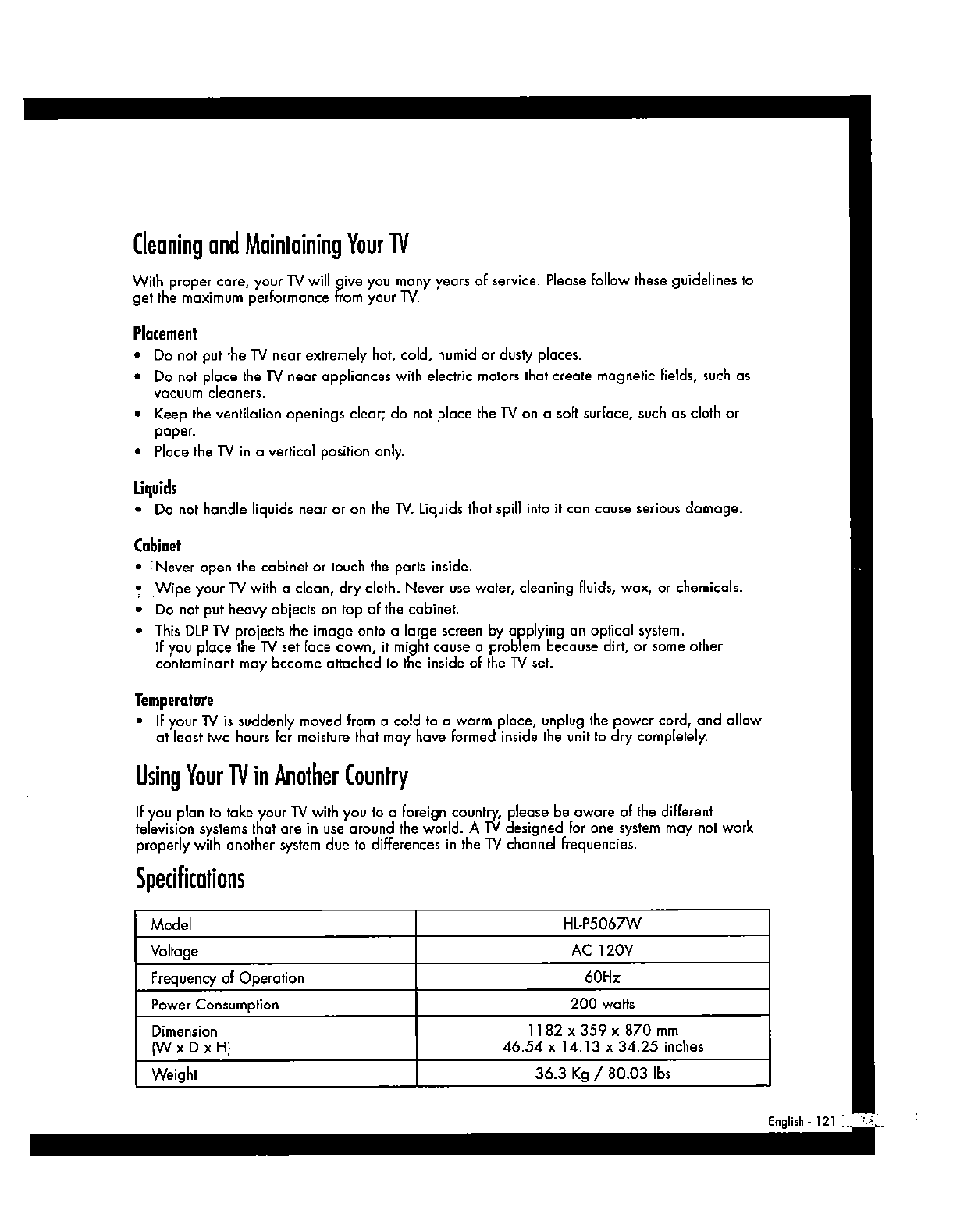 Samsung Electronics Co Ltd DLP Projection Monitor Users Manual