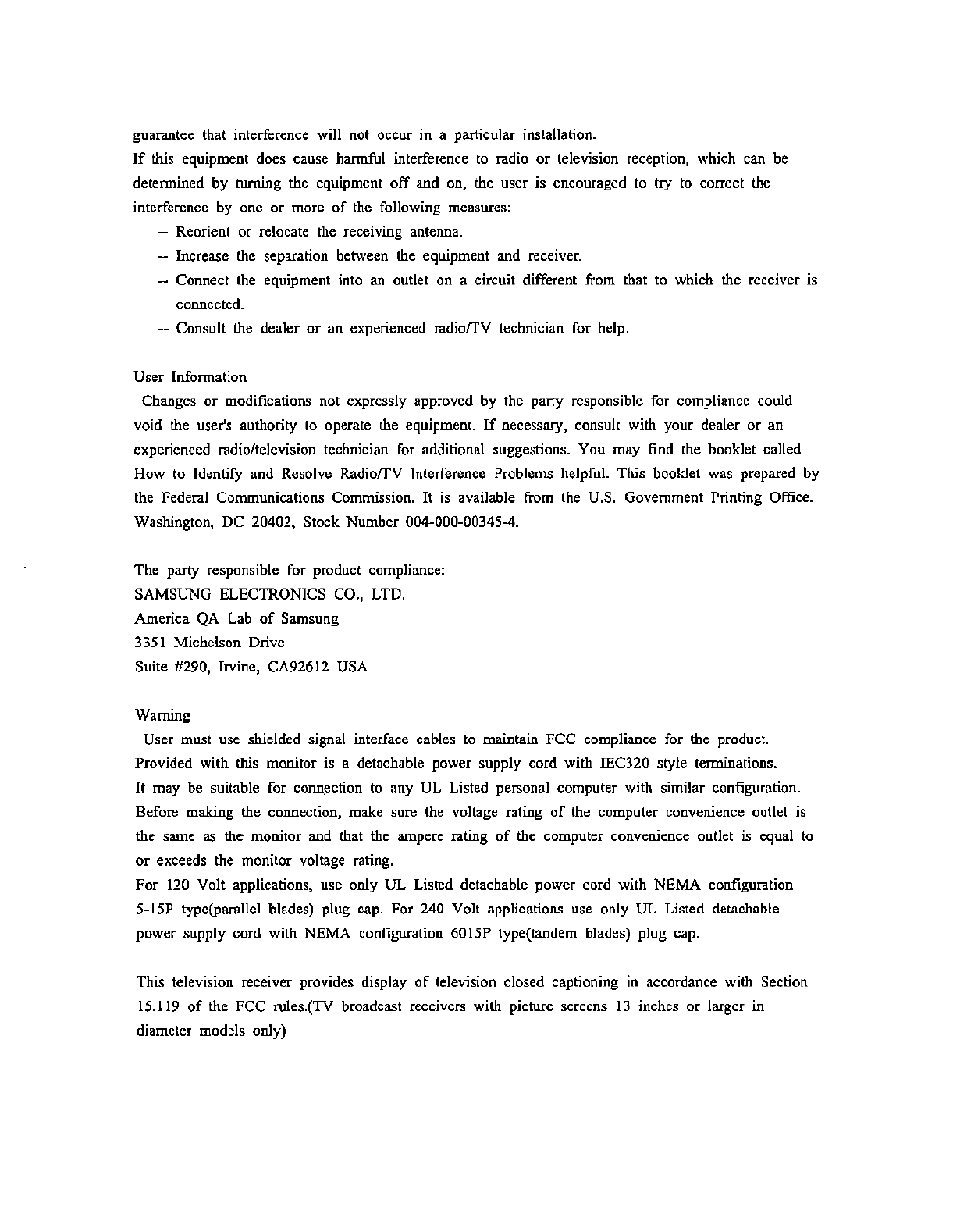 Samsung Electronics Co RC50U0 DLP Projection Monitor User Manual