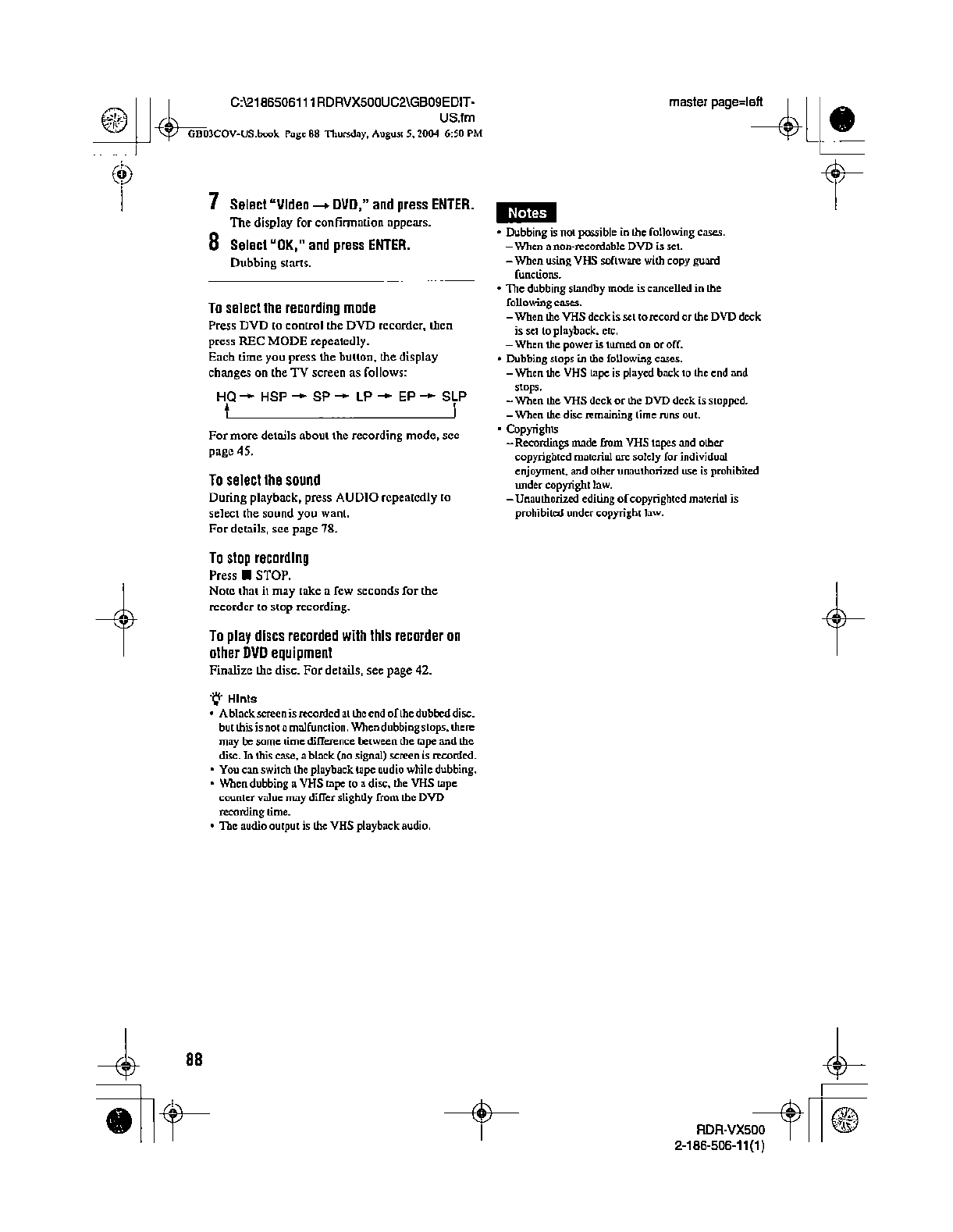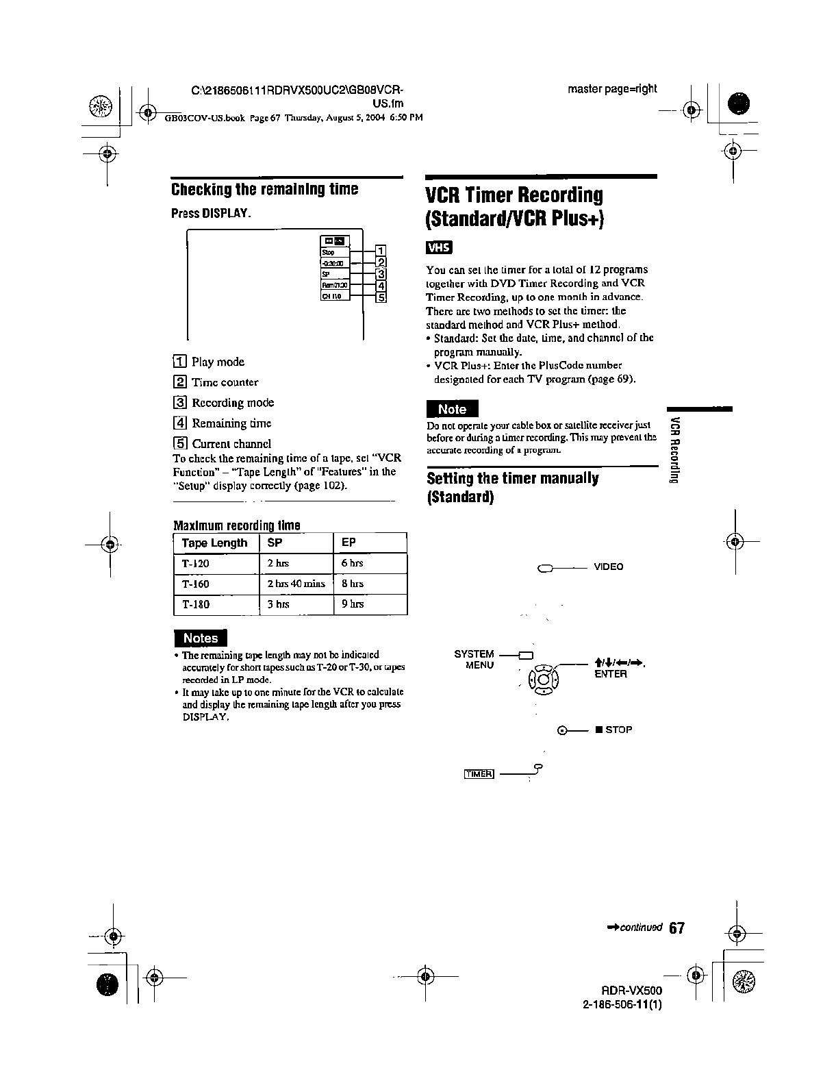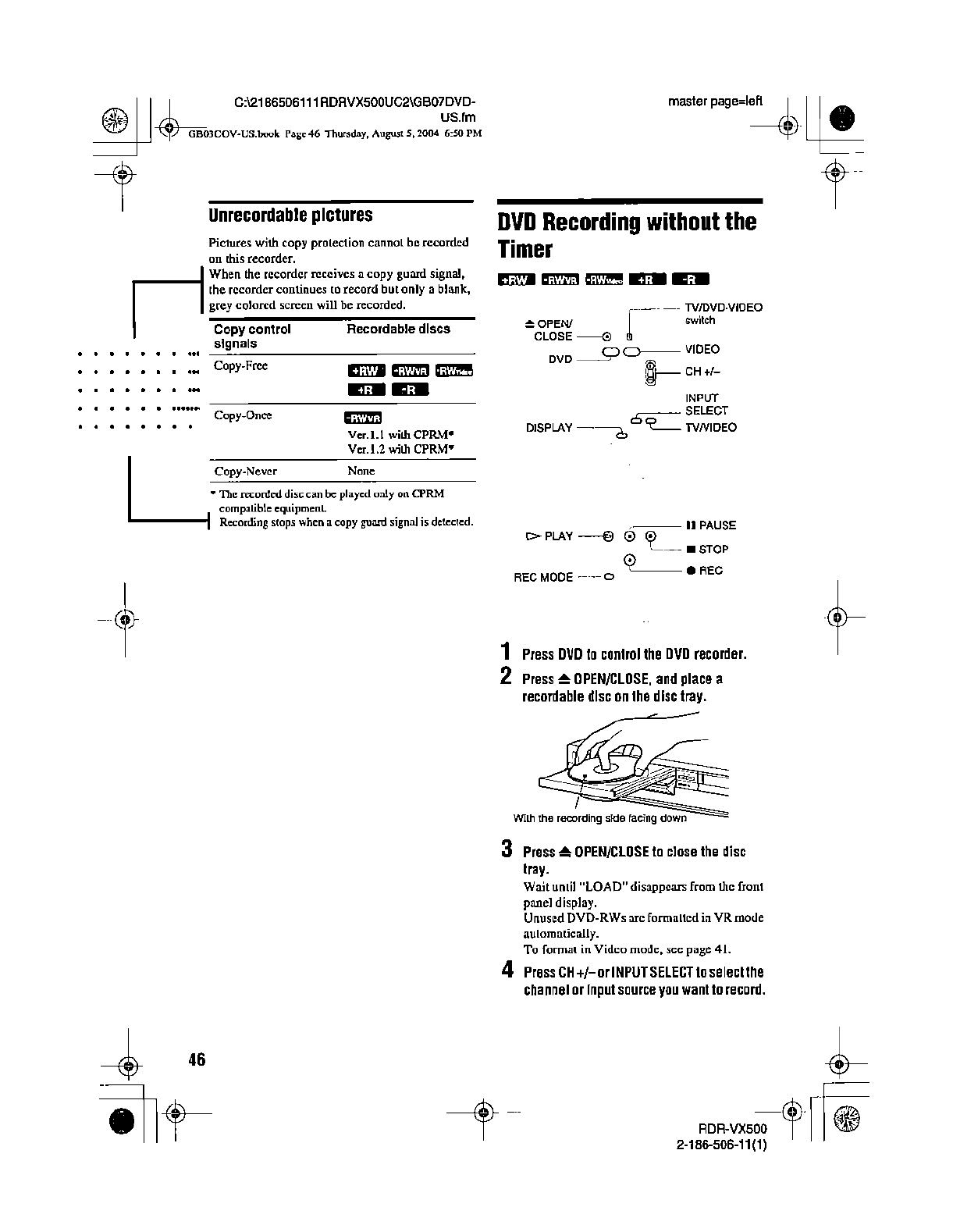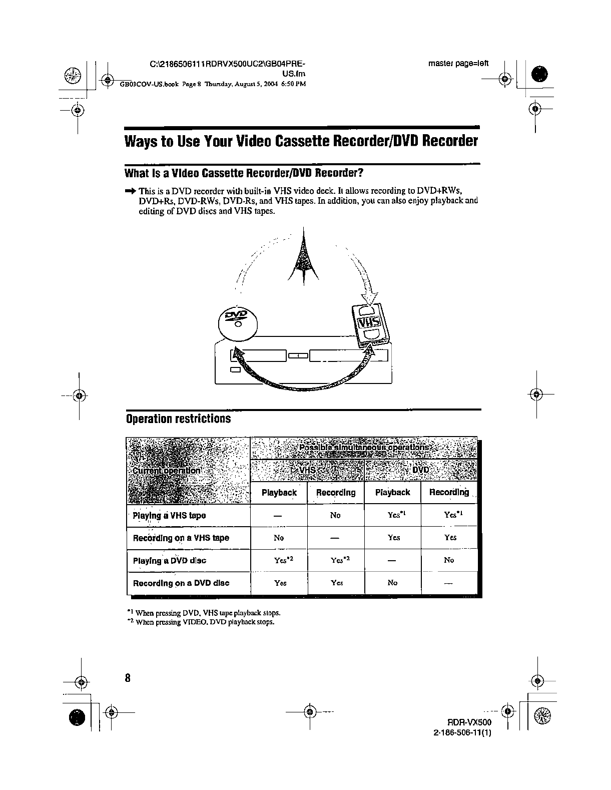Samsung Electronics Co RDRVX500 Video Cassette Recorder/ DVD Recorder User Manual