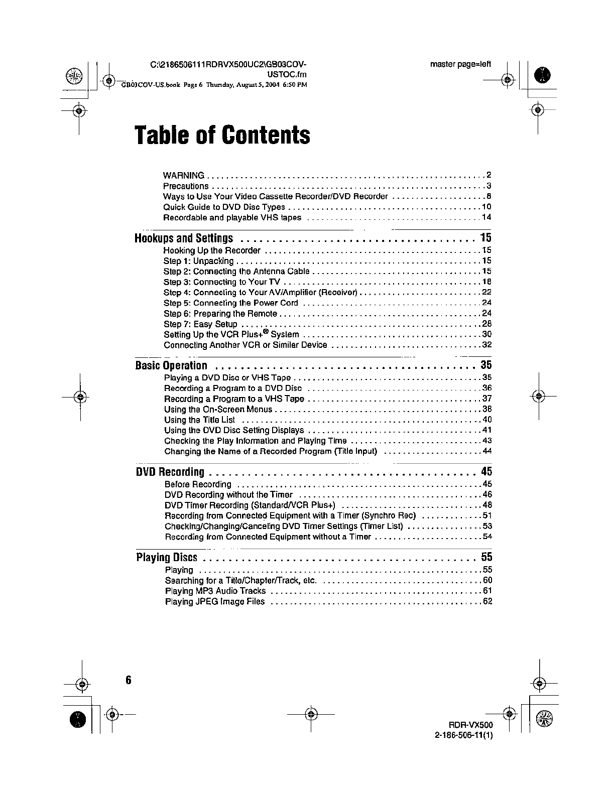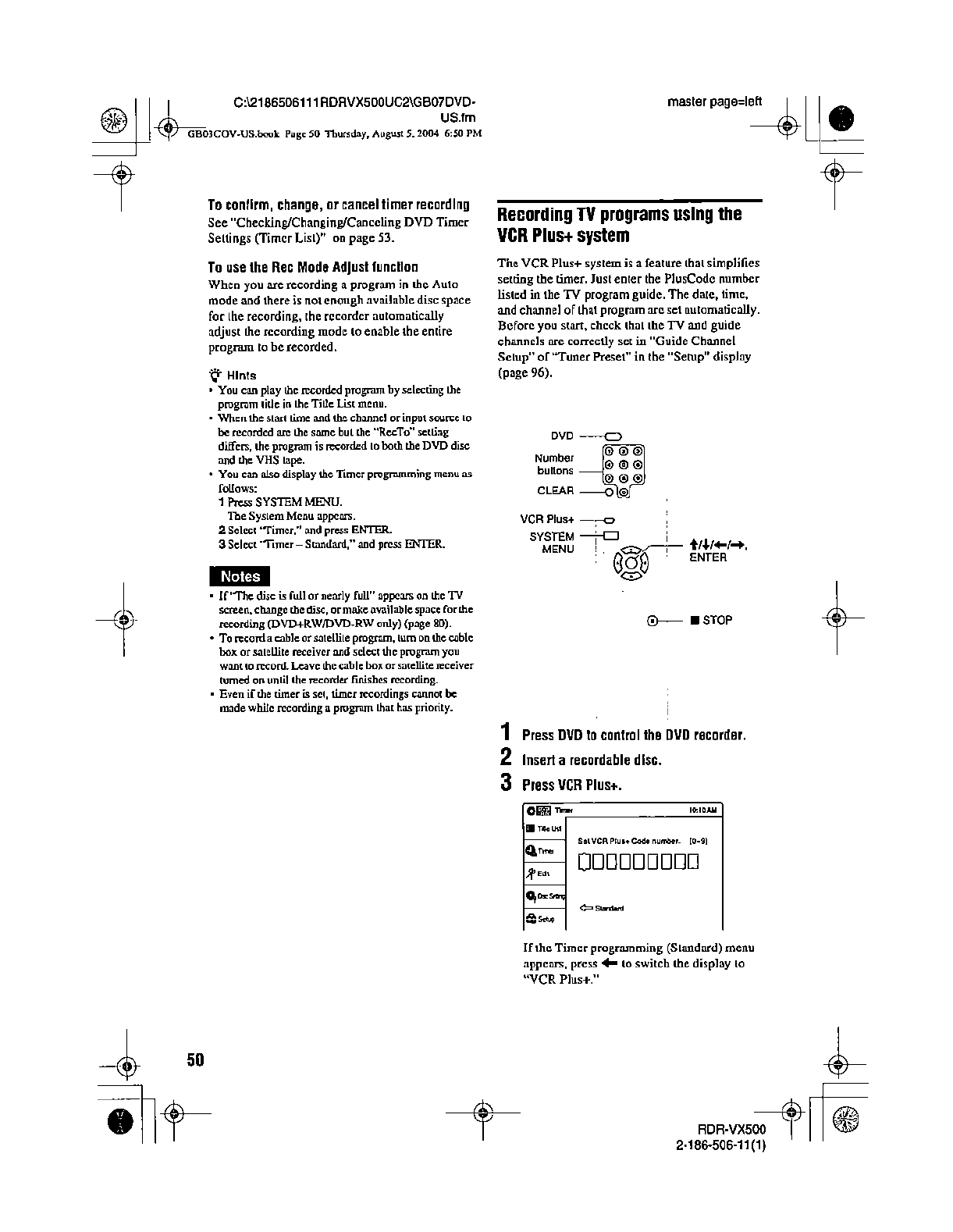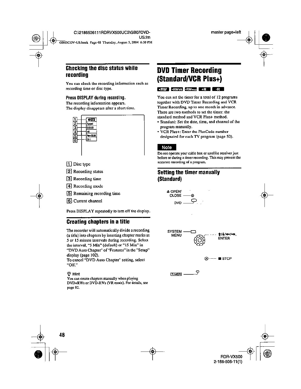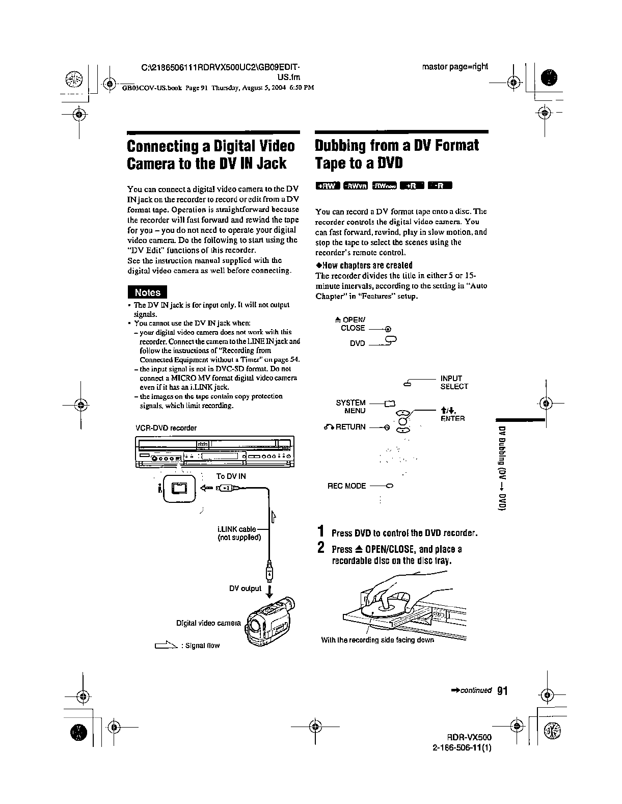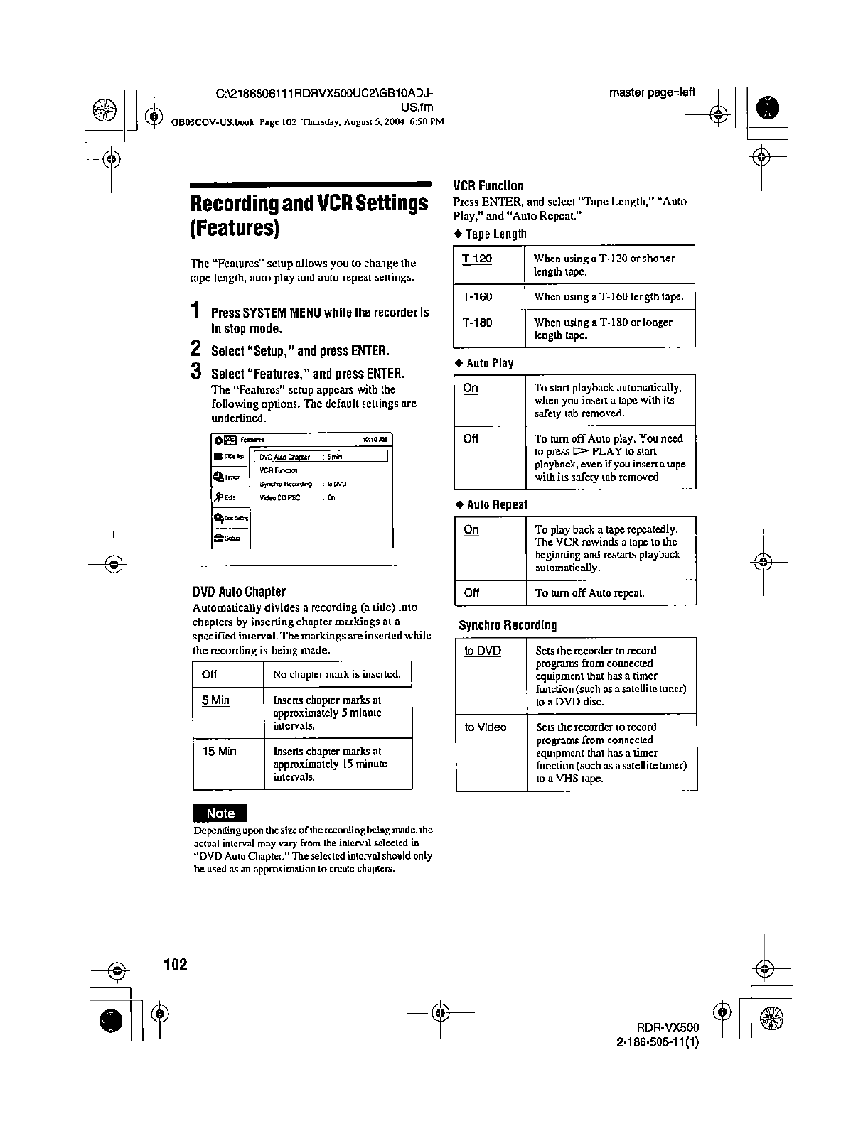 Samsung Electronics Co RDRVX500 Video Cassette Recorder/ DVD Recorder User Manual
