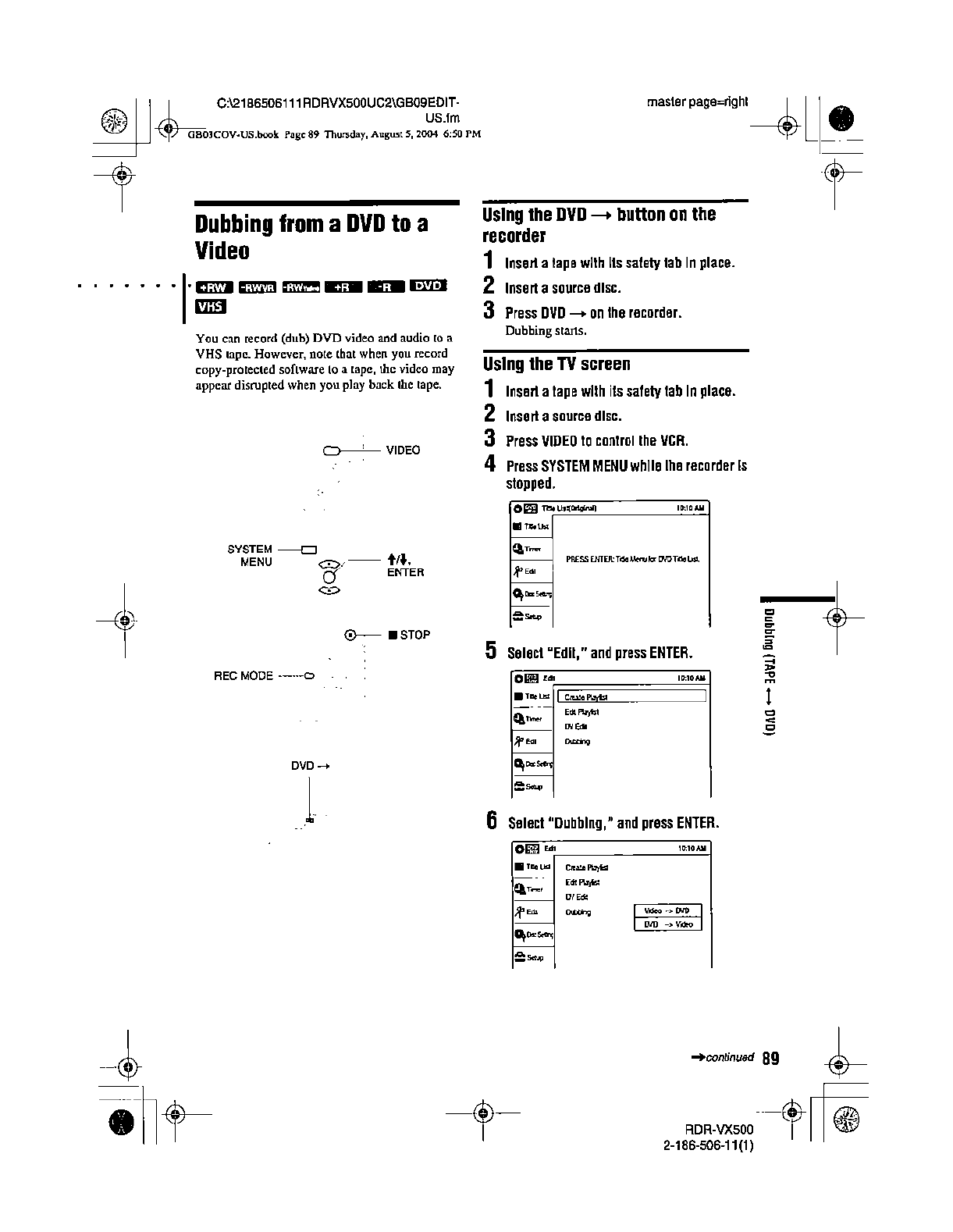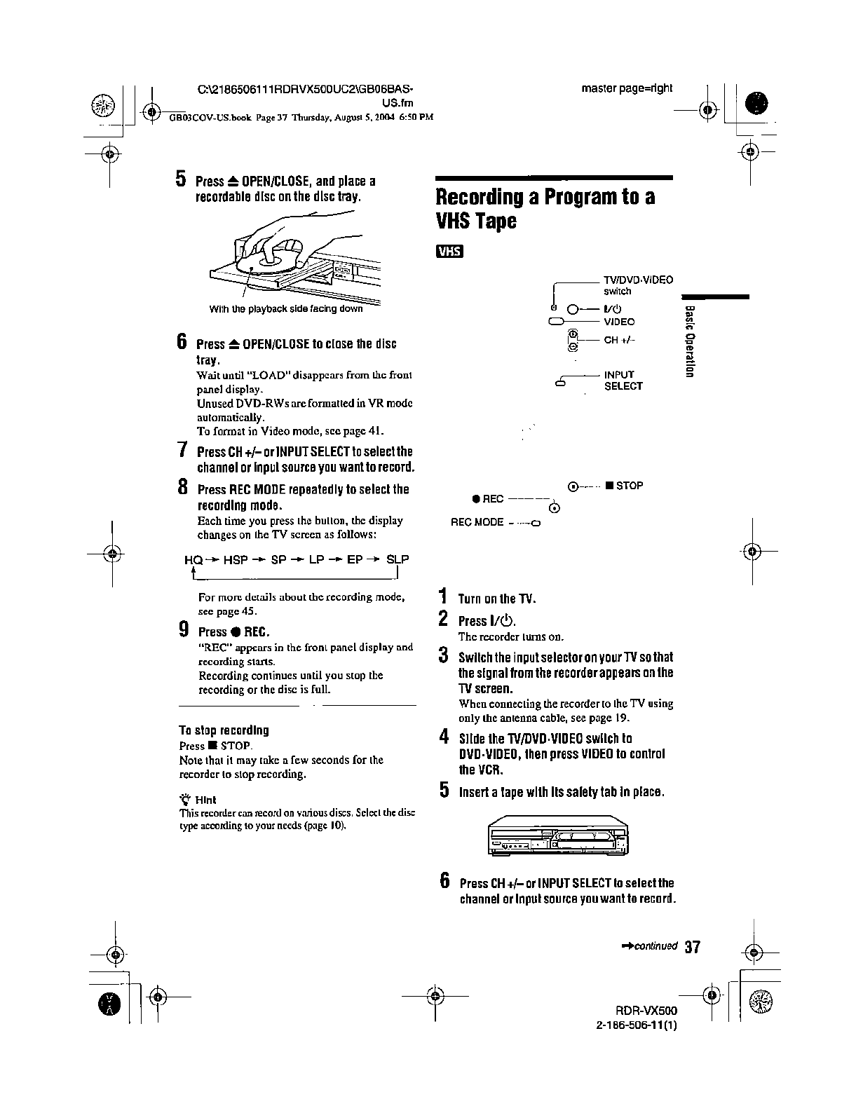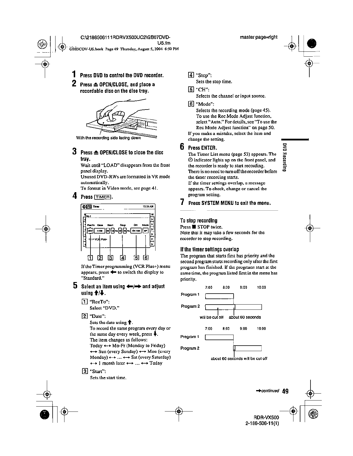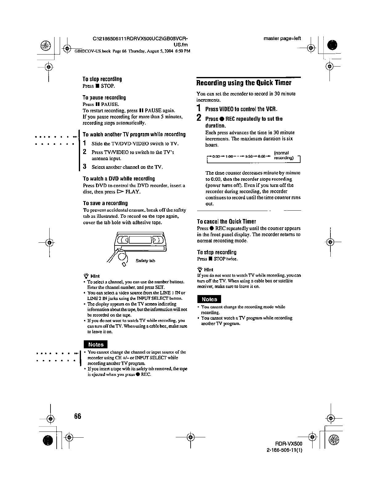 Samsung Electronics Co RDRVX500 Video Cassette Recorder/ DVD Recorder User Manual