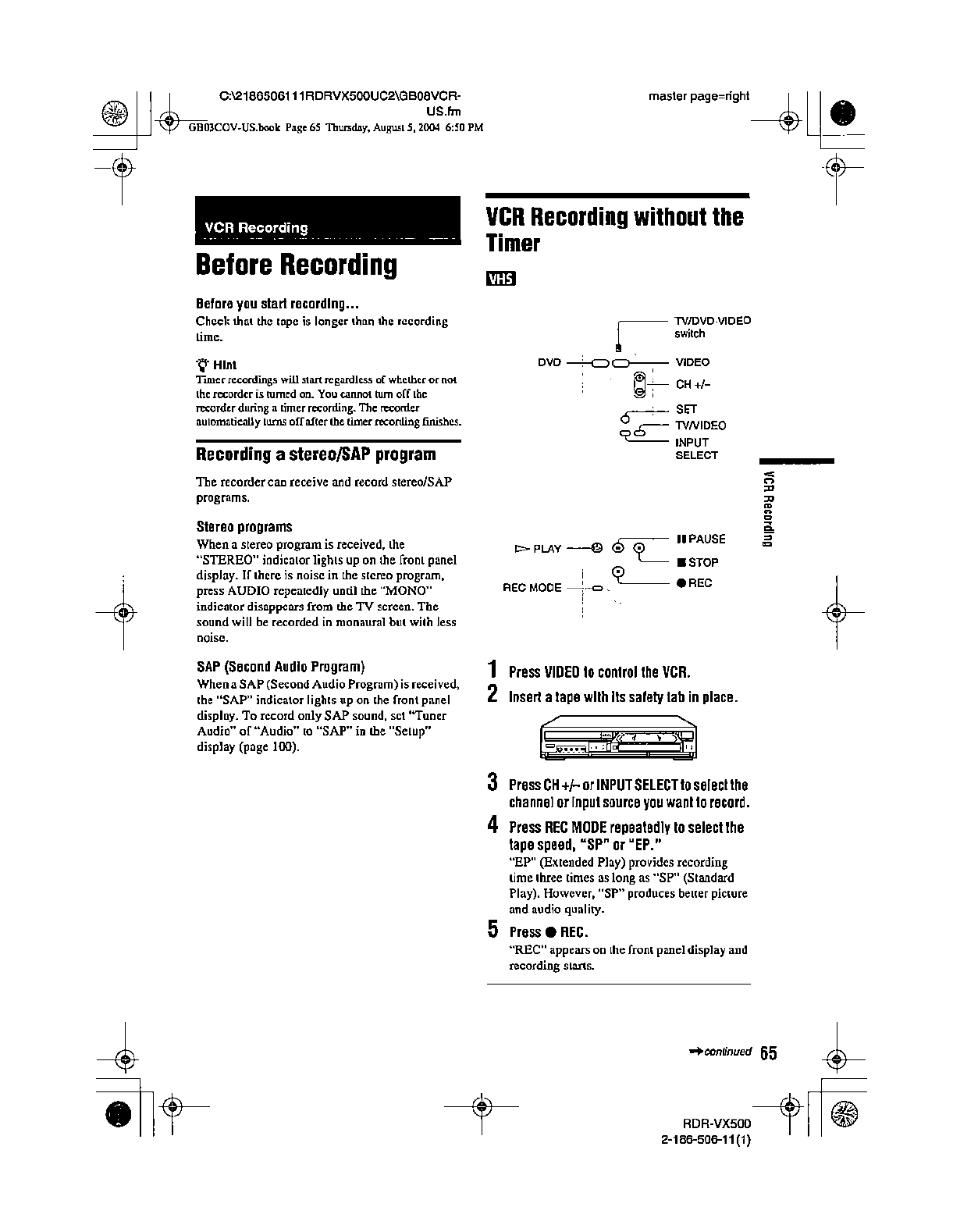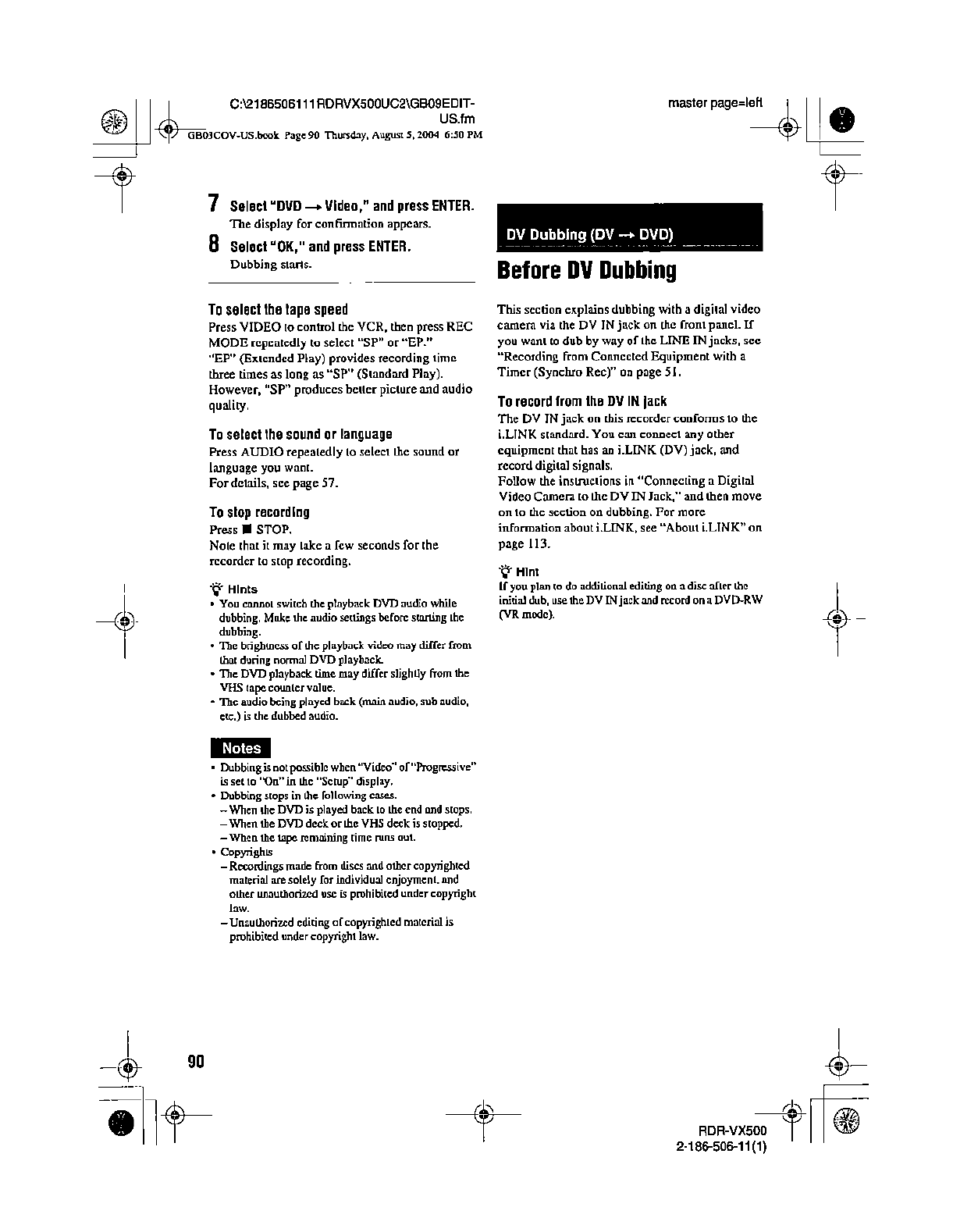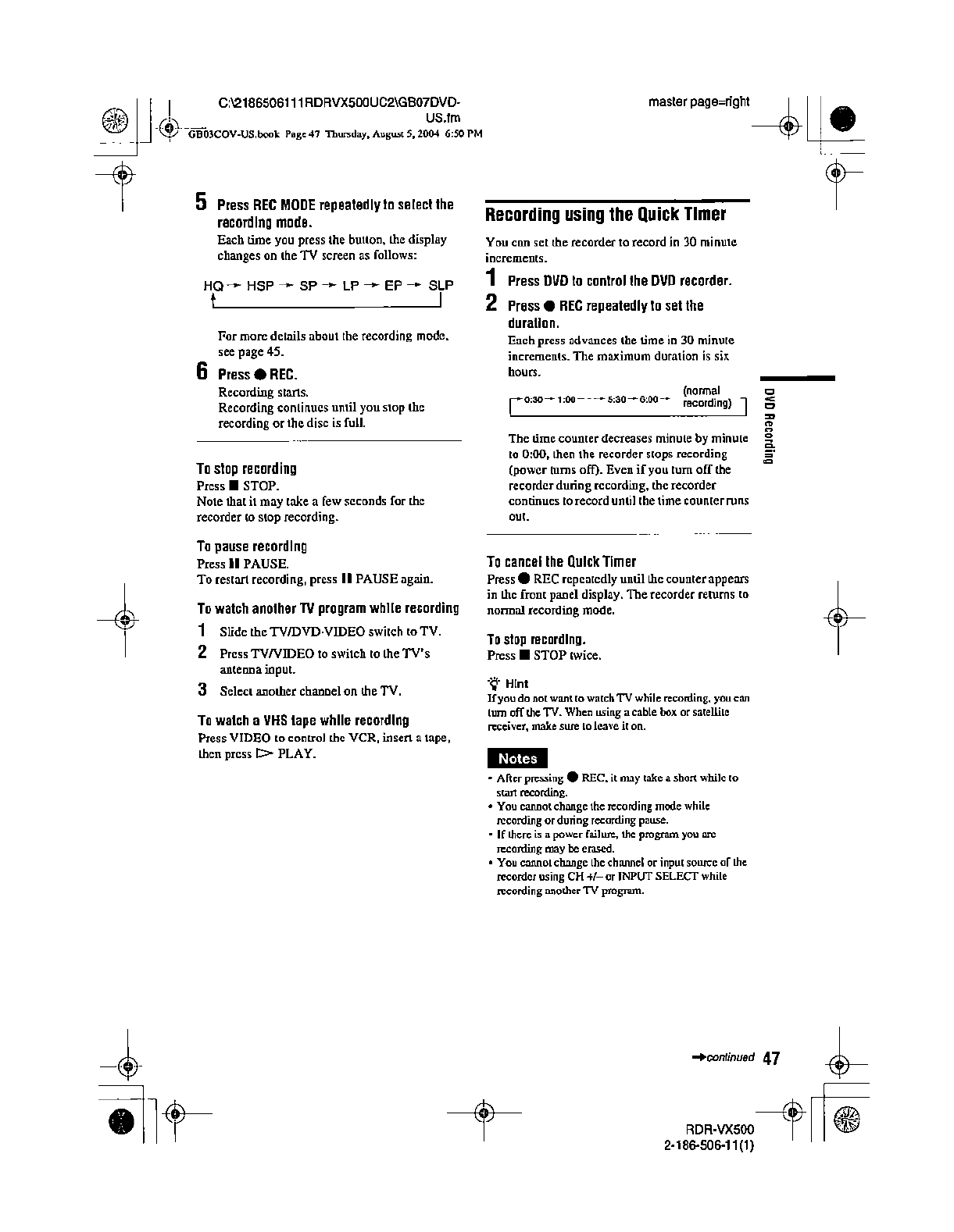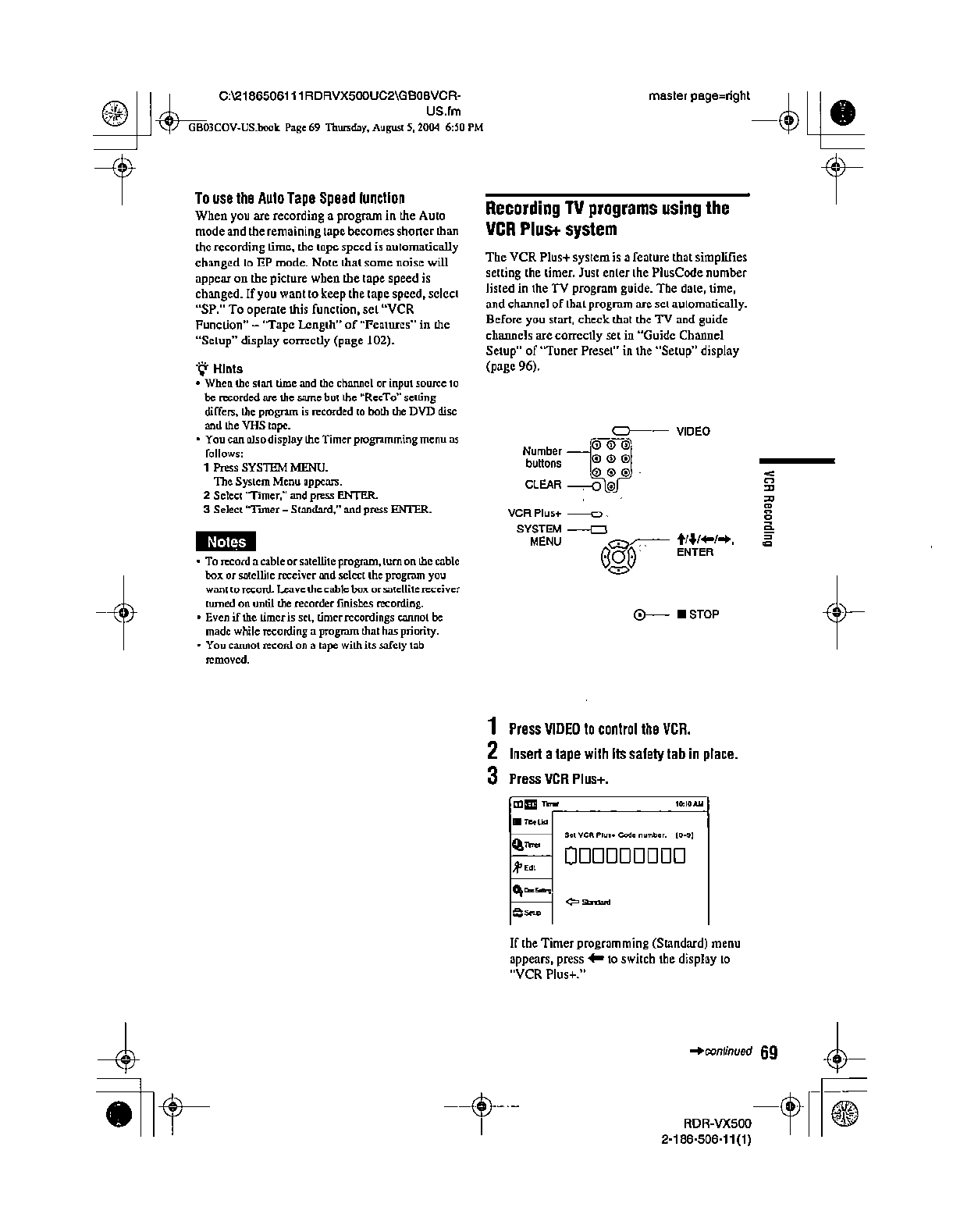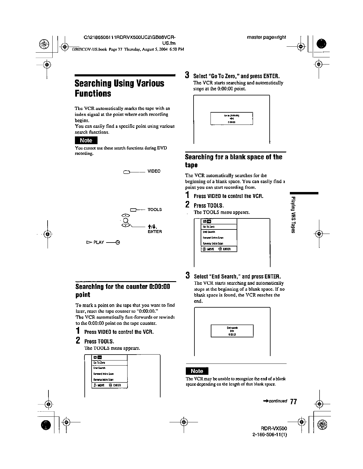 Samsung Electronics Co RDRVX500 Video Cassette Recorder/ DVD Recorder User Manual