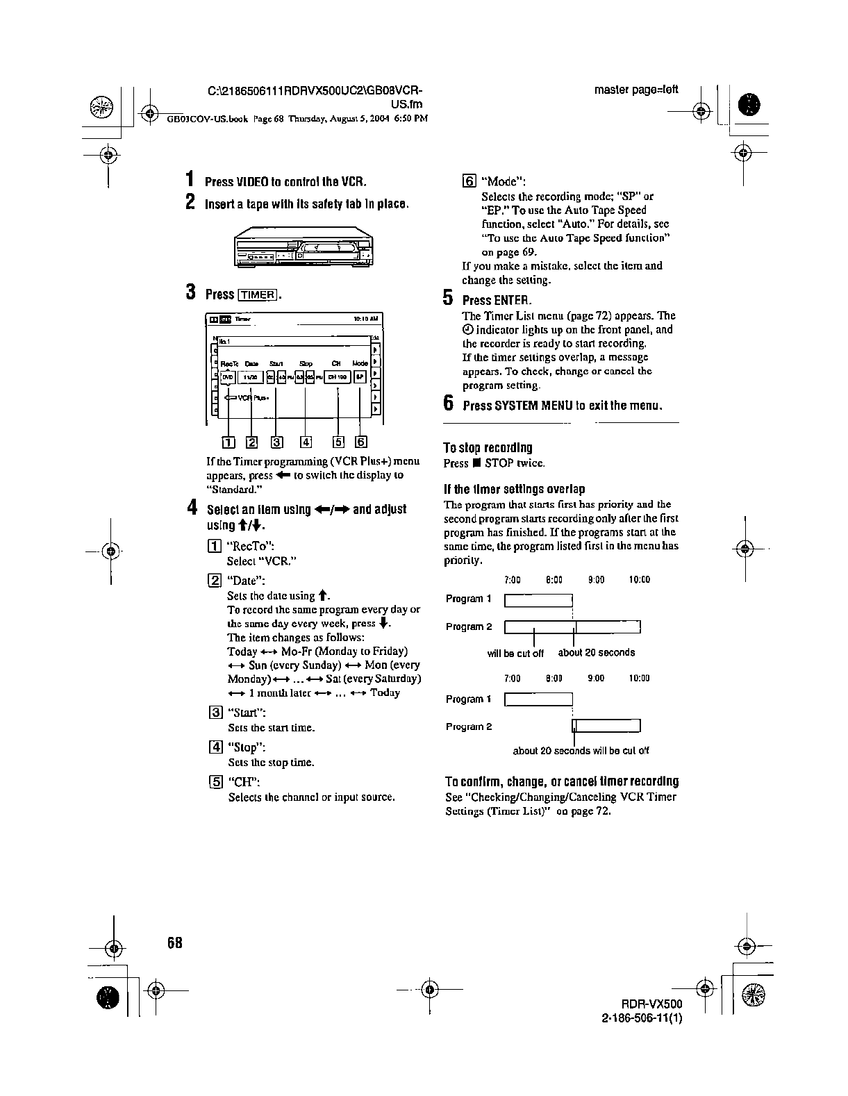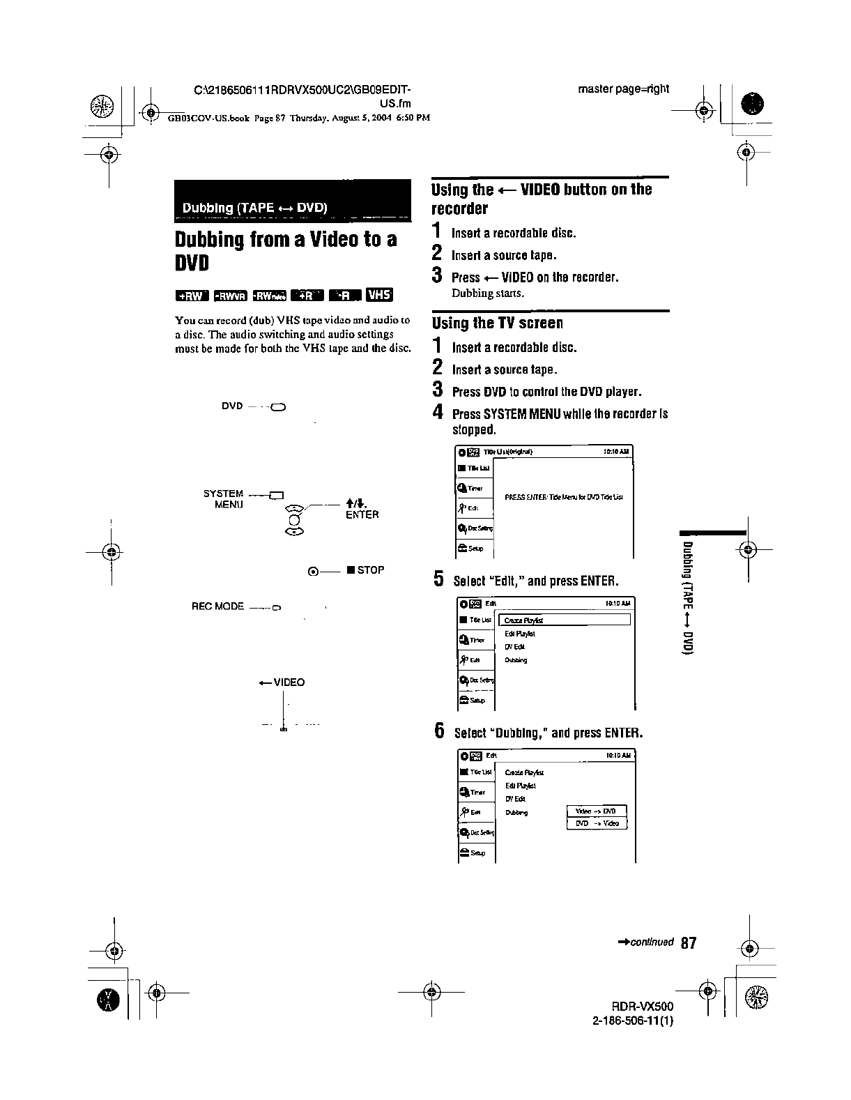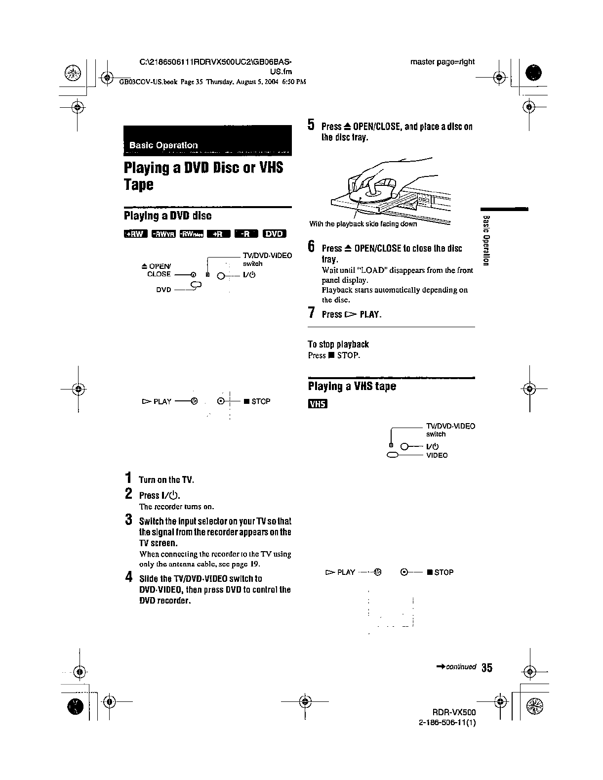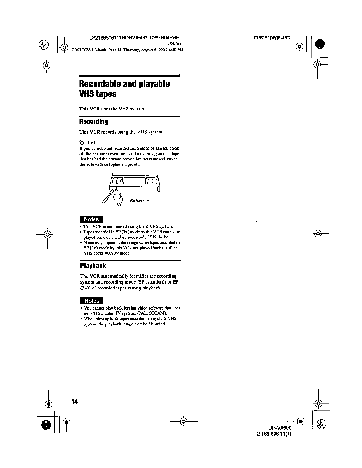 Samsung Electronics Co RDRVX500 Video Cassette Recorder/ DVD Recorder User Manual