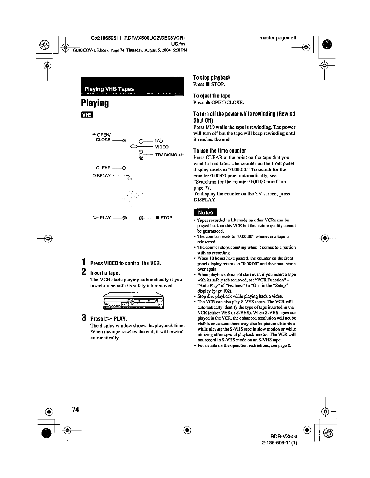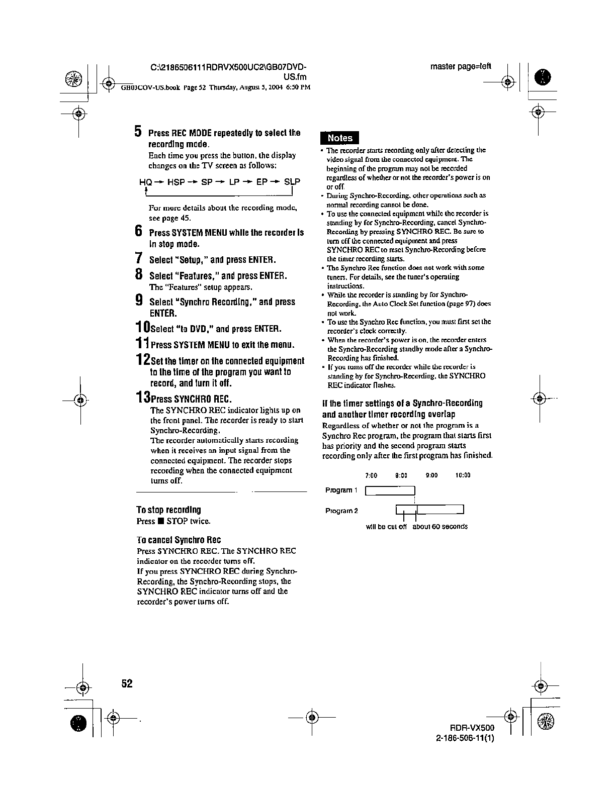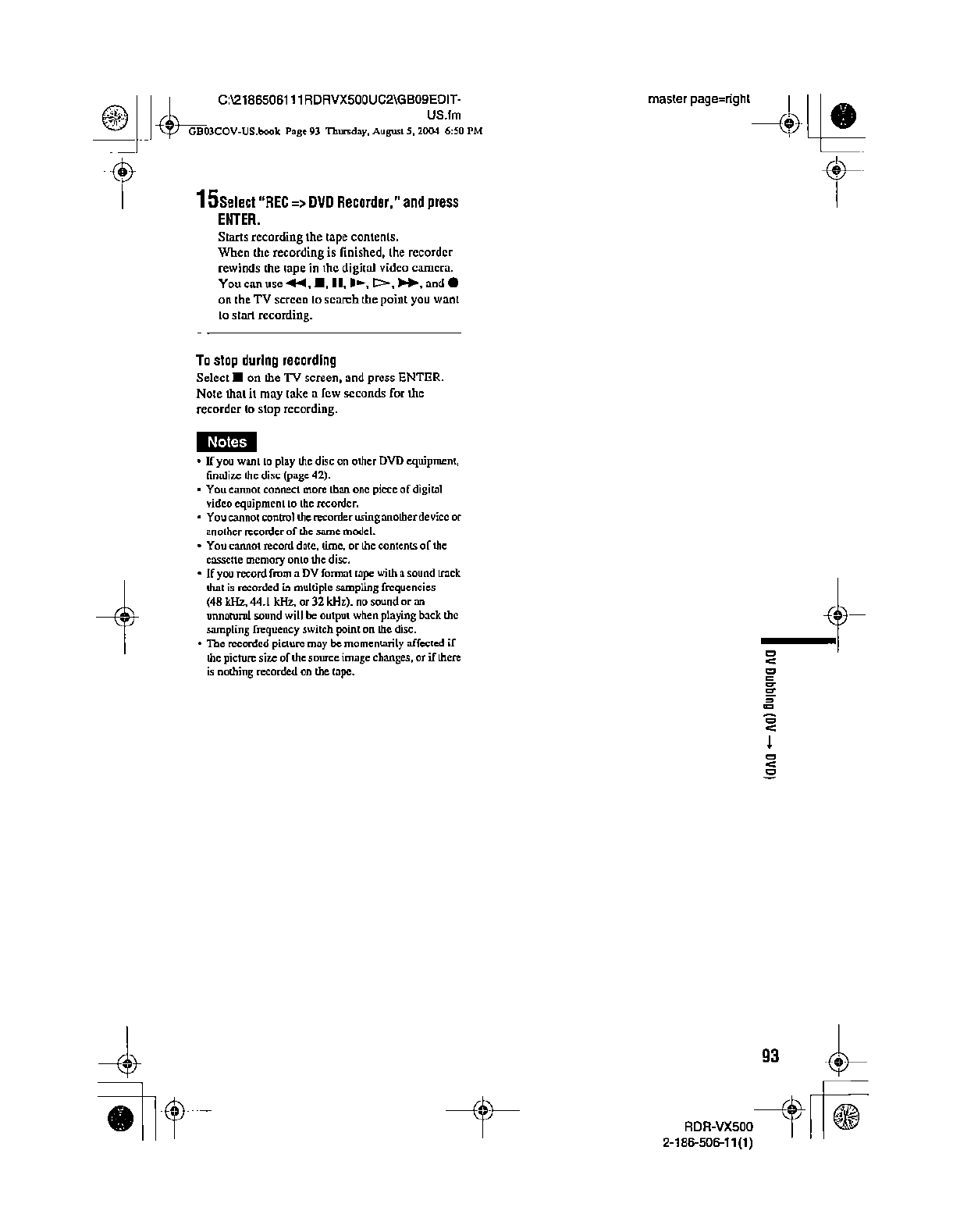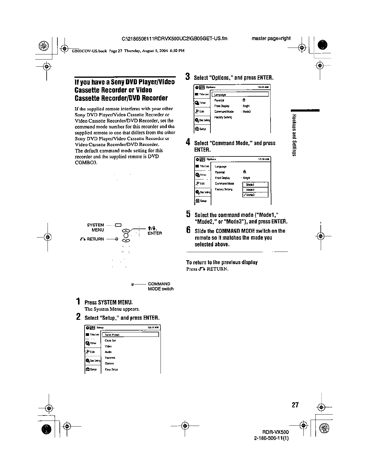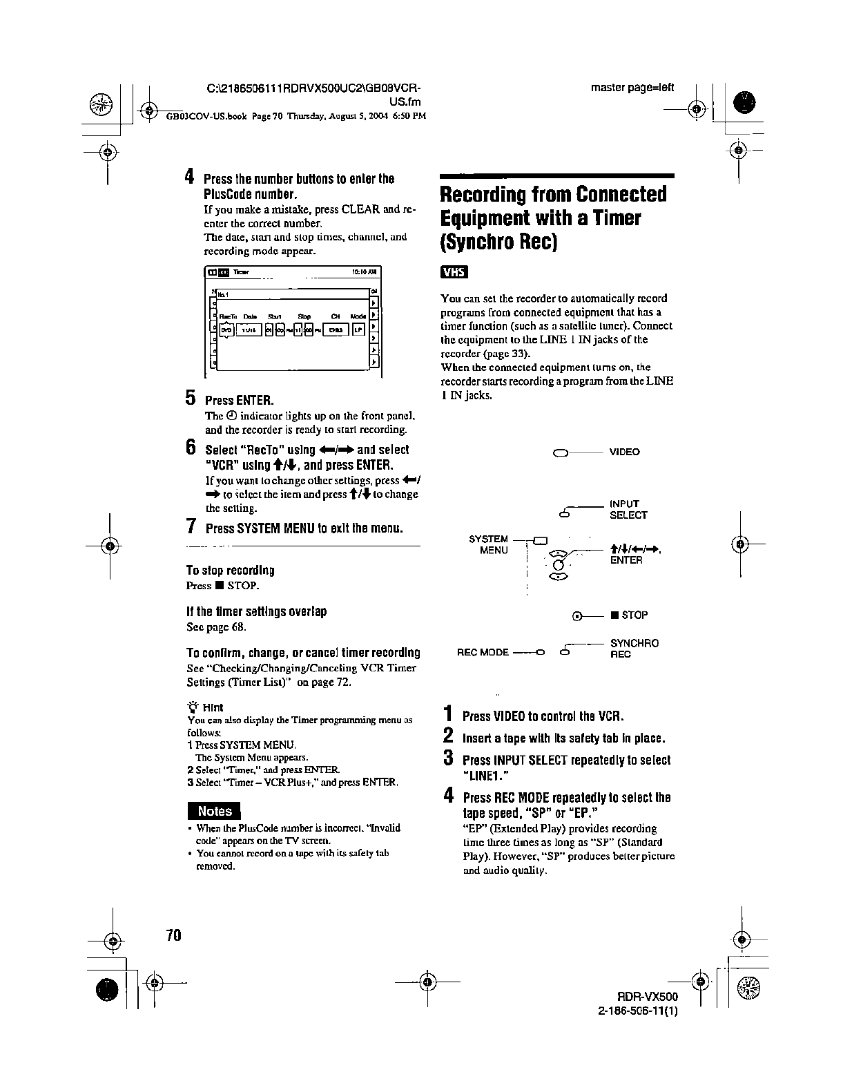 Samsung Electronics Co RDRVX500 Video Cassette Recorder/ DVD Recorder User Manual