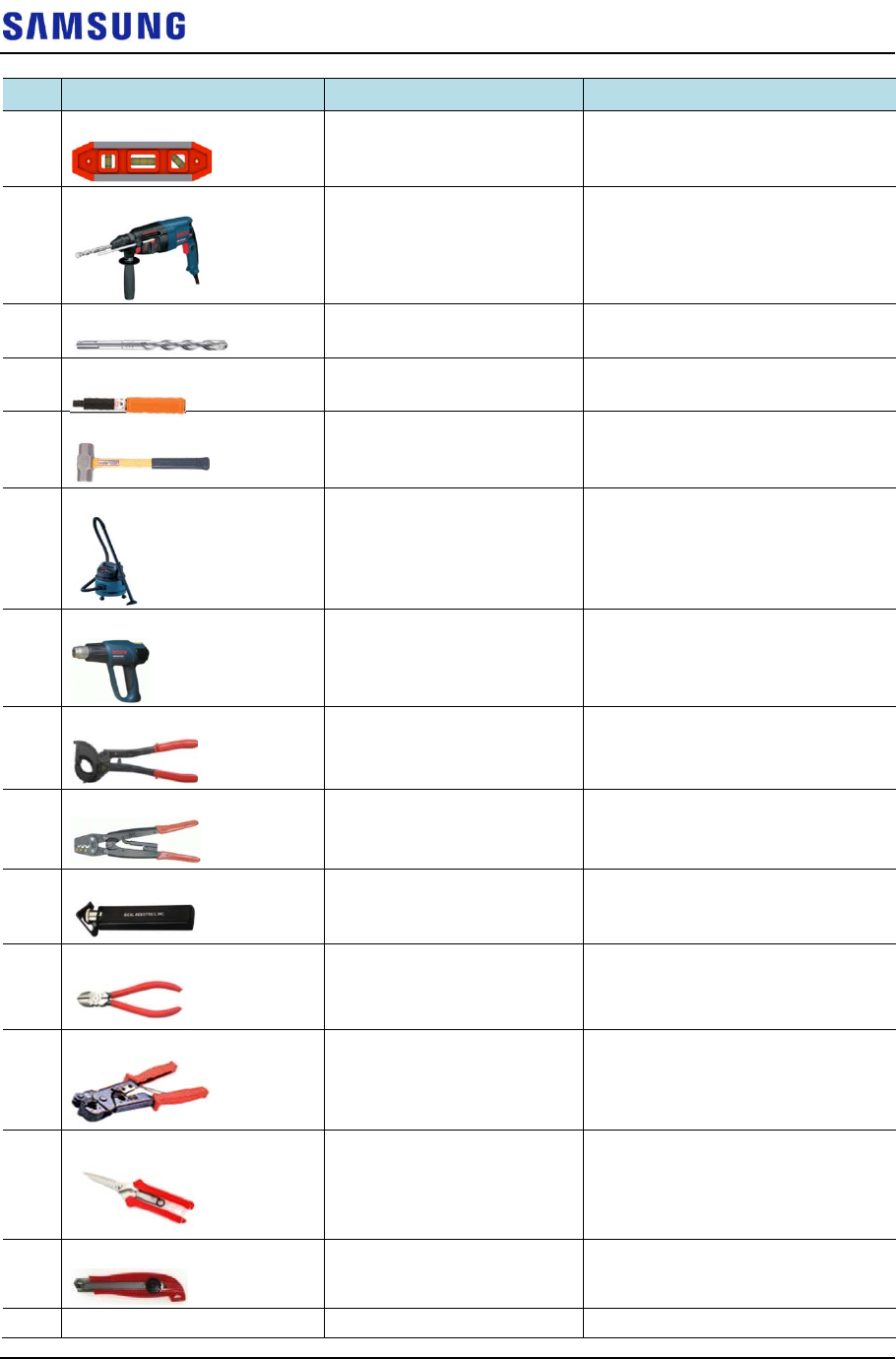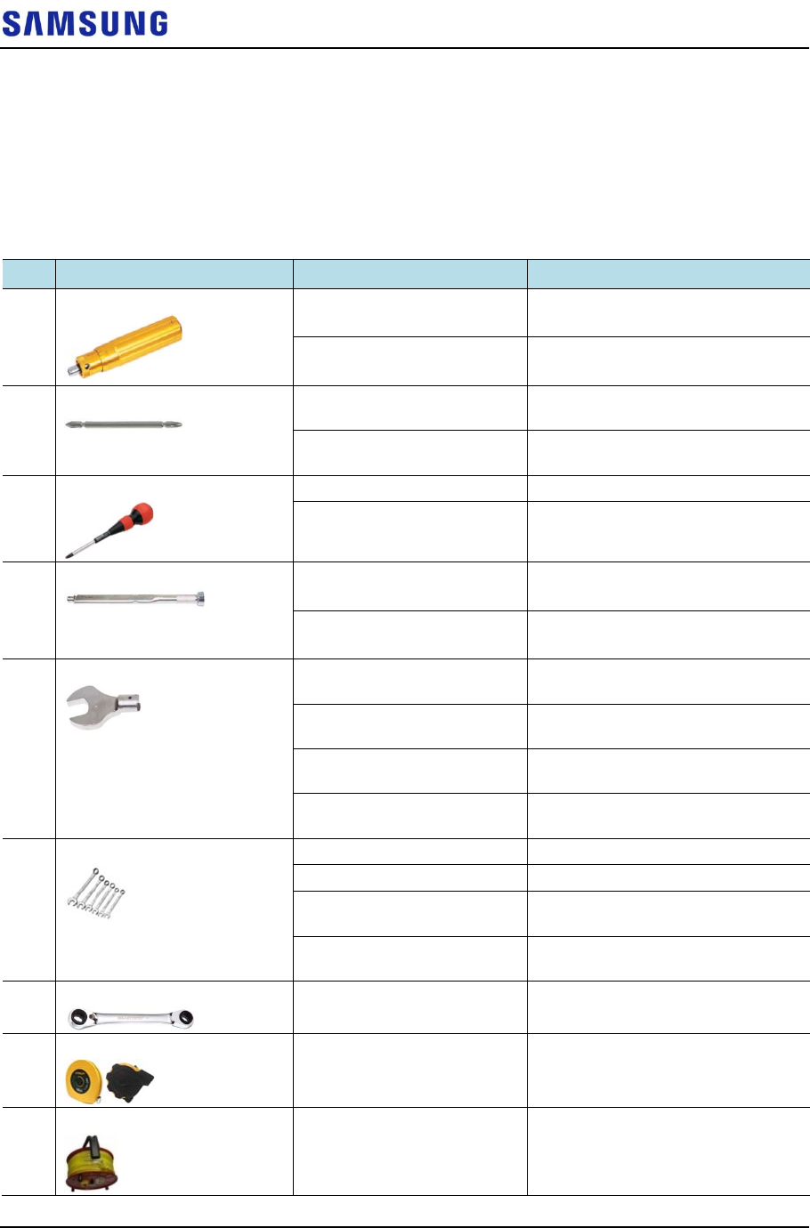 Table 15. Parts and Tools for fixing Mounting Bracket_3 Sector Wall Type