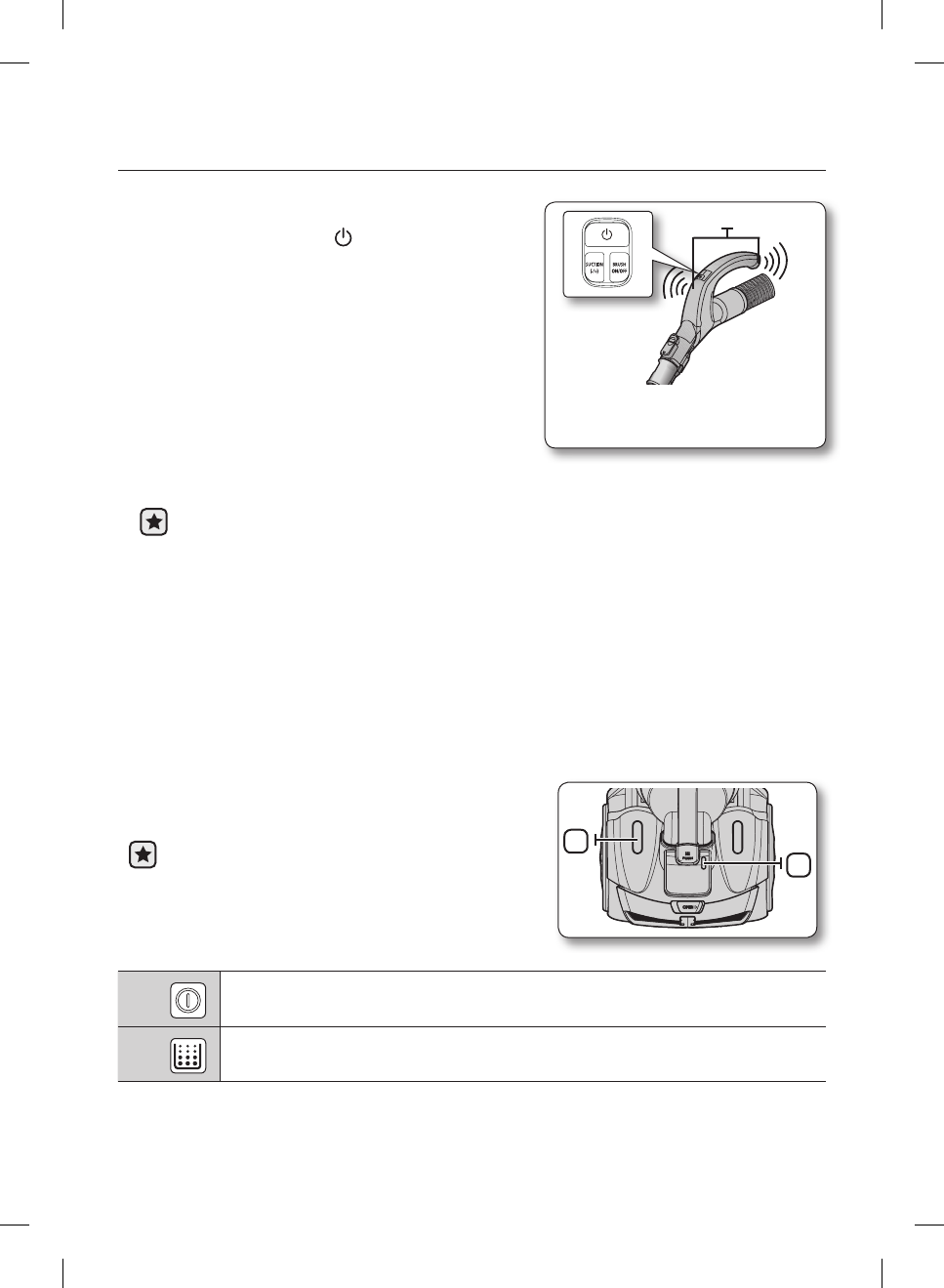 - Press the [ ] button to operate the vacuum cleaner. Press