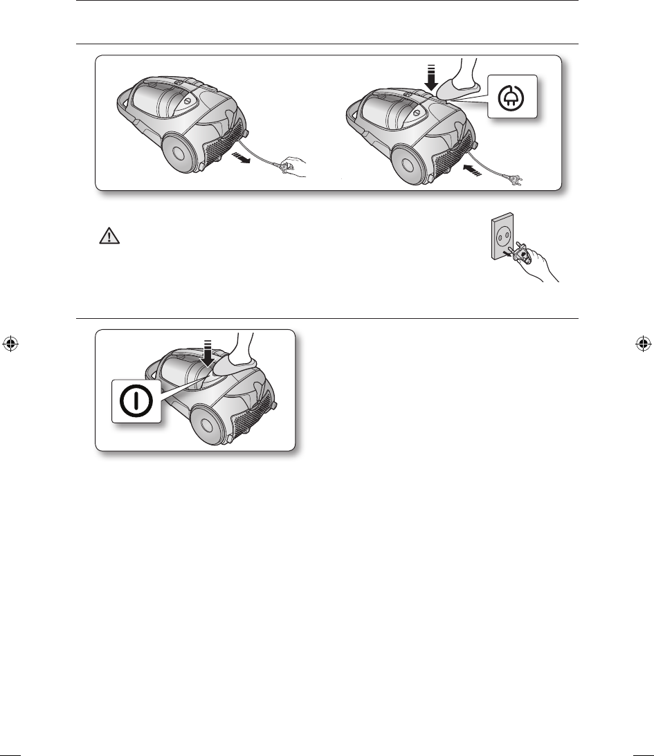 • Pull the cord out 2-3m and push down the cord rewind