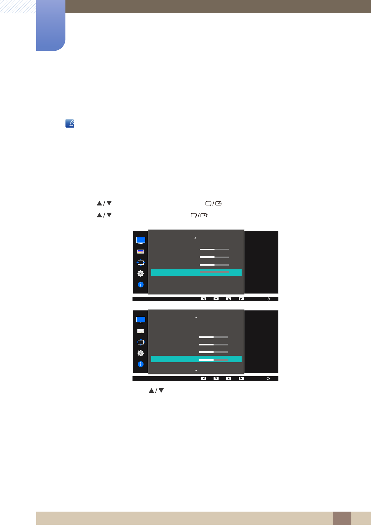 On screen display (OSD) allows you to customize on-screen settings to optimize the picture quality as
