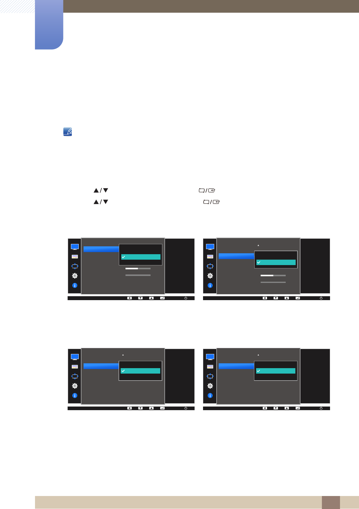 On screen display (OSD) allows you to customize on-screen settings to optimize the picture quality as