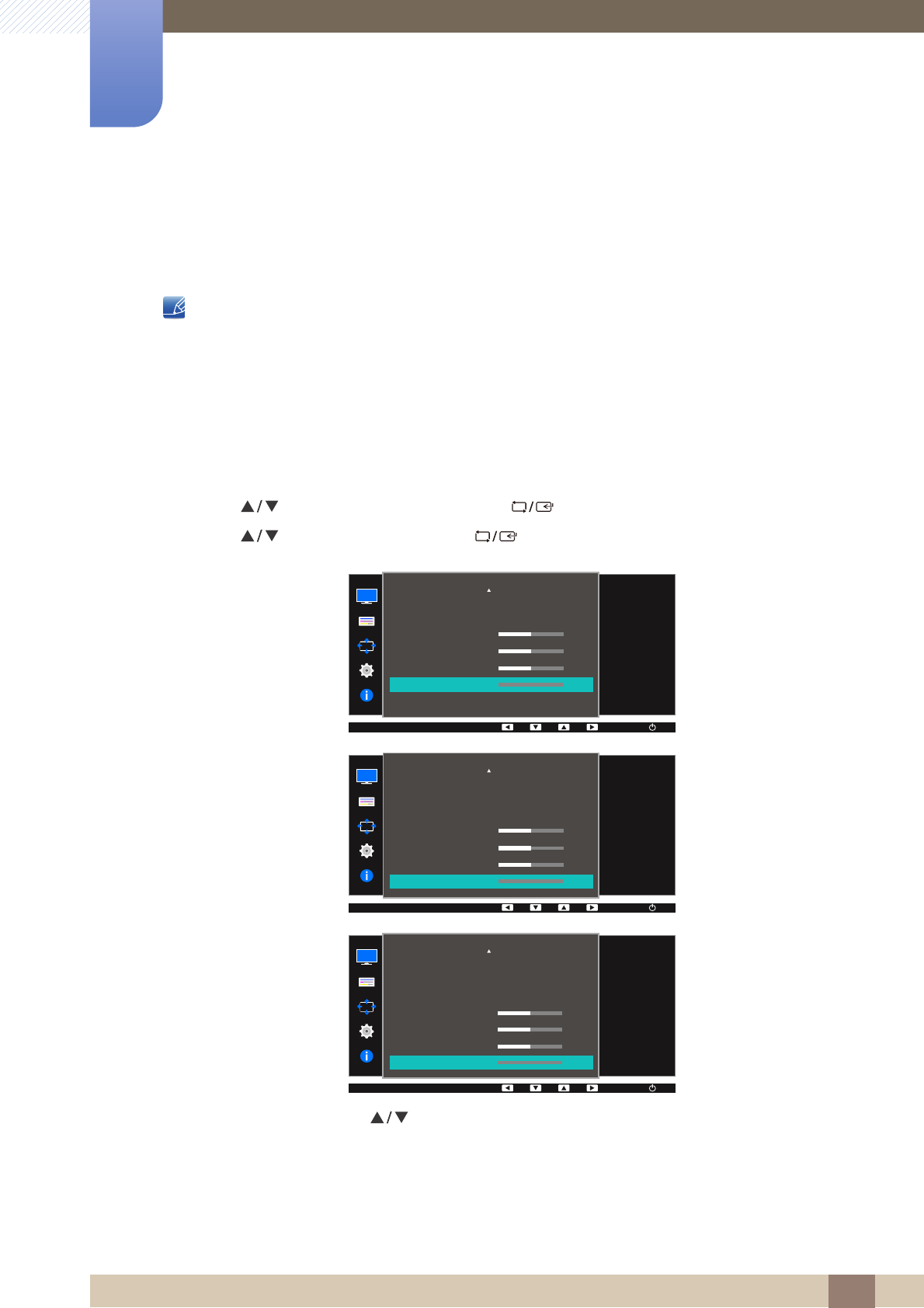 On screen display (OSD) allows you to customize on-screen settings to optimize the picture quality as