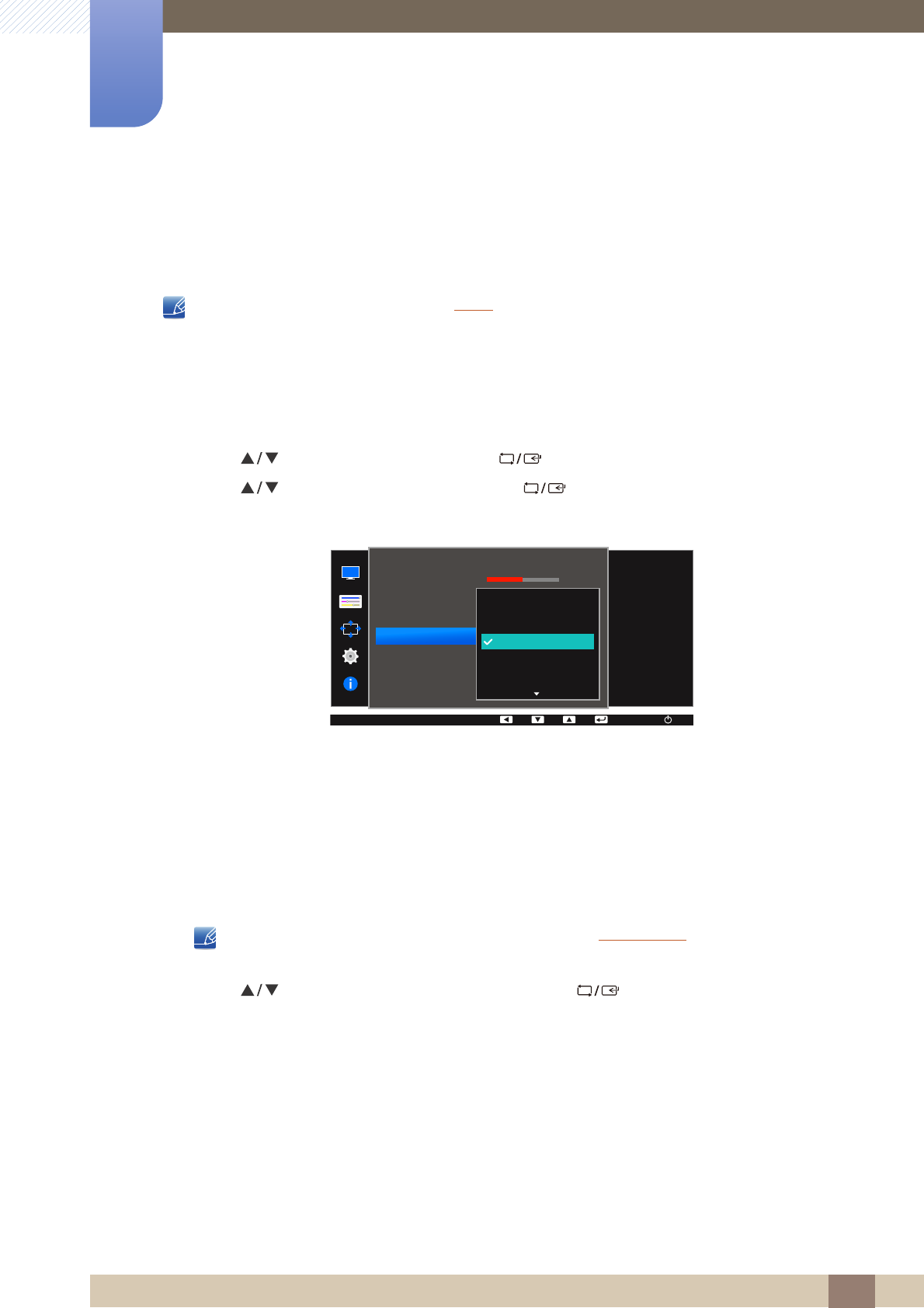 On screen display (OSD) allows you to customize on-screen settings to optimize the picture quality as