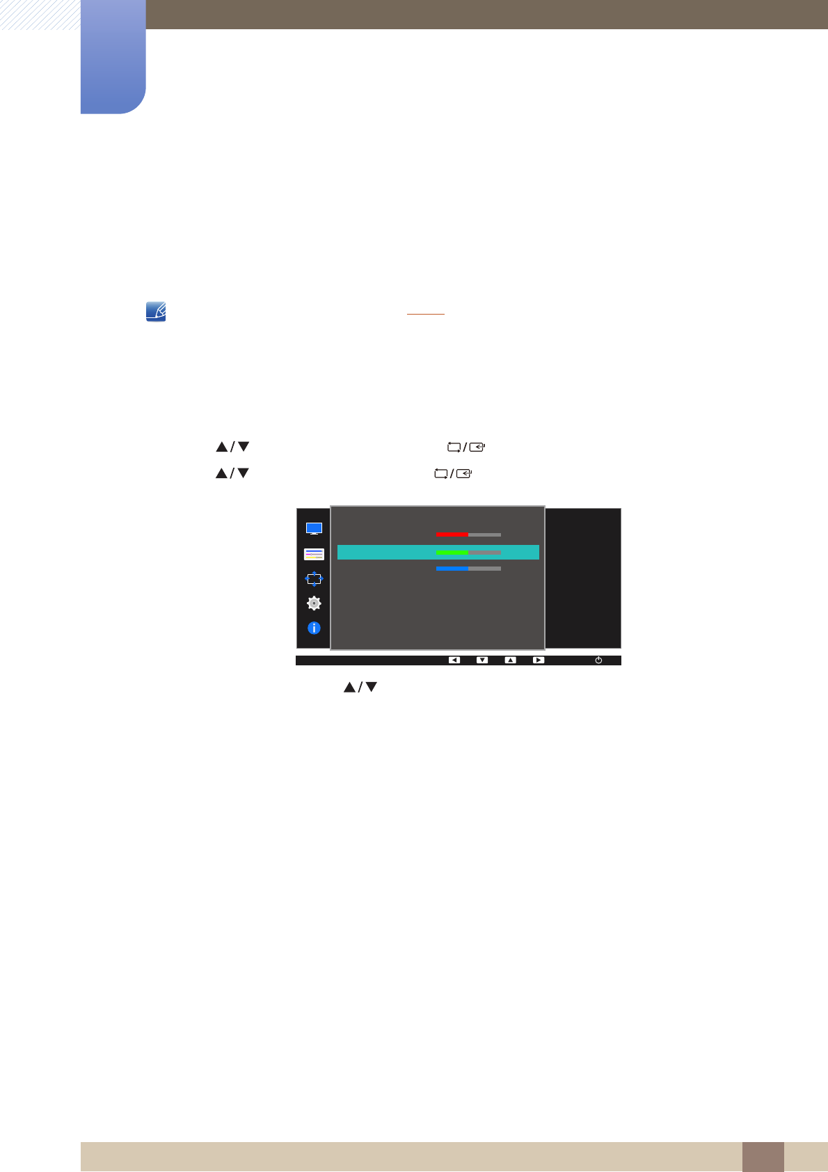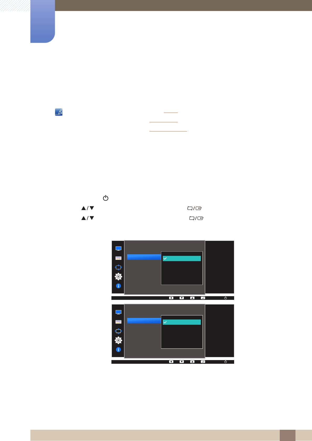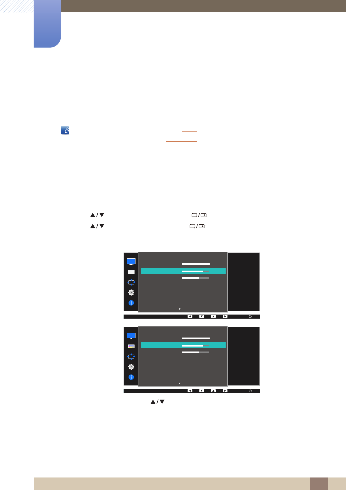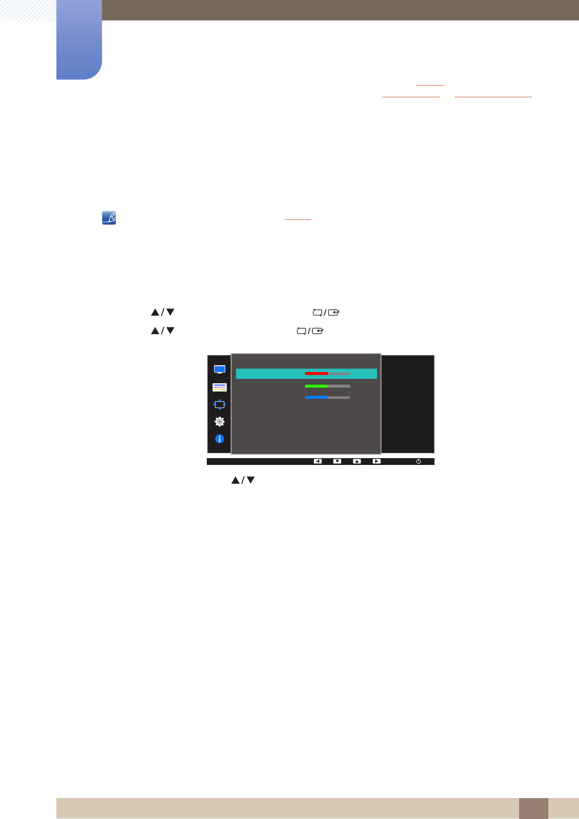 On screen display (OSD) allows you to customize on-screen settings to optimize the picture quality as