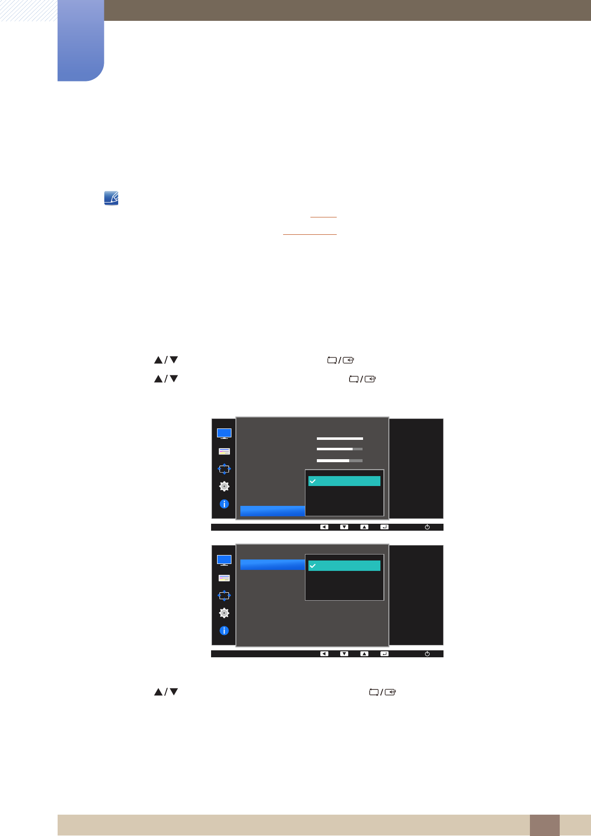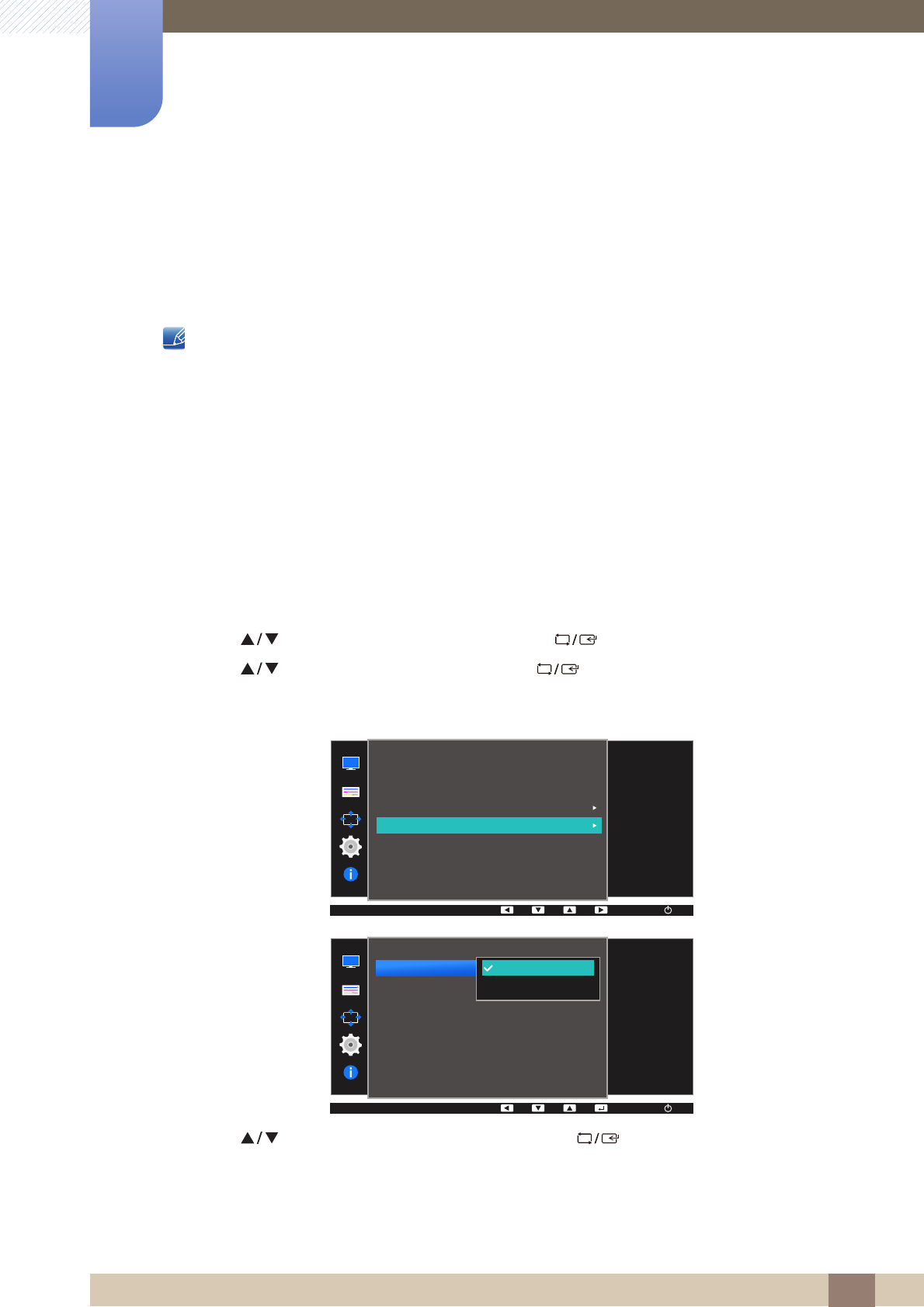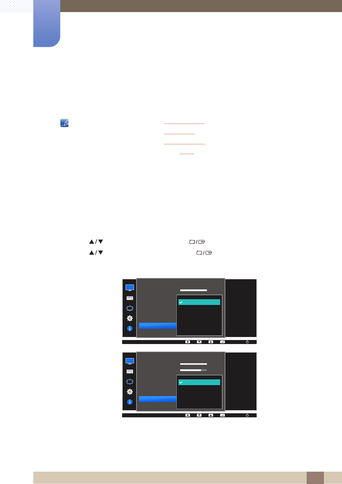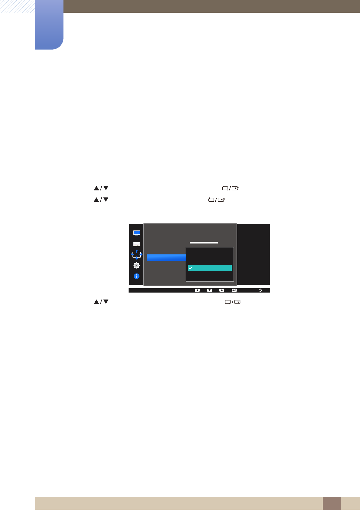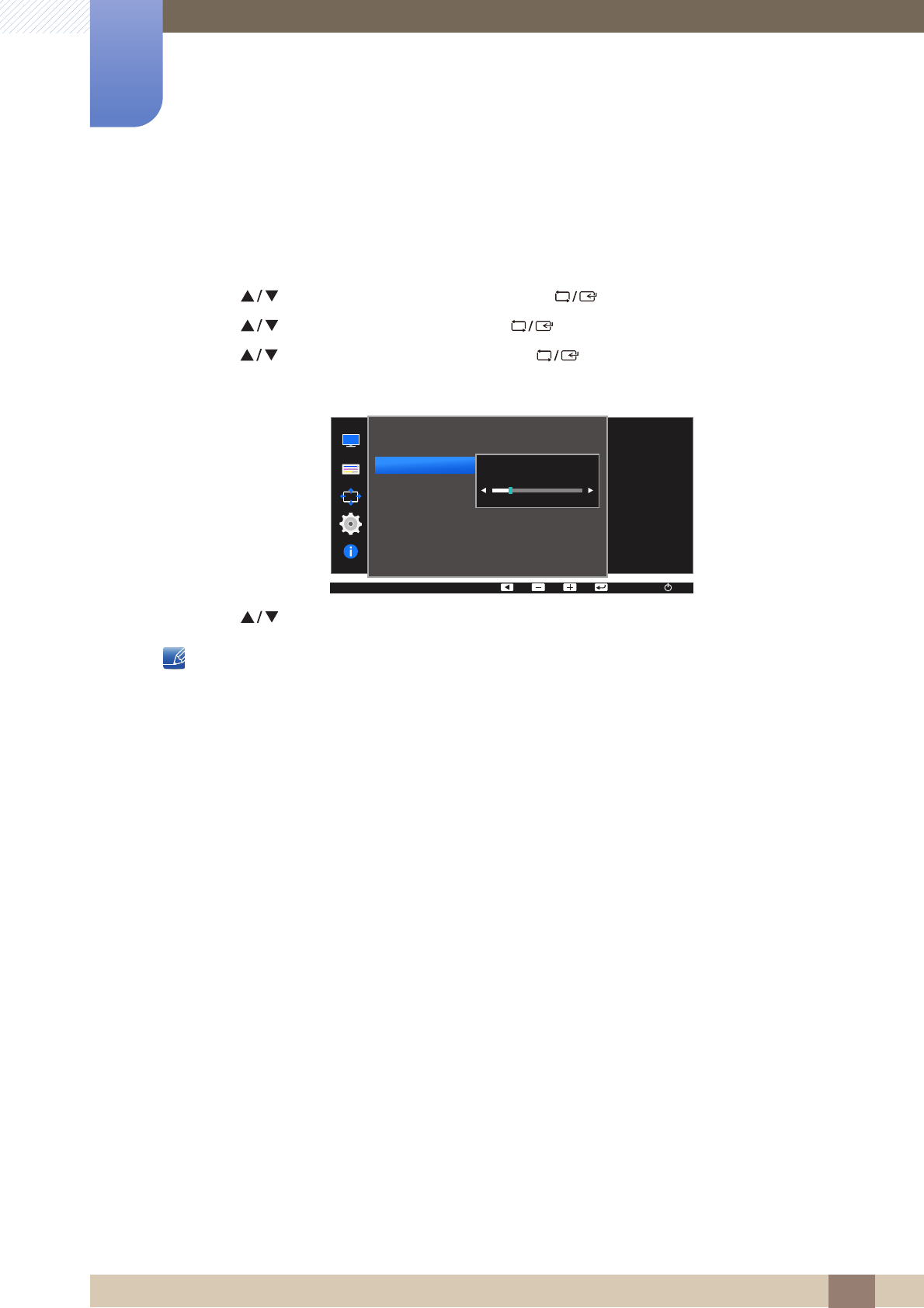 On screen display (OSD) allows you to customize on-screen settings to optimize the picture quality as