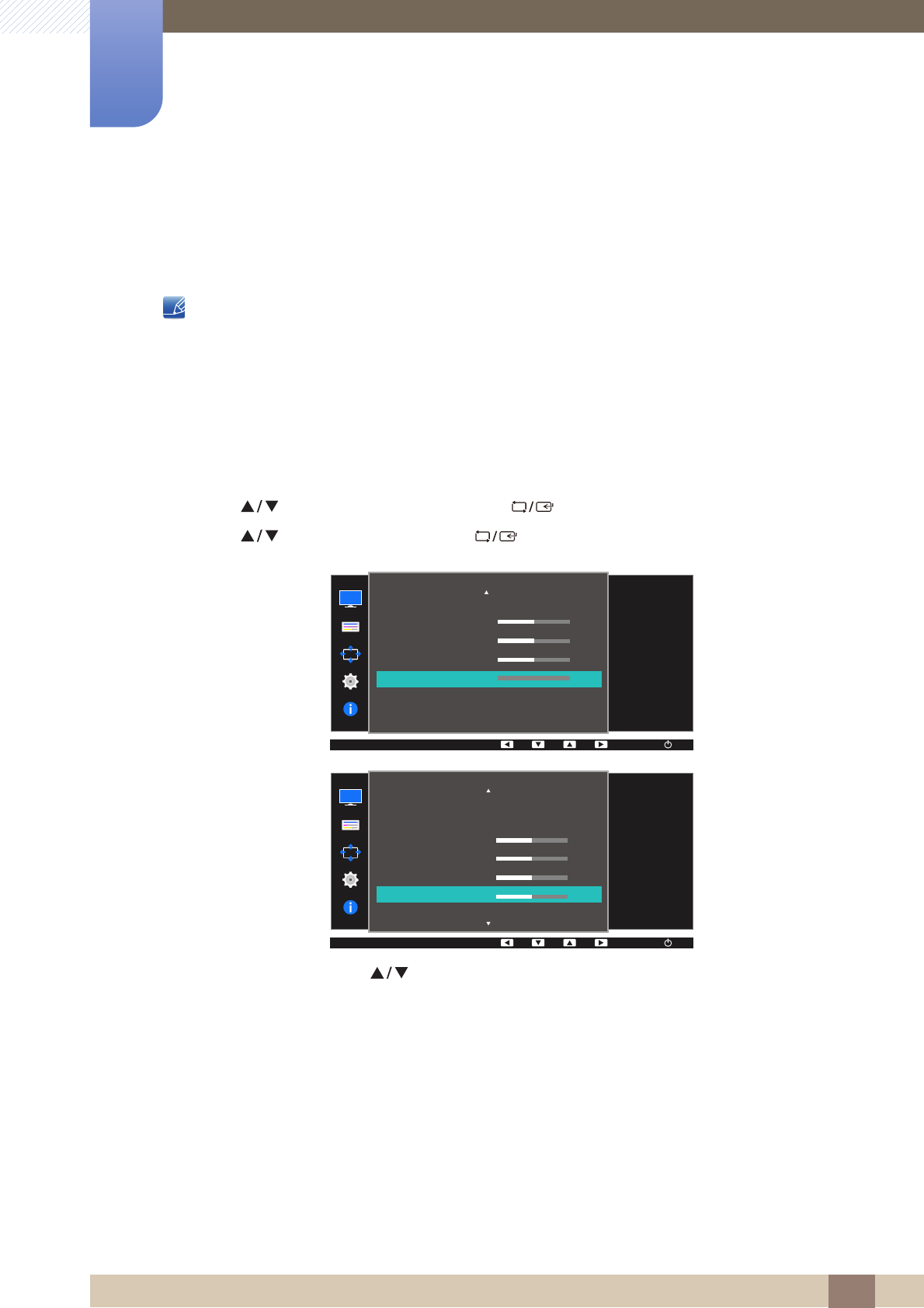 The Gamma menu adjusts the grey scale that represents middle tones on the screen. Adjusting the