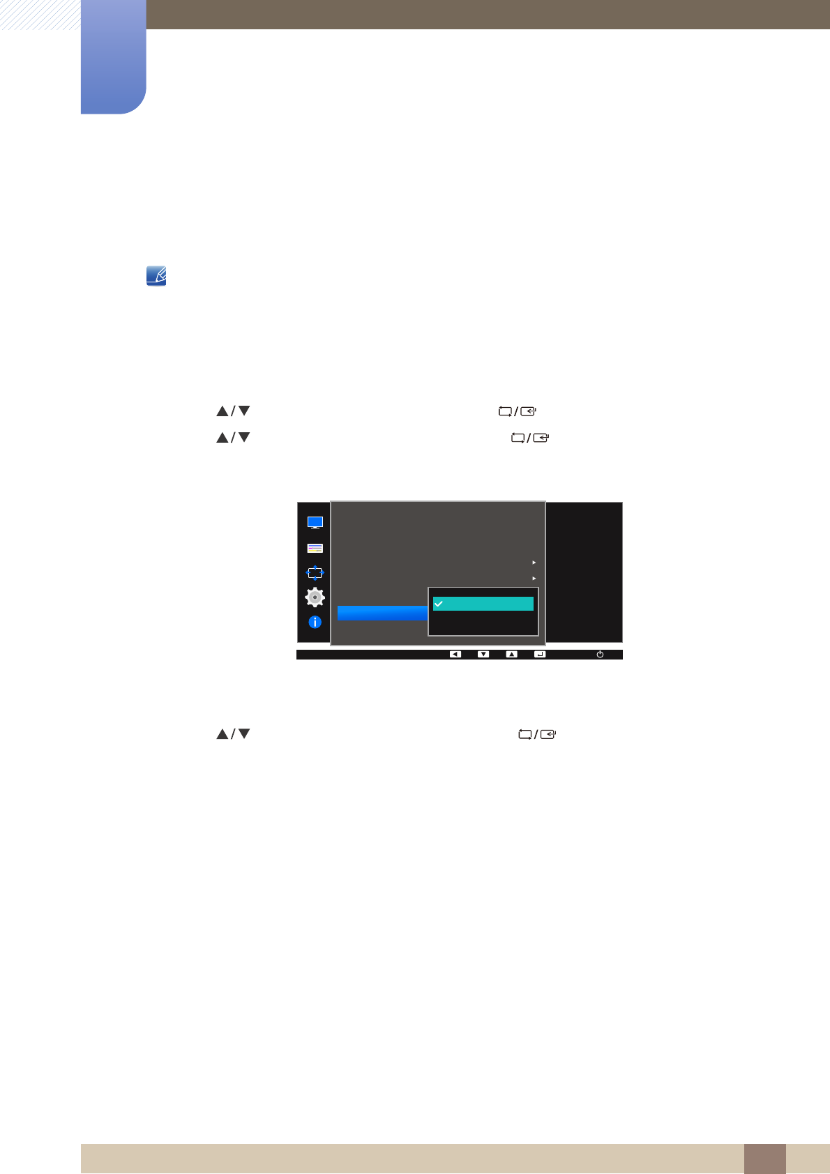 On screen display (OSD) allows you to customize on-screen settings to optimize the picture quality as