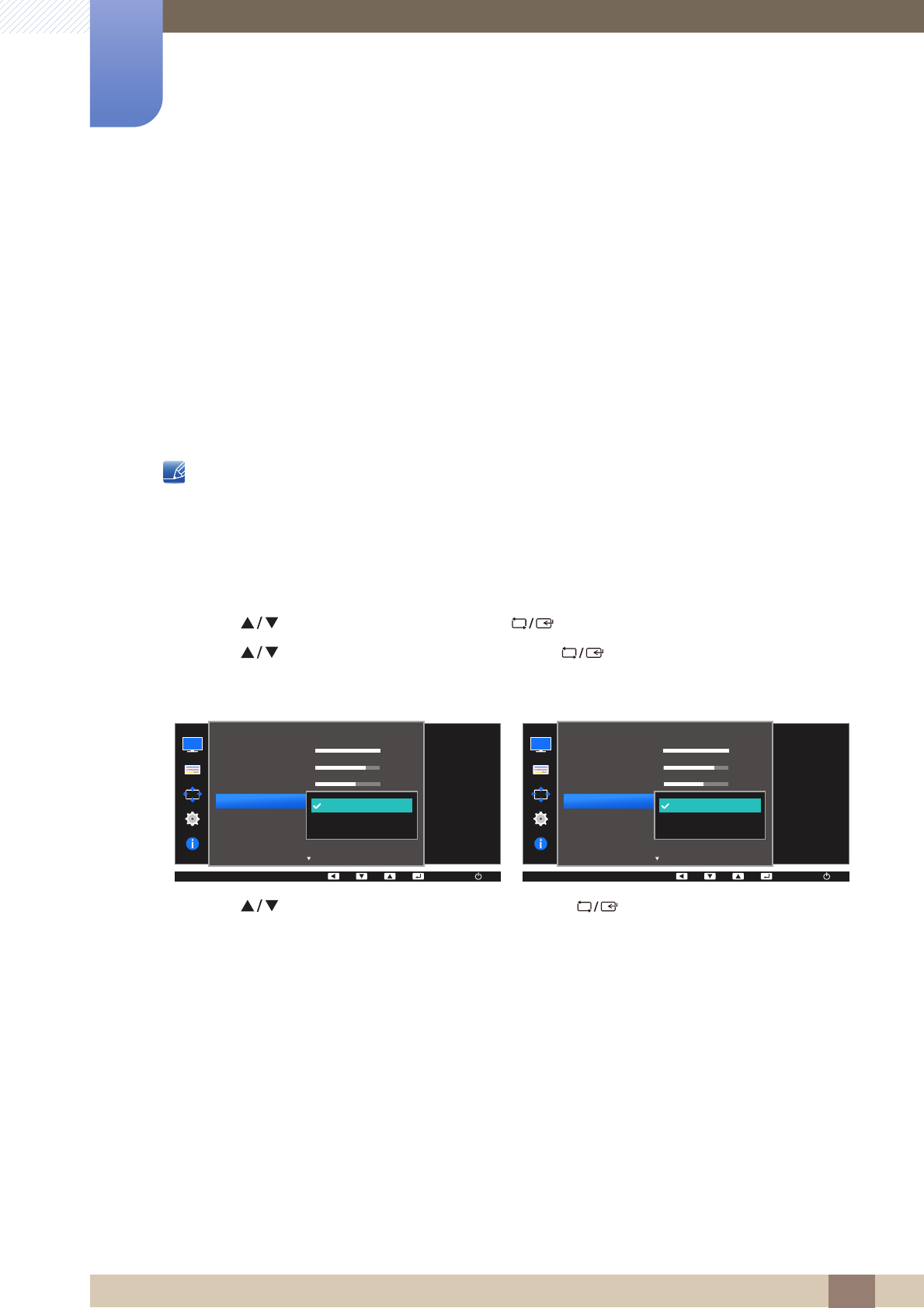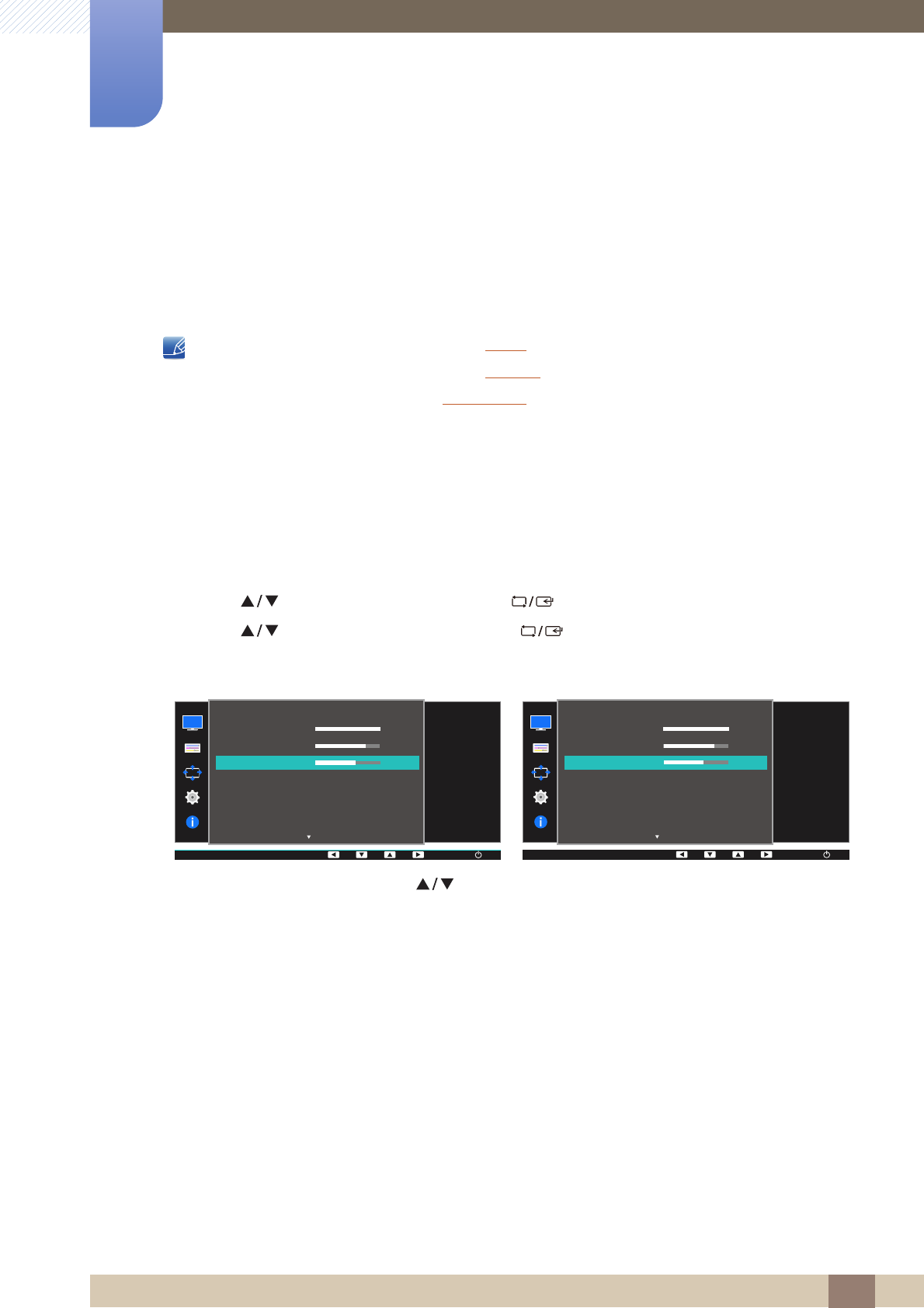 On screen display (OSD) allows you to customize on-screen settings to optimize the picture quality as