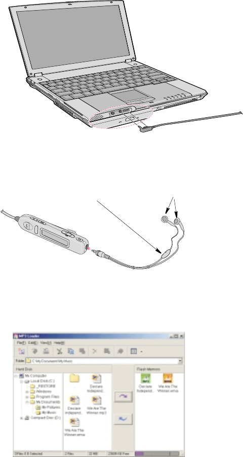 The MP3 player will not operate with the MP3 loader open. "PC"will be