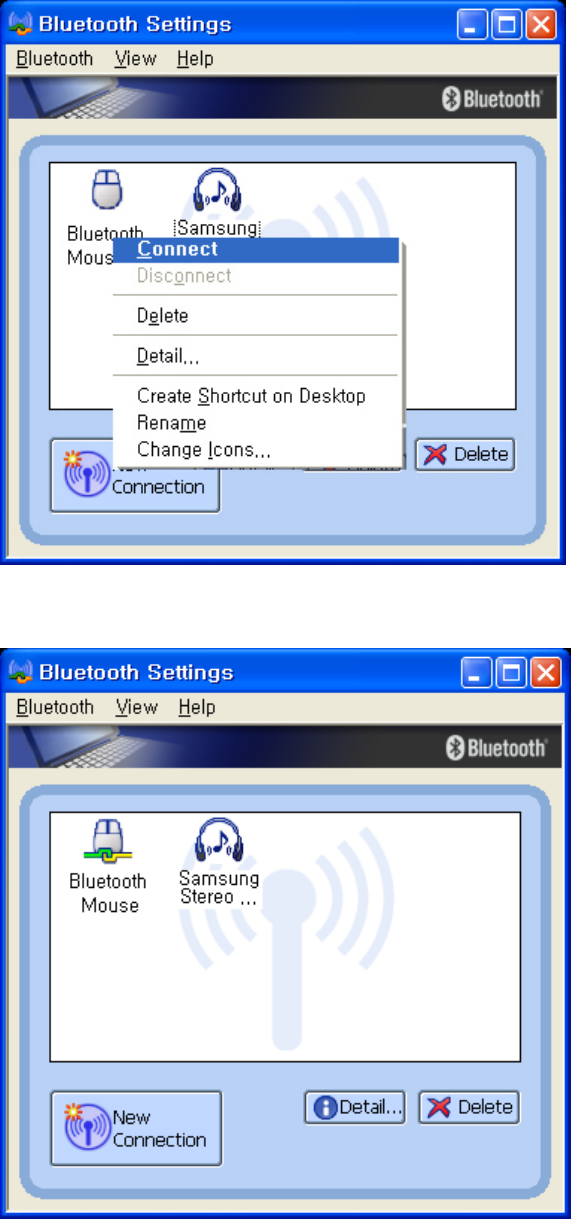 1. Turn on the Bluetooth Headset.Move the cursor over the icon of Bluetooth Headset in