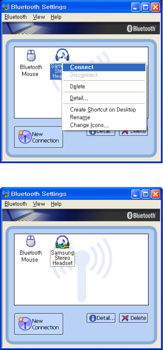 2. The icon of Bluetooth Headset will be changed to connecting status.
