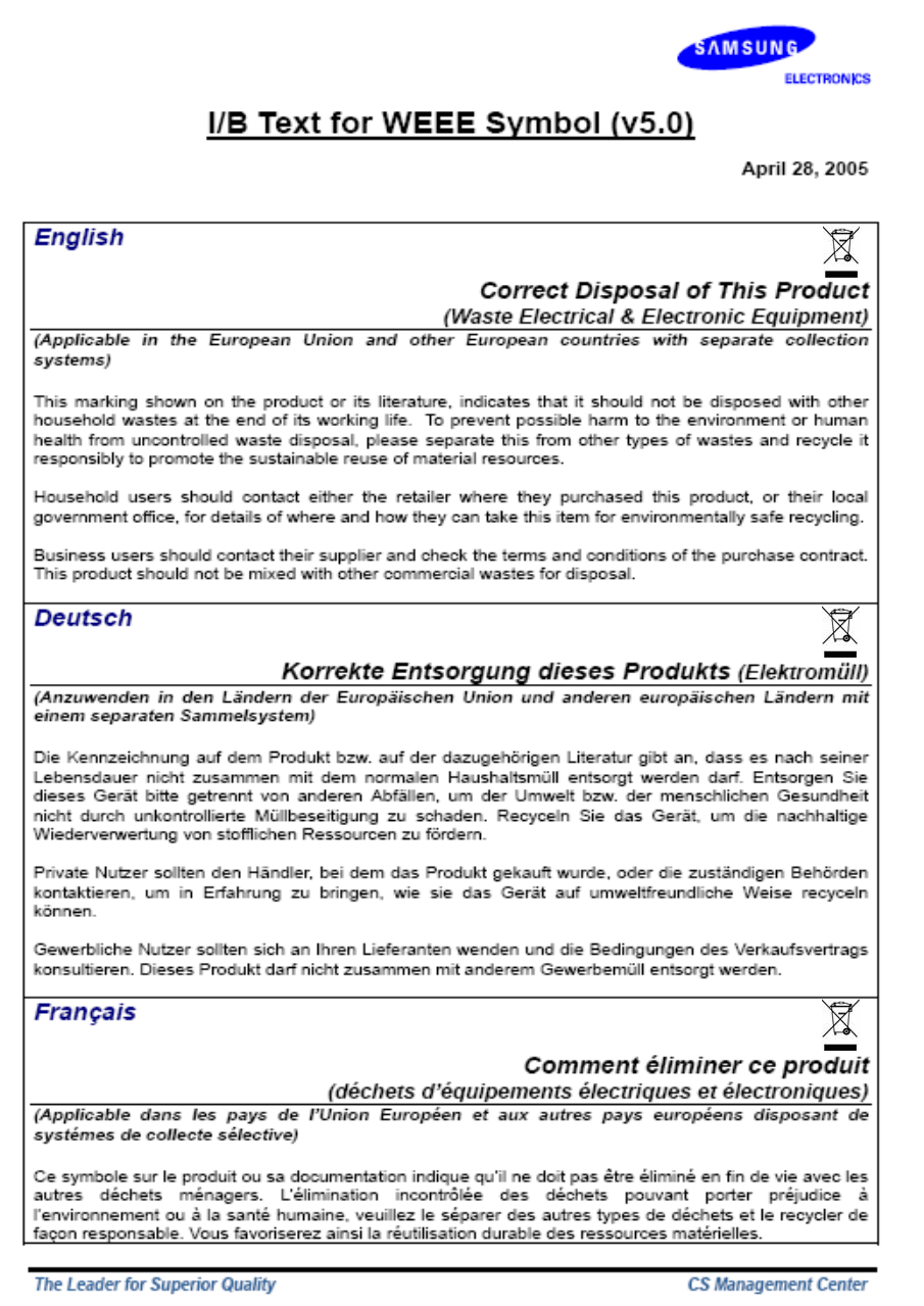 Safety : EN 60950 : 2000(3rd Edition)