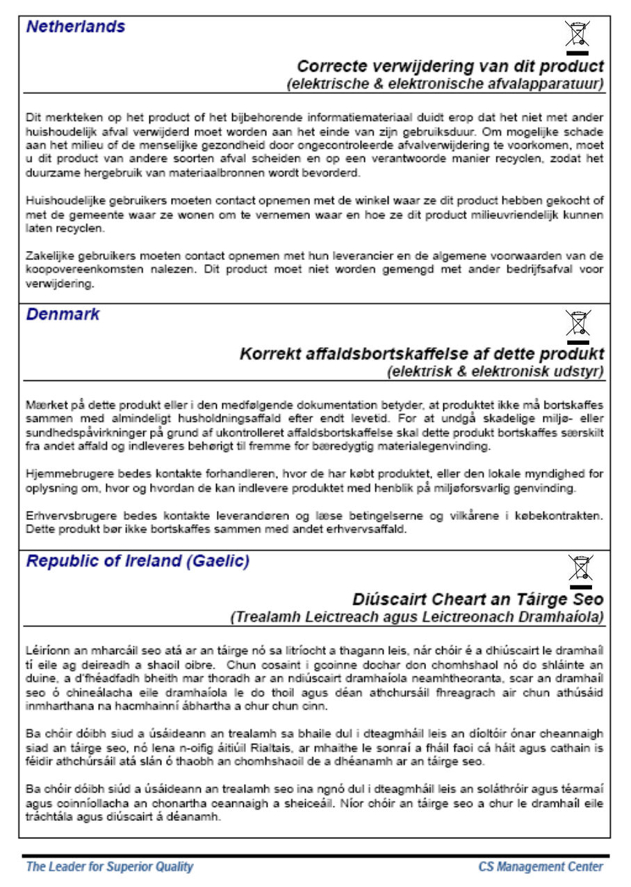 8. Correct Disposal of This Product.........................................................................26