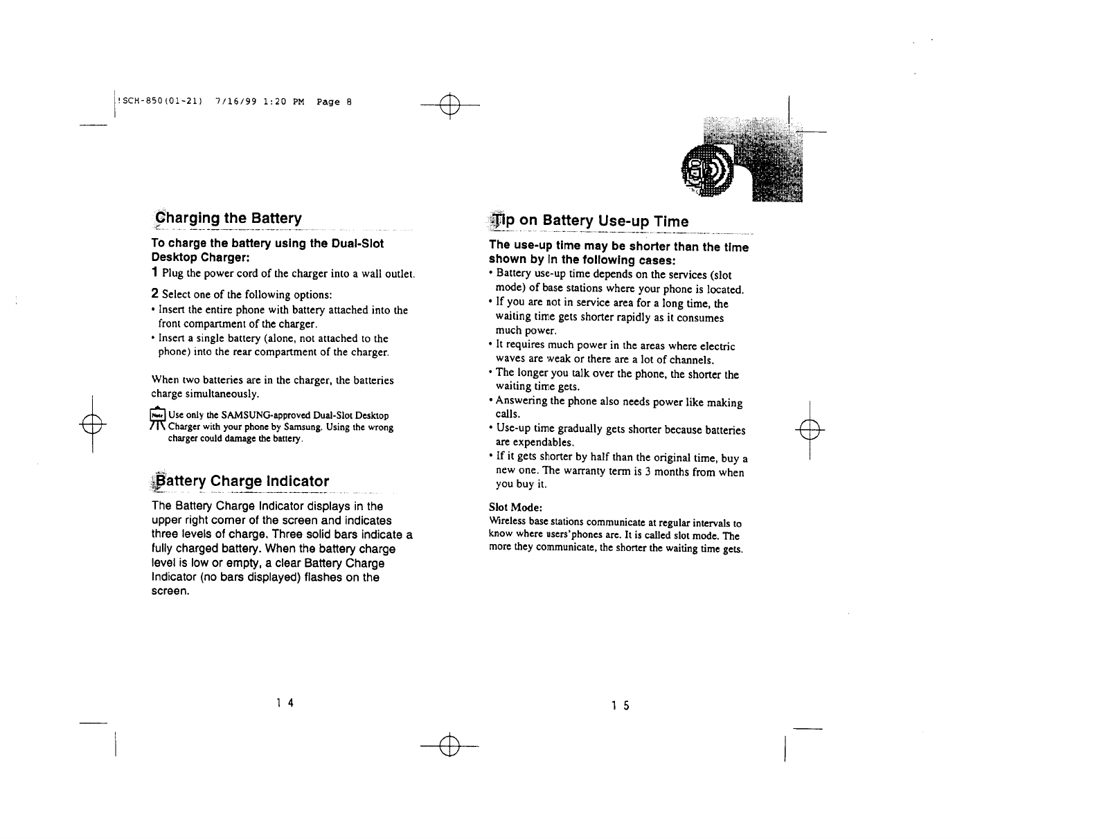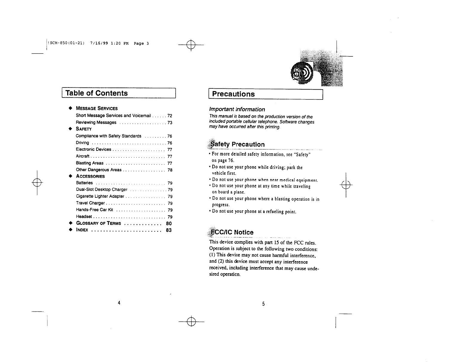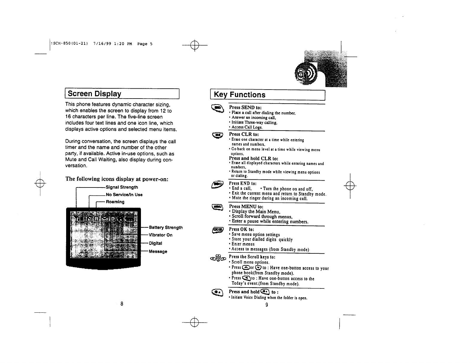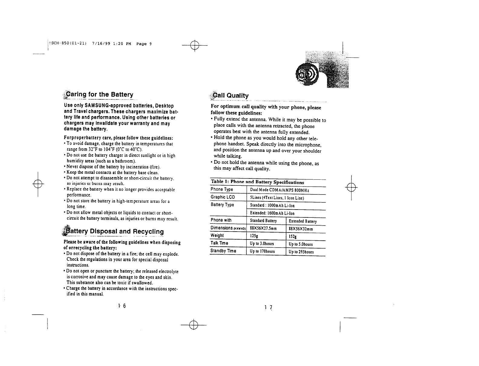Samsung Electronics Co SCH855 Dual Mode Cellular Phone (AMPS/CDMA) User Manual