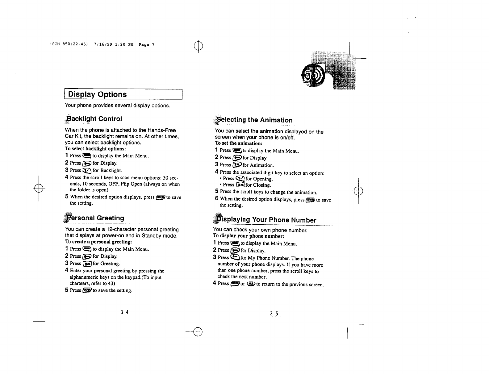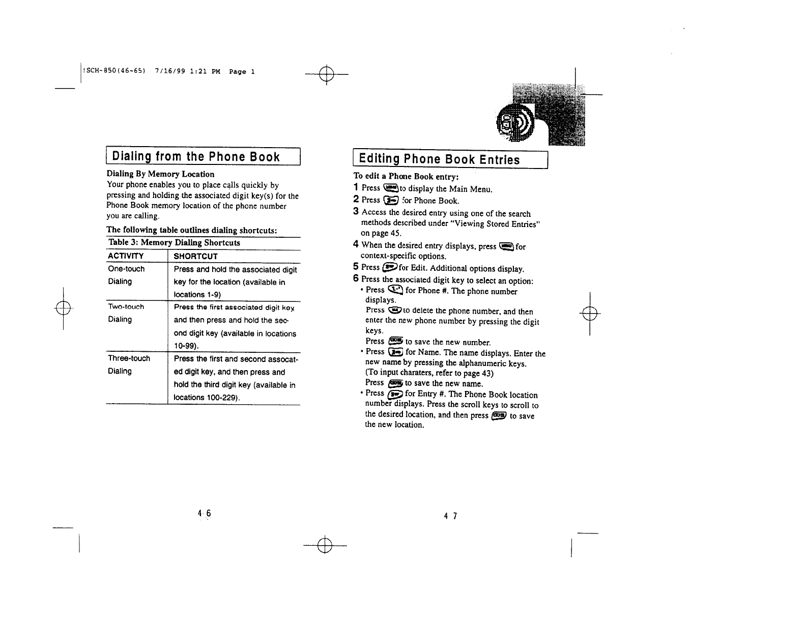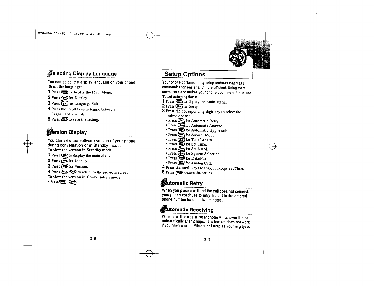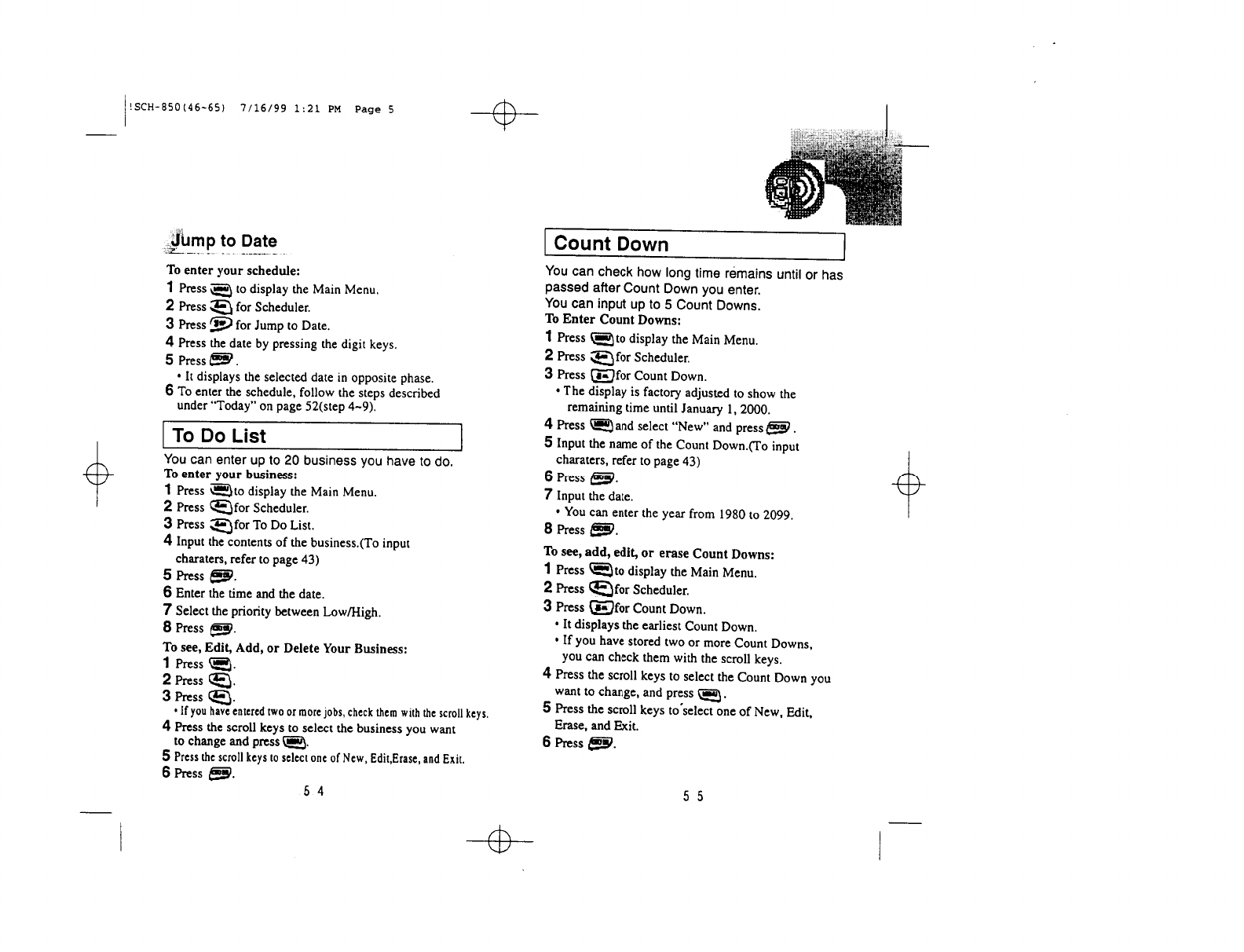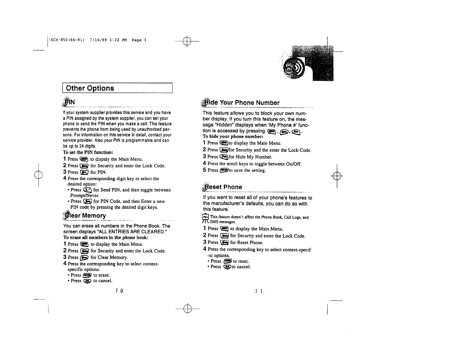 Samsung Electronics Co SCH855 Dual Mode Cellular Phone (AMPS/CDMA) User Manual