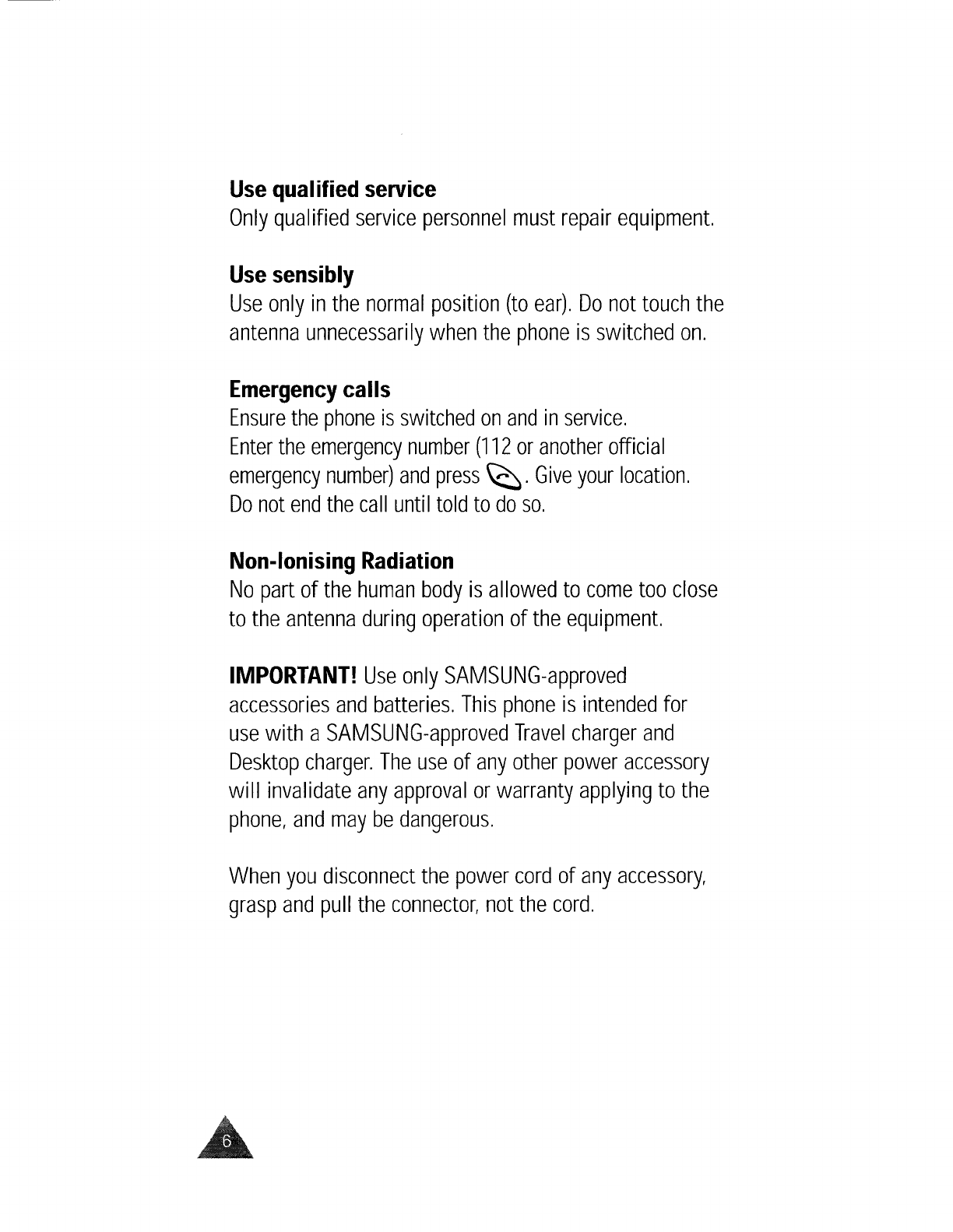 only Samsung approved accessories. When carrying the phone while it is on, use the