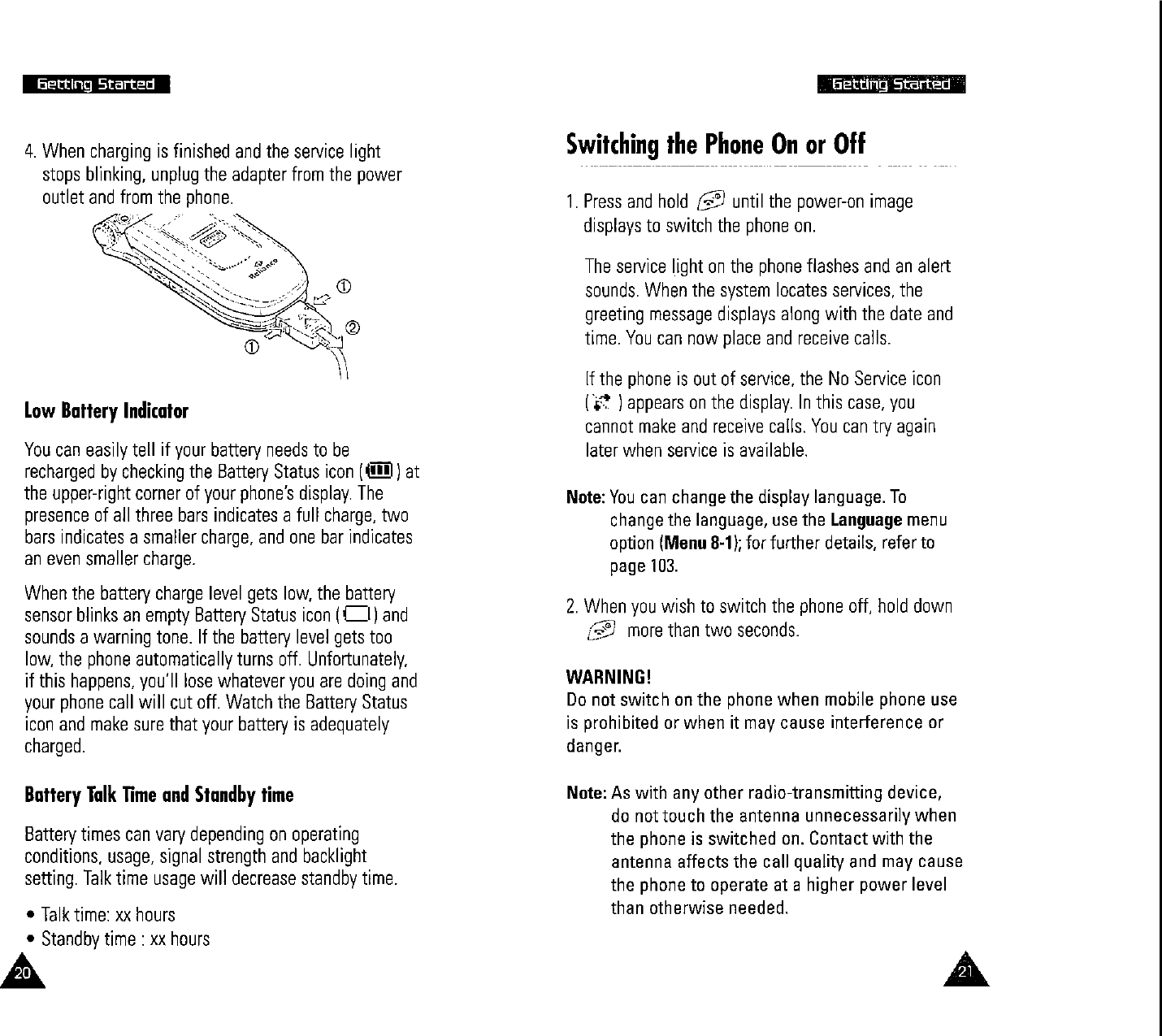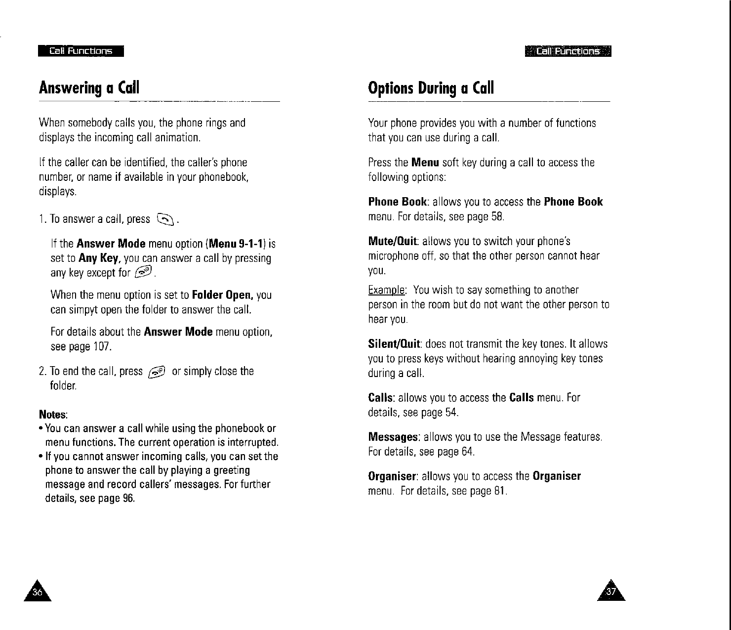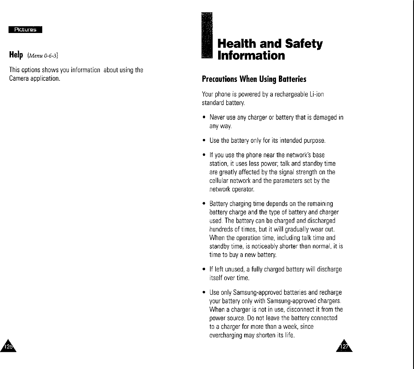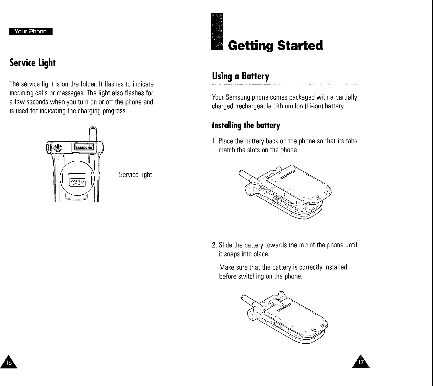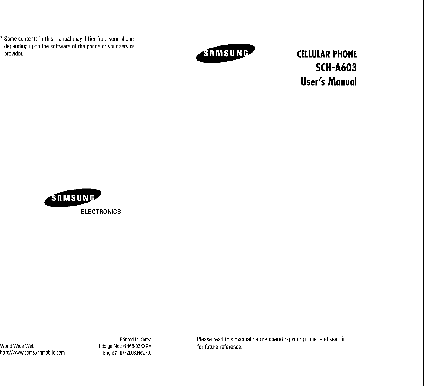 Samsung Electronics Co SCHA603 Tri-Mode Dual-Band Analog/ PCS Phone (AMPS/ CDMA) User Manual per CRN 8490