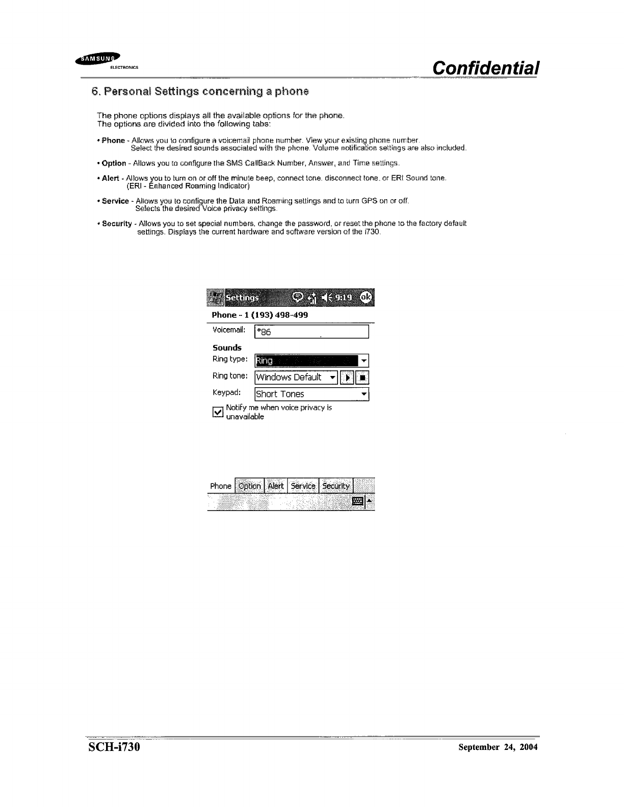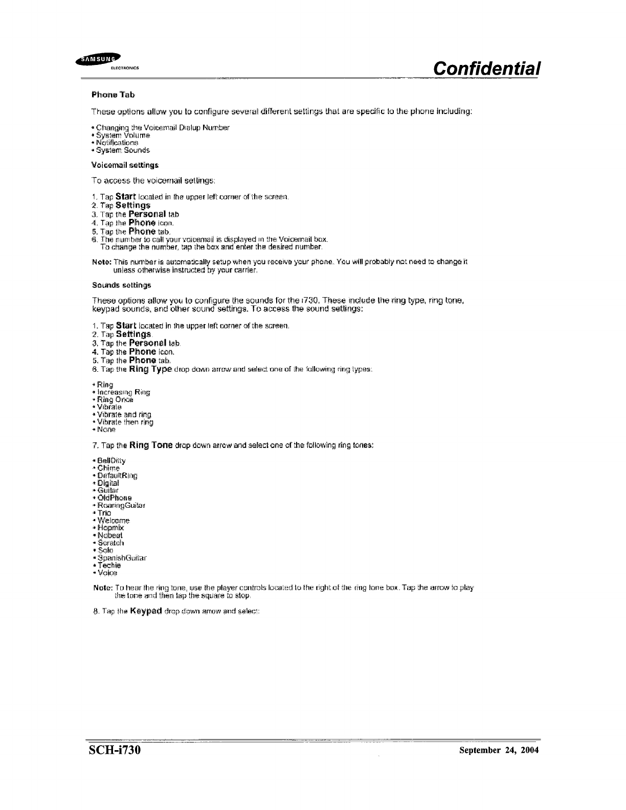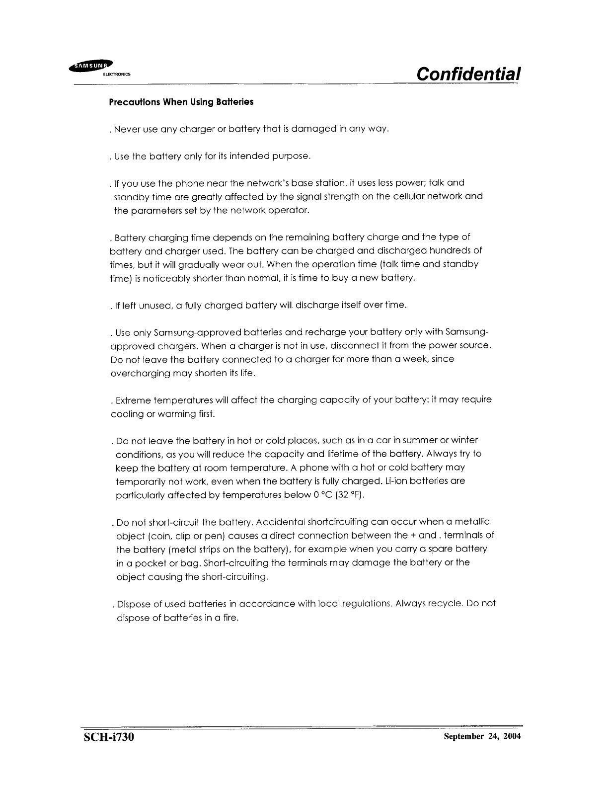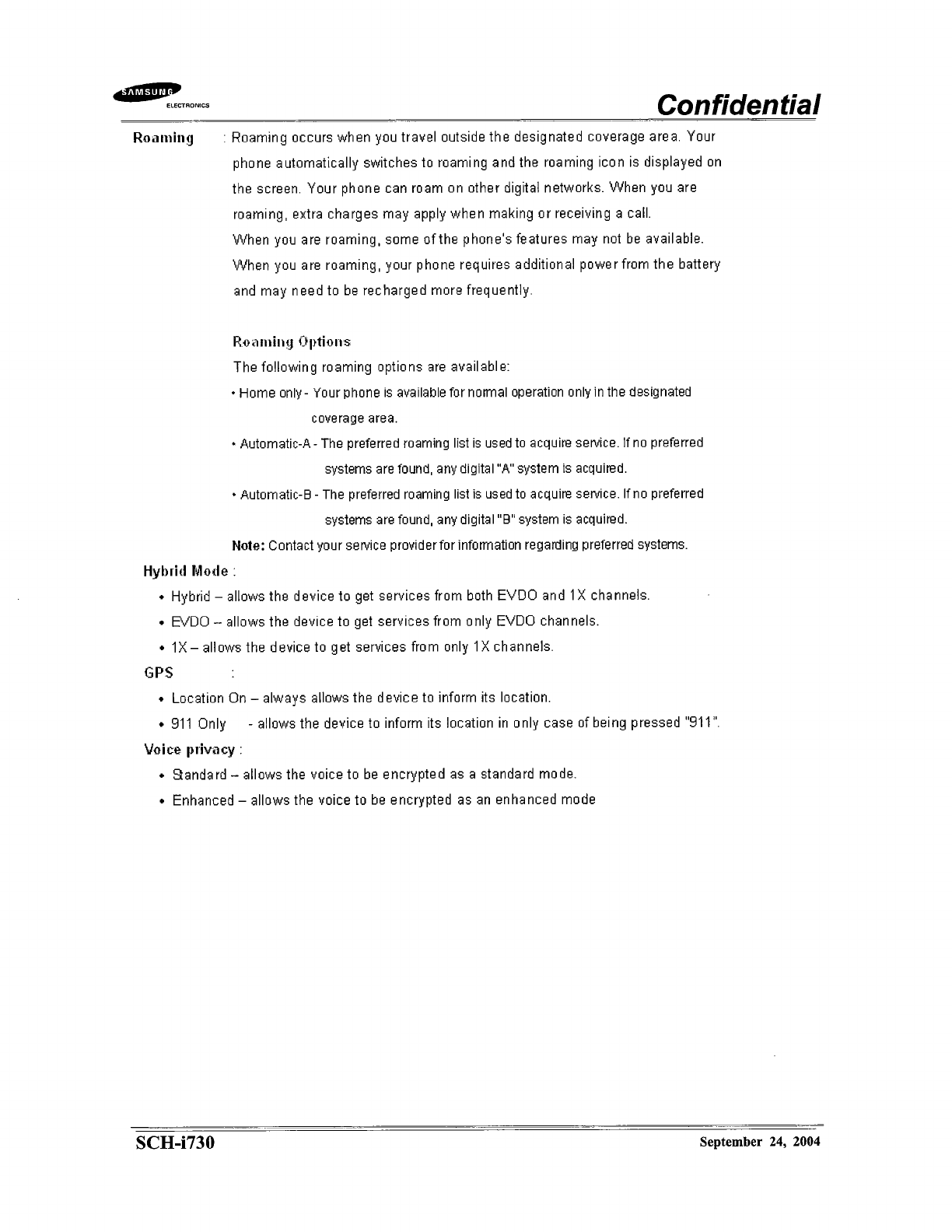 Samsung Electronics Co SCHI730 Dual-Band CDMA Phone w/ WLAN & Bluetooth User Manual