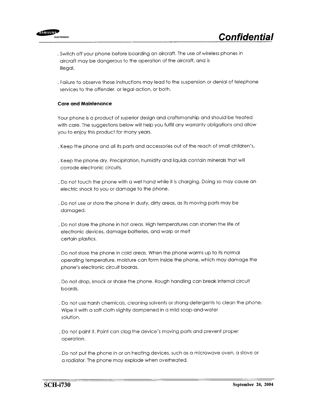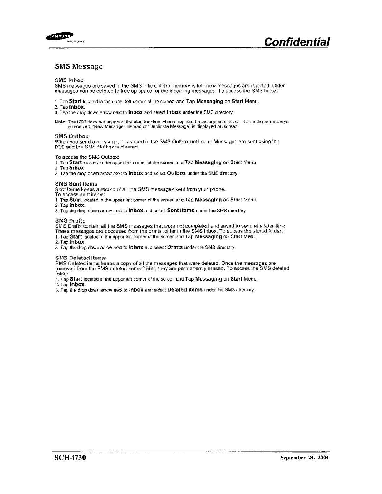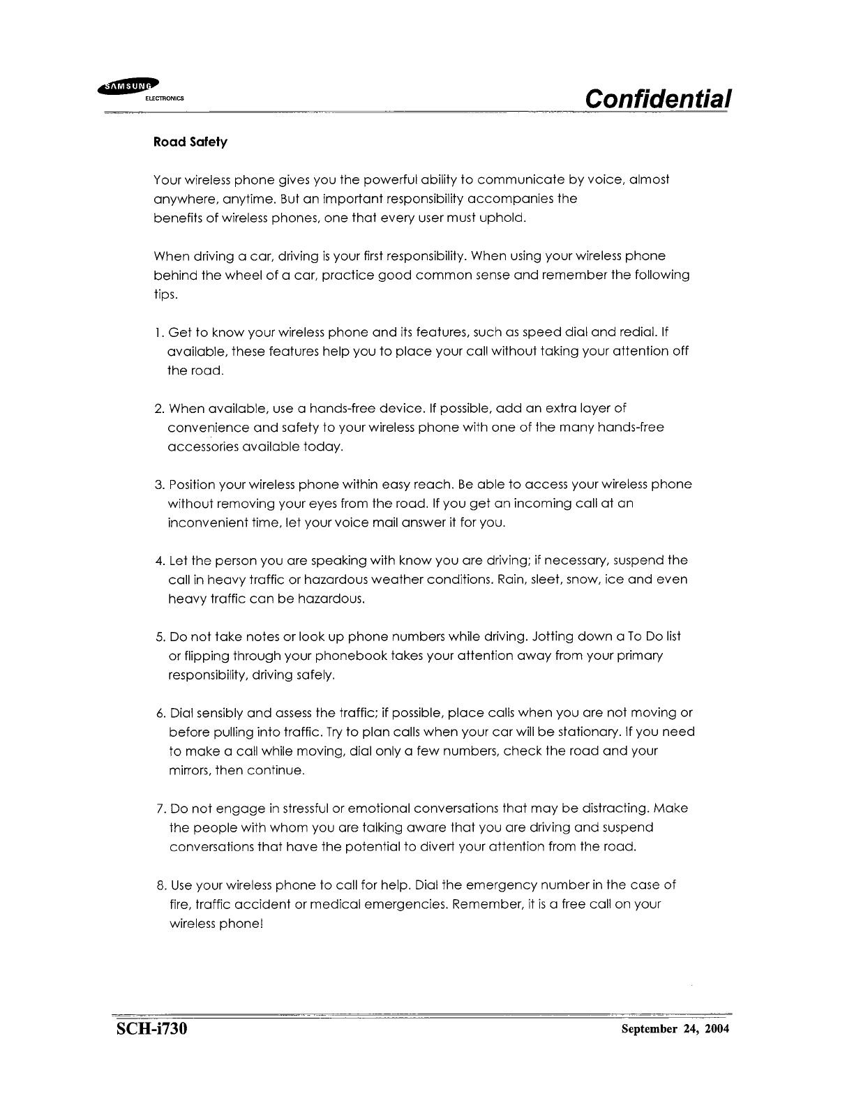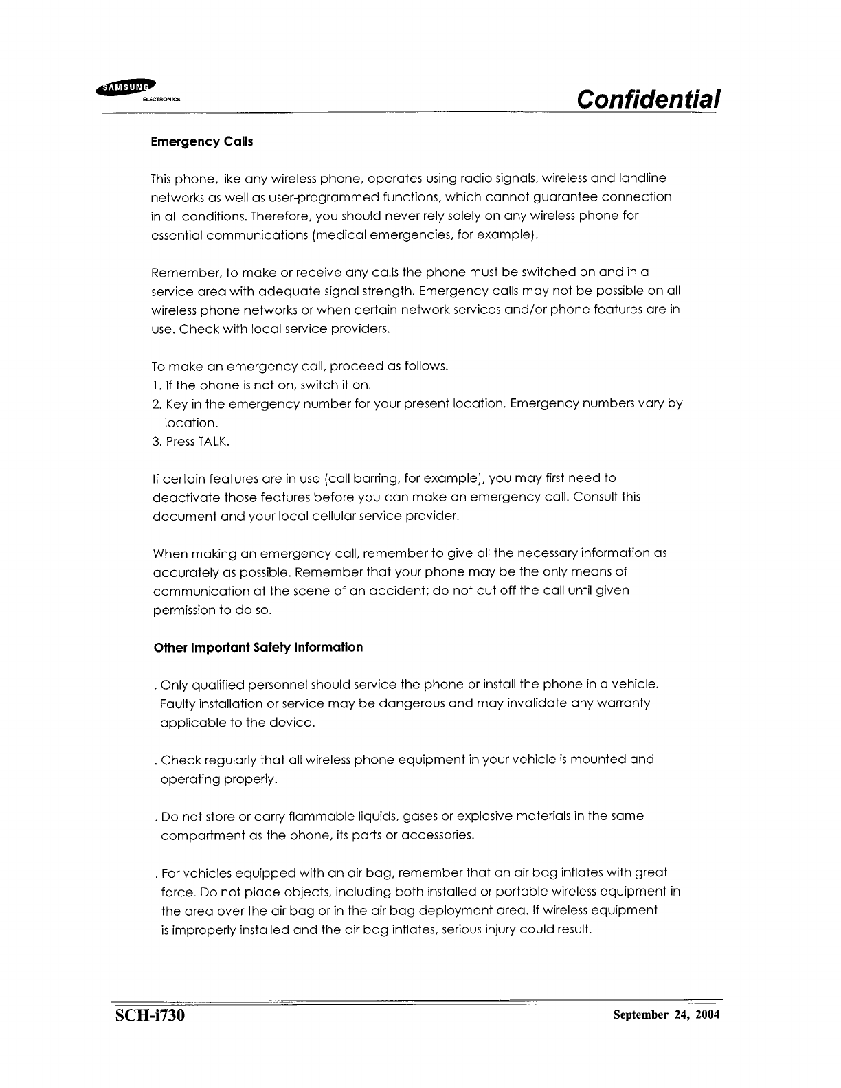 Samsung Electronics Co SCHI730 Dual-Band CDMA Phone w/ WLAN & Bluetooth User Manual