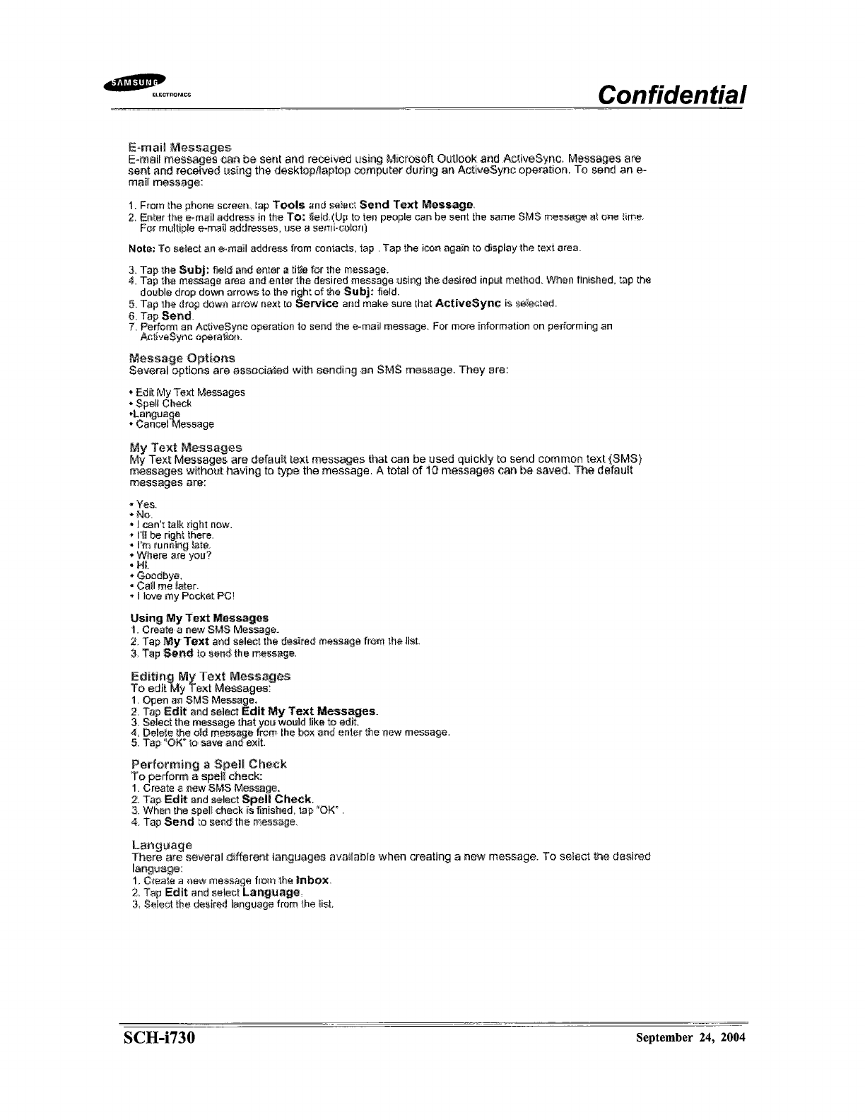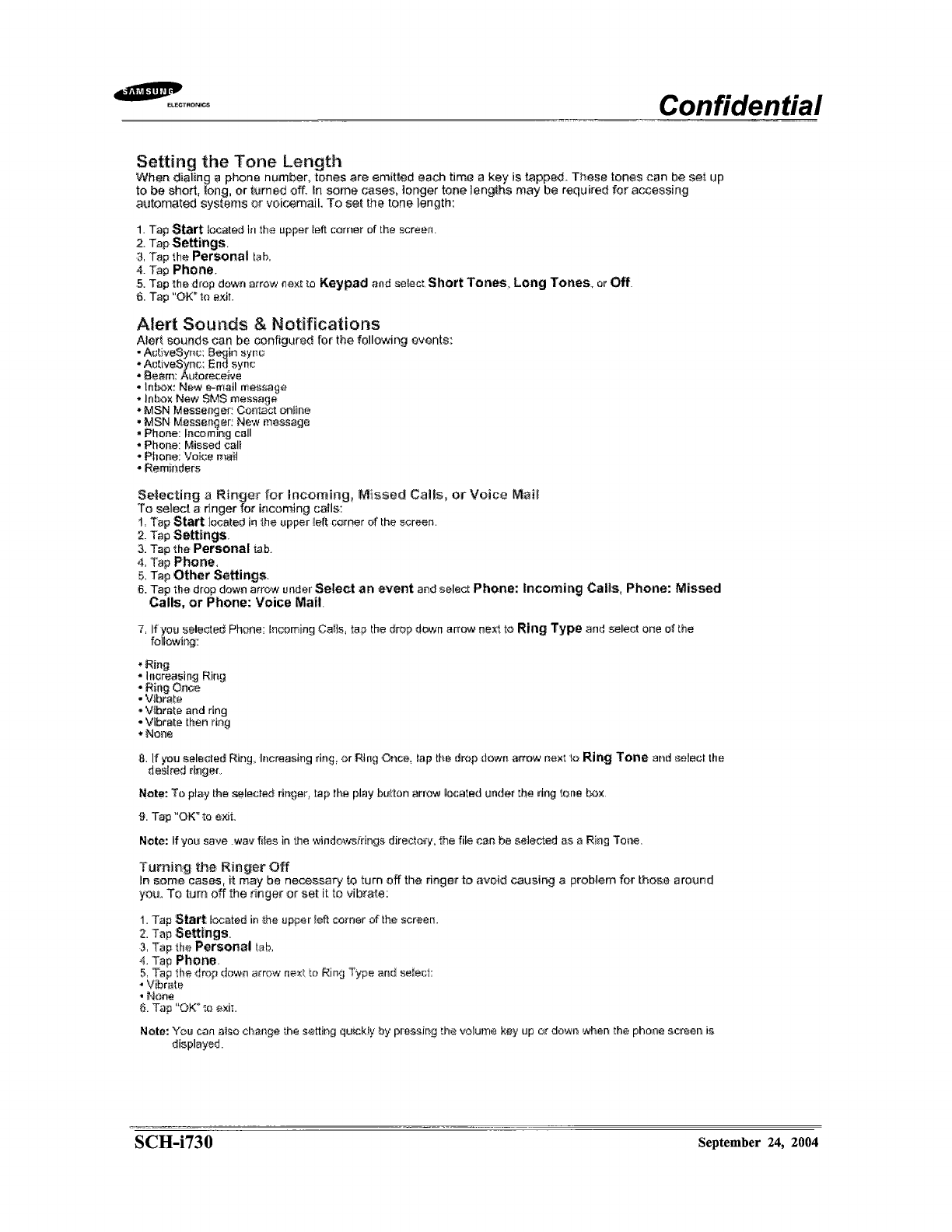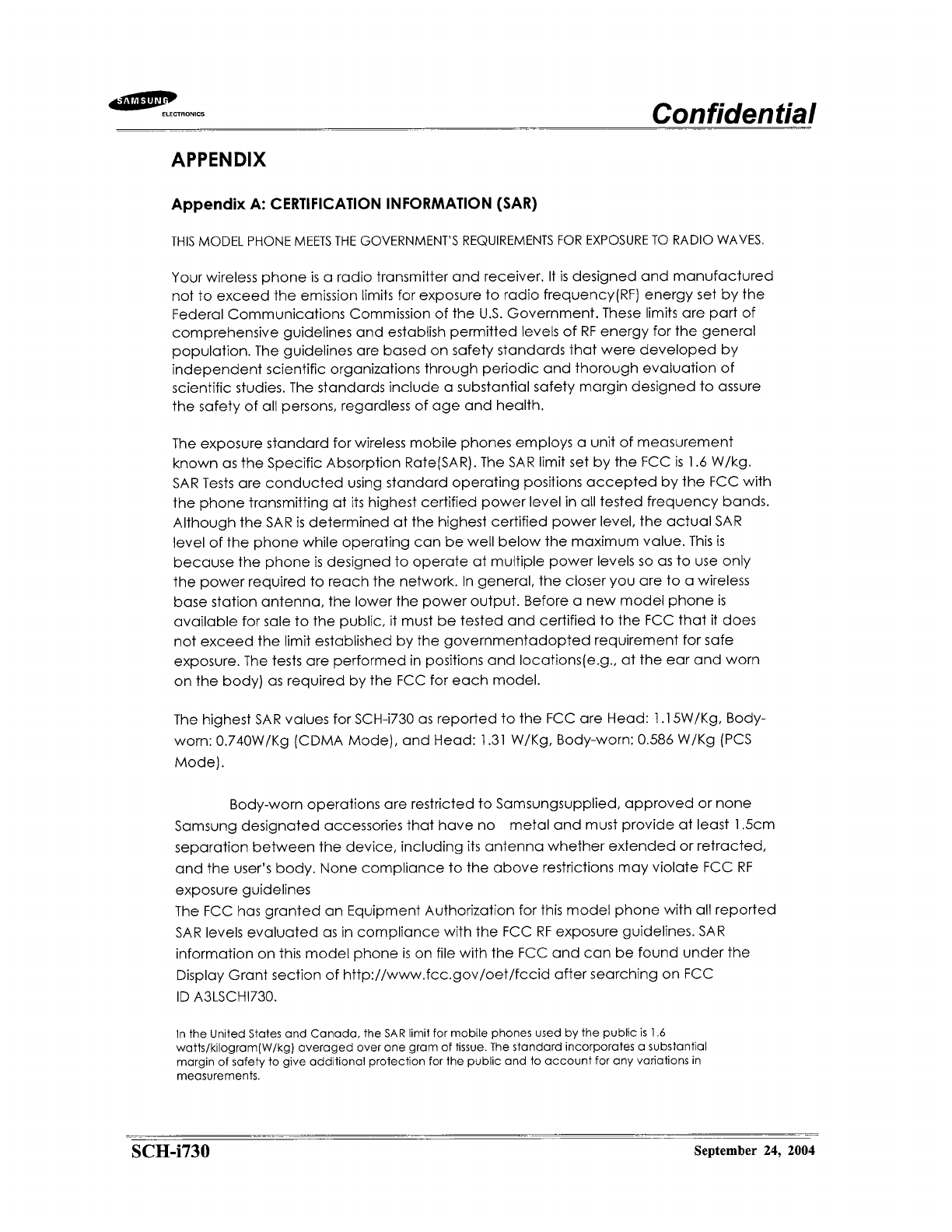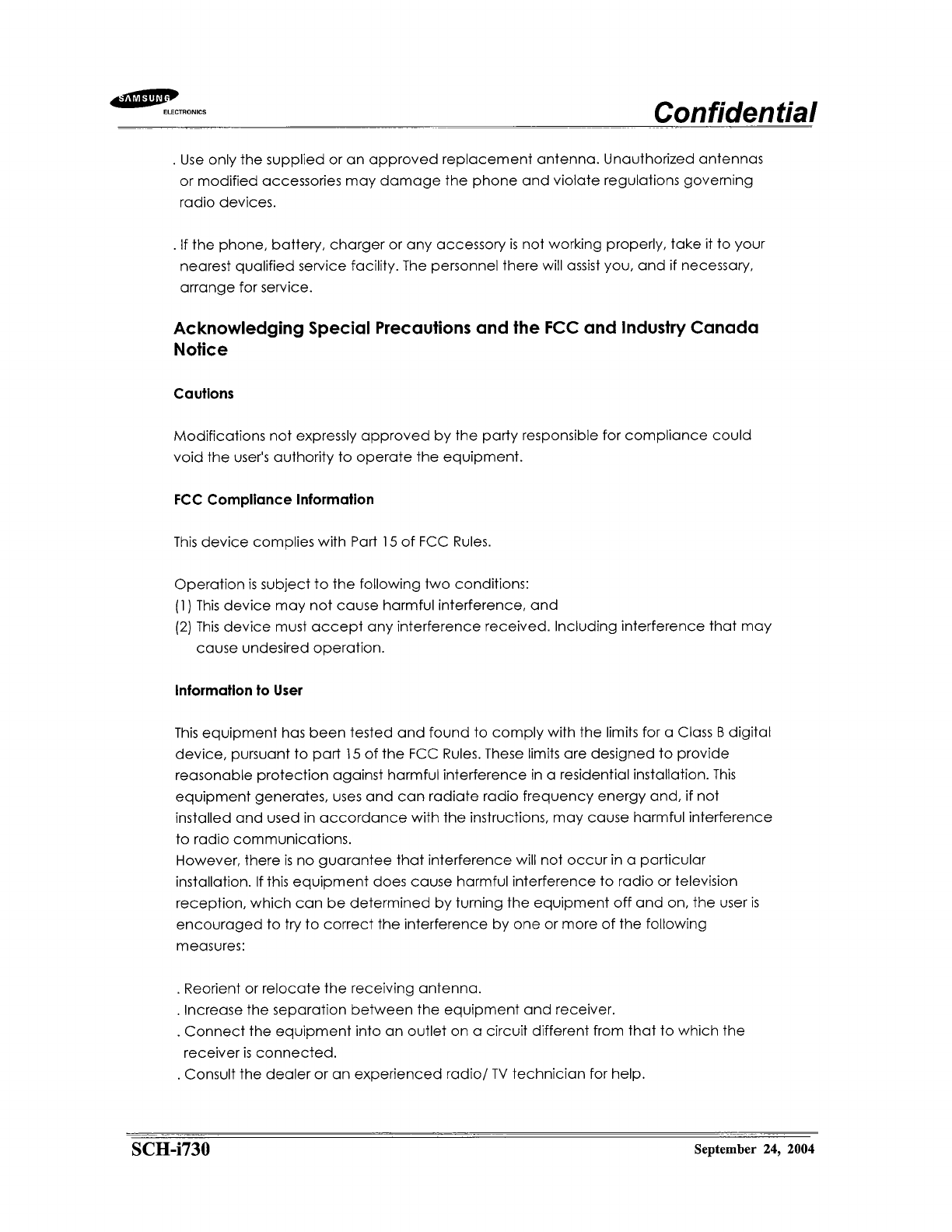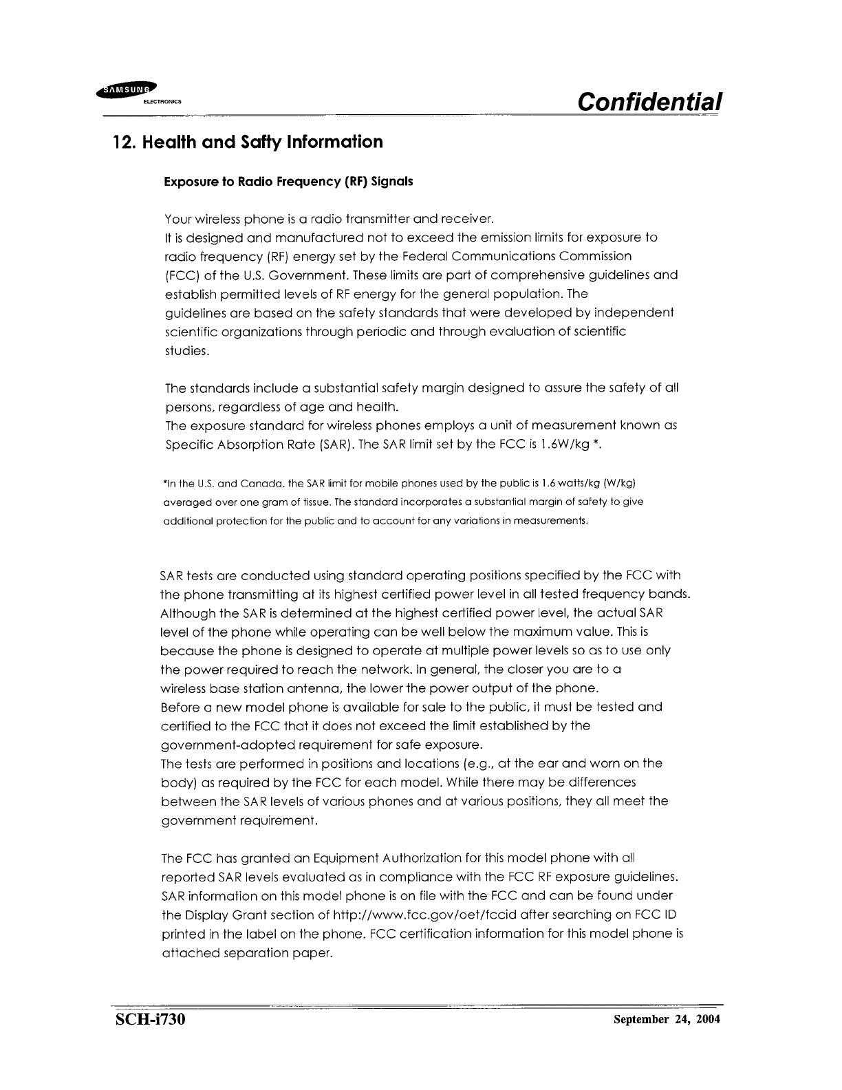 Samsung Electronics Co SCHI730 Dual-Band CDMA Phone w/ WLAN & Bluetooth User Manual