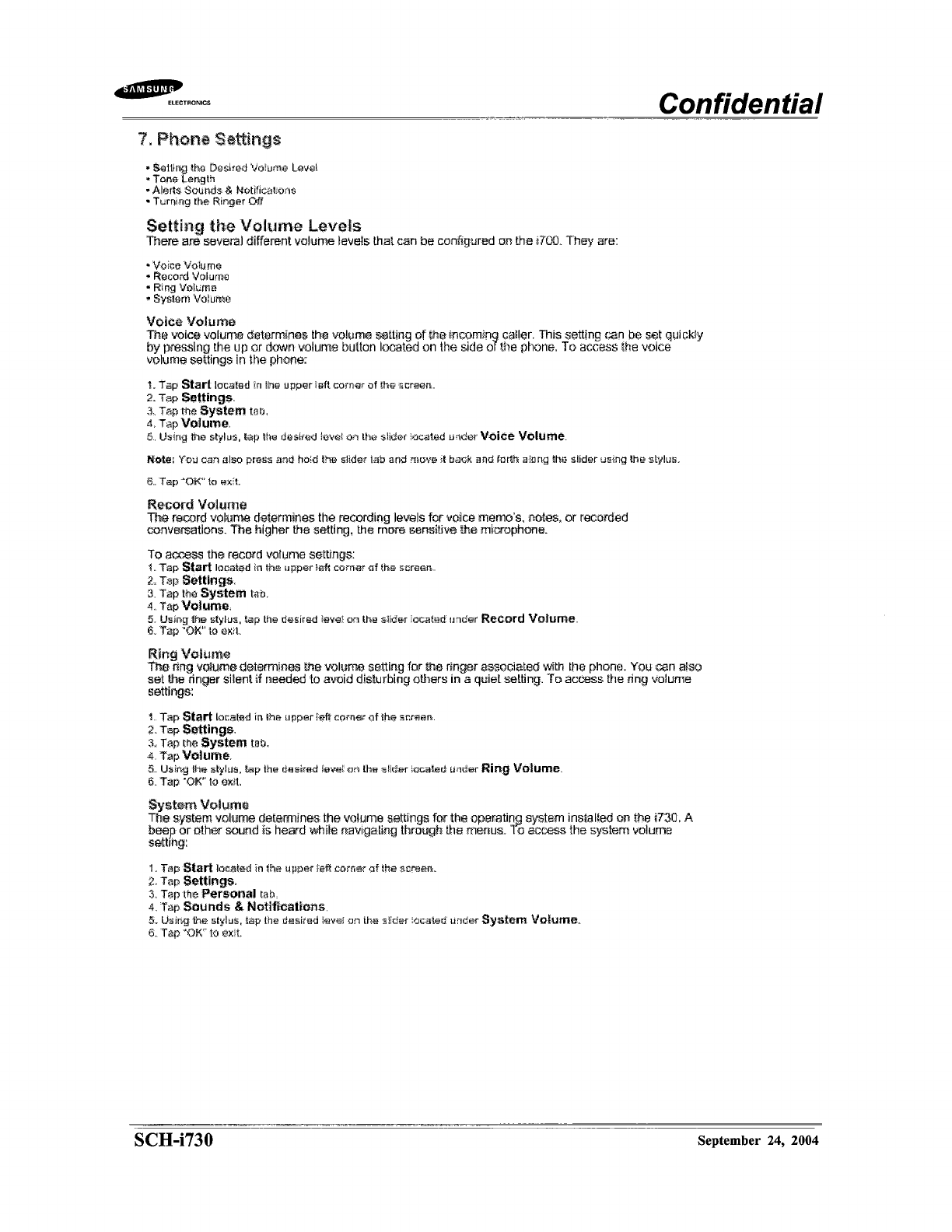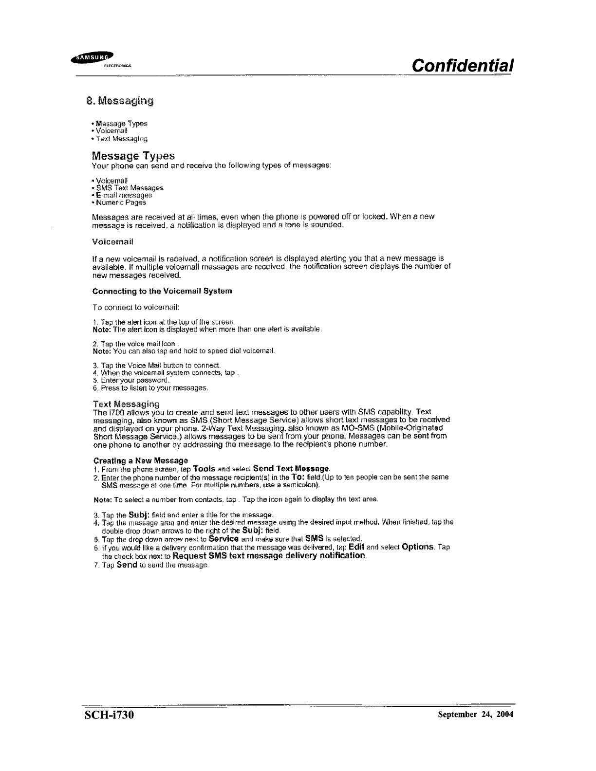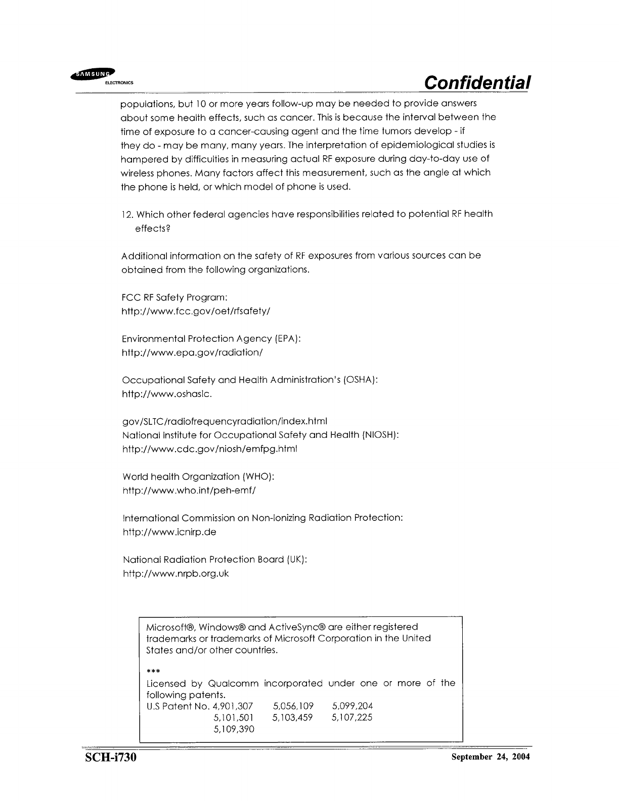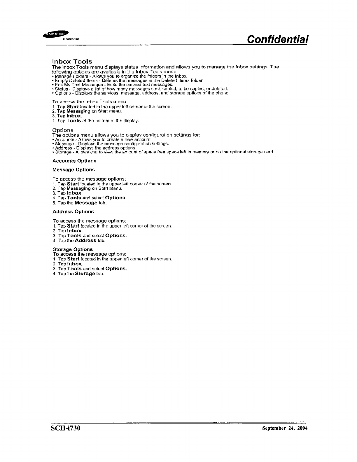 Samsung Electronics Co SCHI730 Dual-Band CDMA Phone w/ WLAN & Bluetooth User Manual