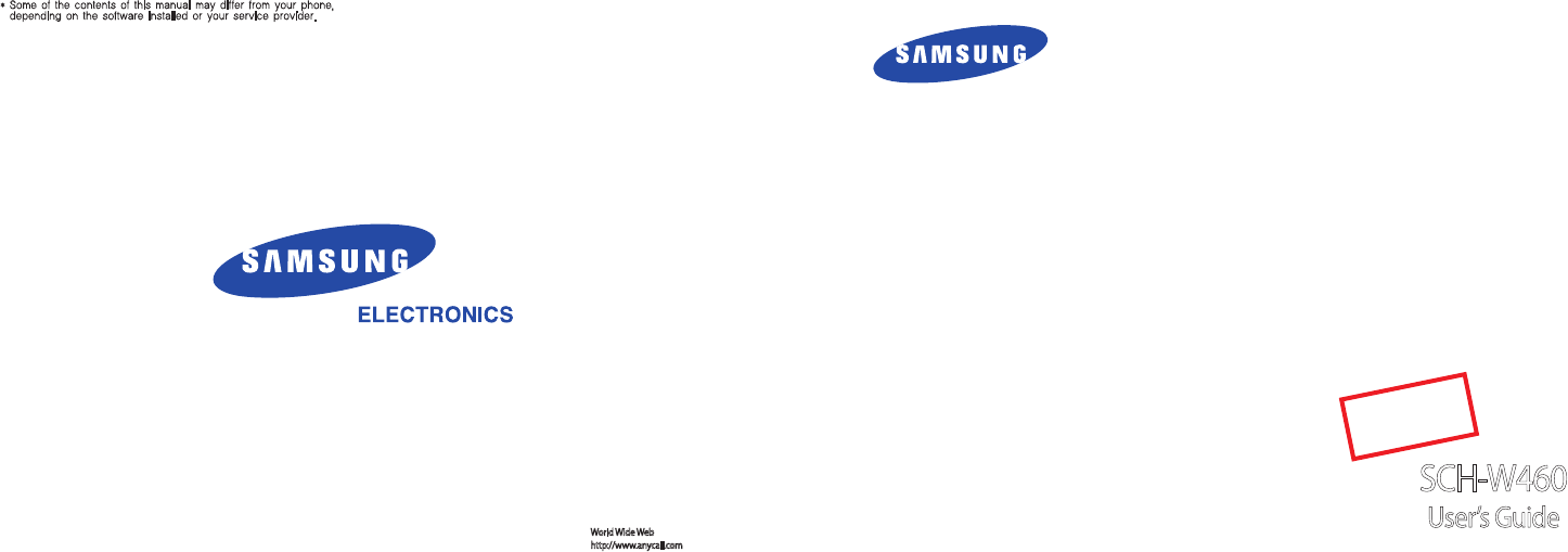 Samsung Electronics Co SCHW460 PCS GSM Phone with Bluetooth User Manual