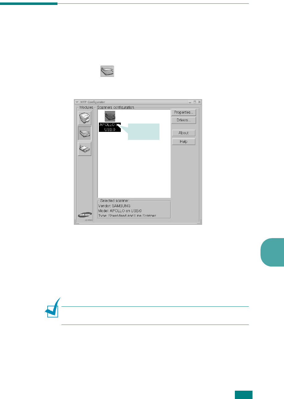 The Samsung Scan Manager opens for the selected service.