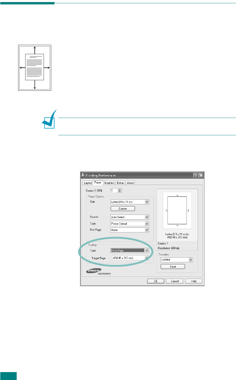 of the document to fit the size of the paper