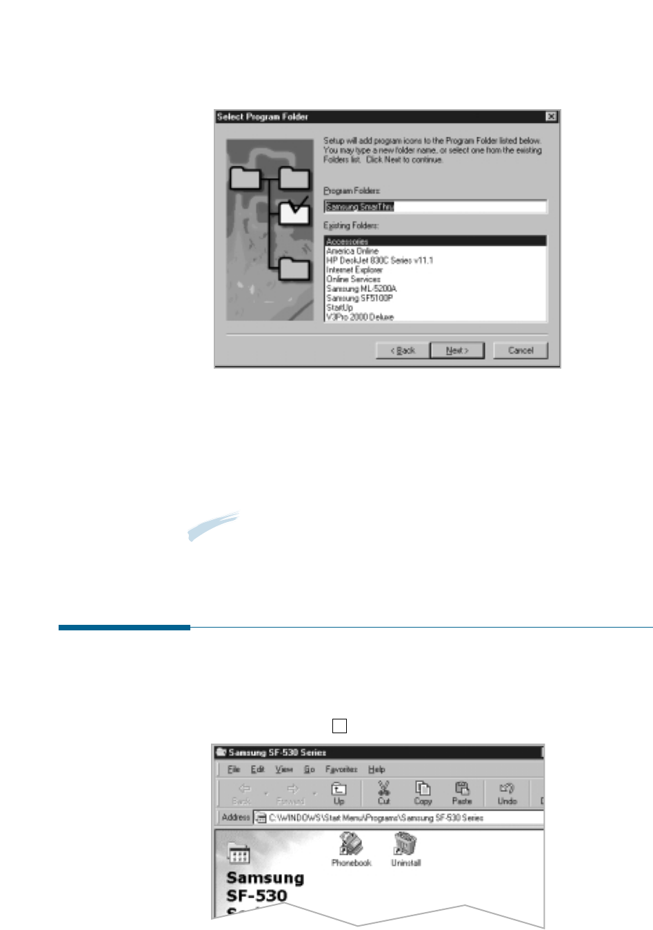 2. Select the Samsung SF-530 series printer icon in the Printers folder.