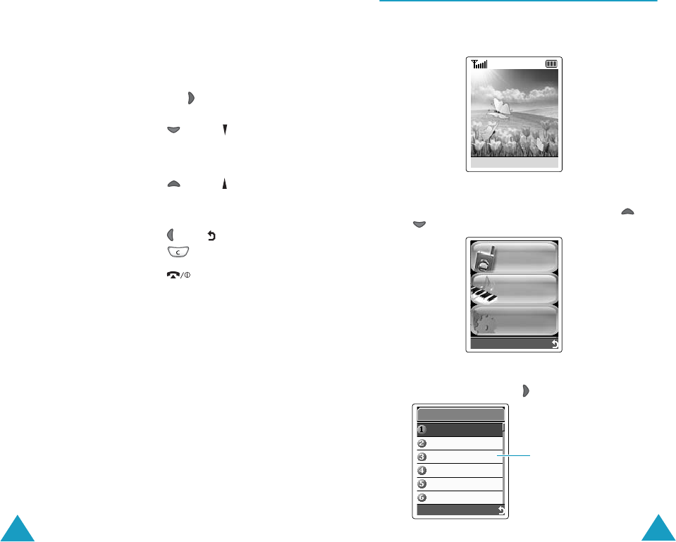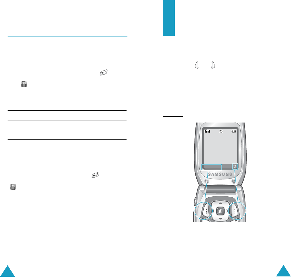 • Each of the two soft keys ( and )