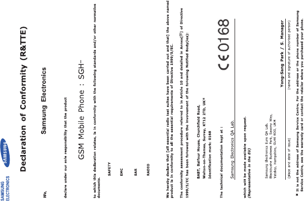 Samsung Electronics Co SGHI455L Cellular/PCS GSM/EDGE Phone with Bluetooth User Manual SGH i455